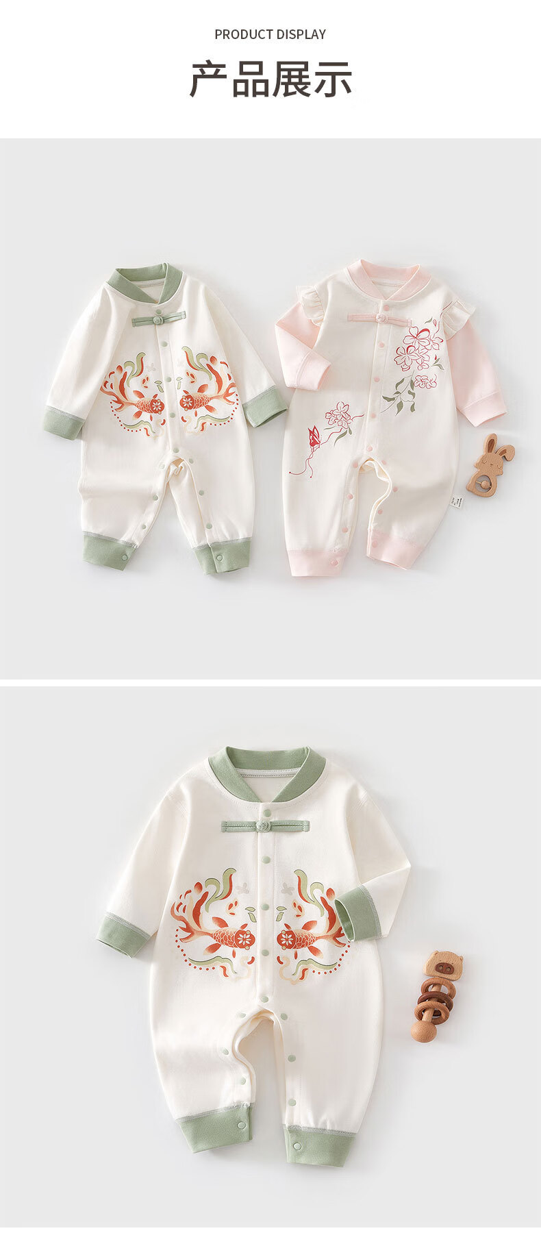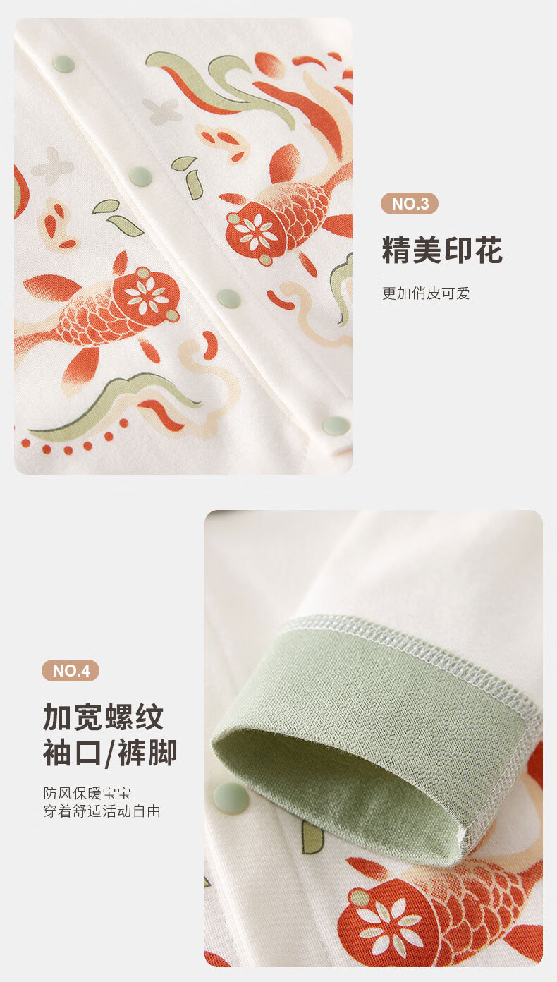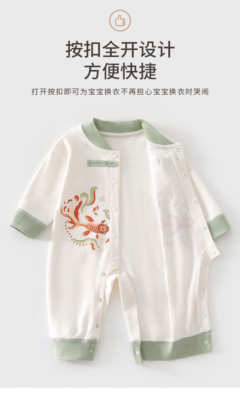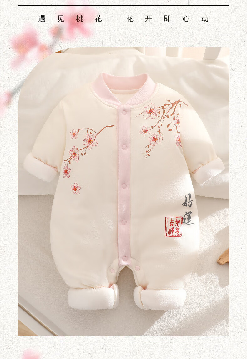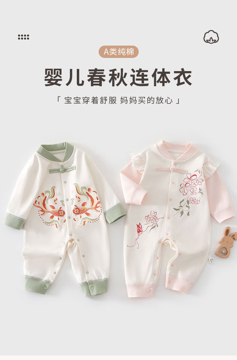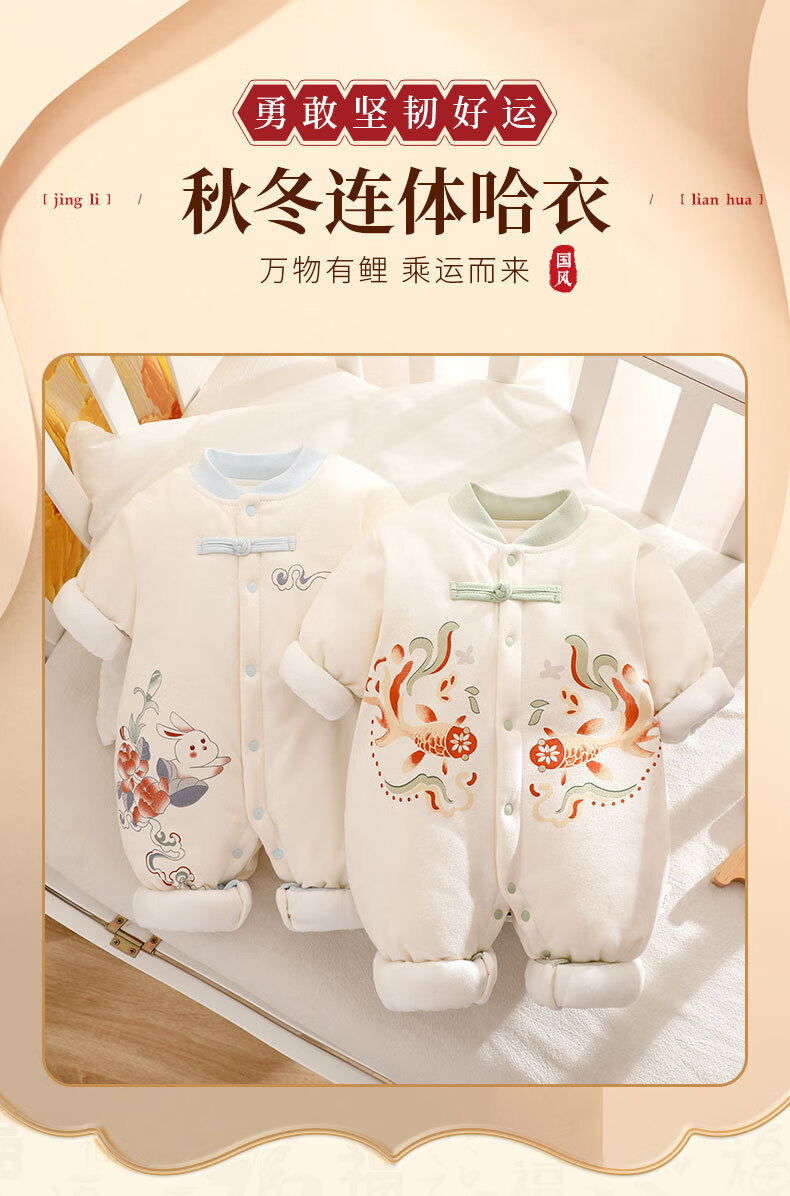 咕乐呀嘟好运桃花锦鲤婴儿保暖连体衣秋冬季宝宝夹新生儿加厚哈衣国风 云烟兔【120g棉】 90cm 90码