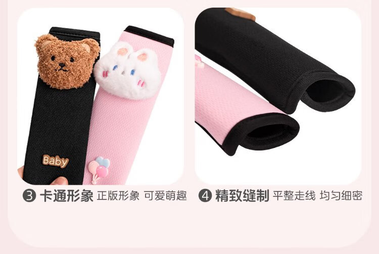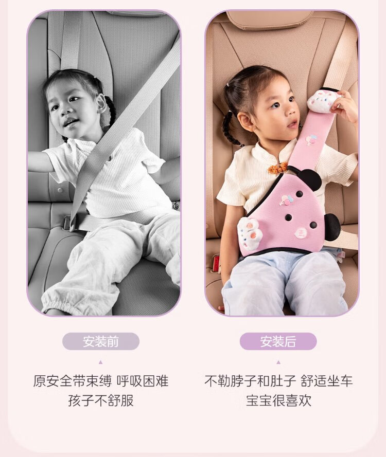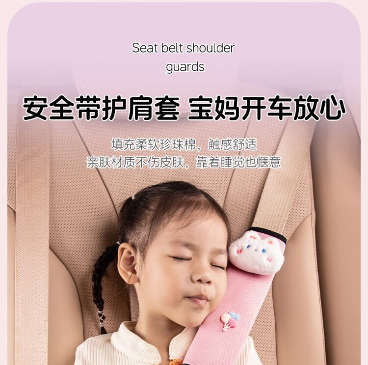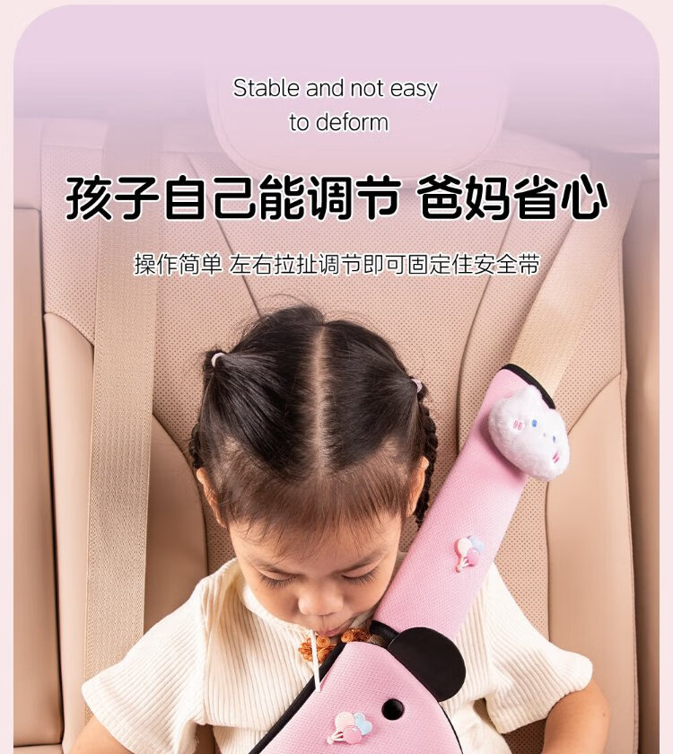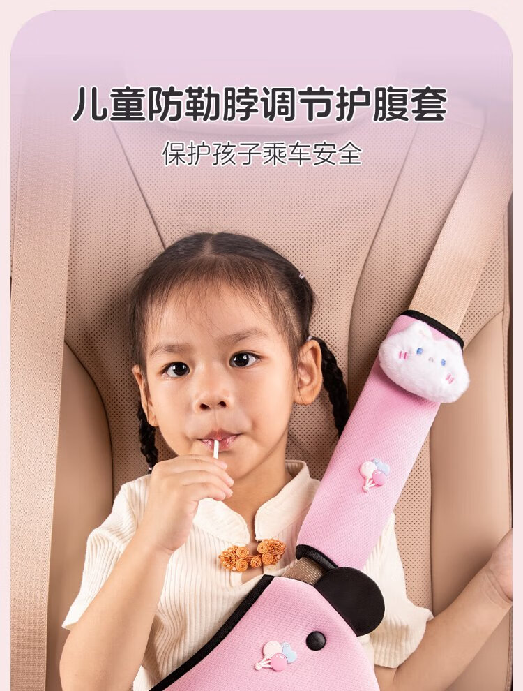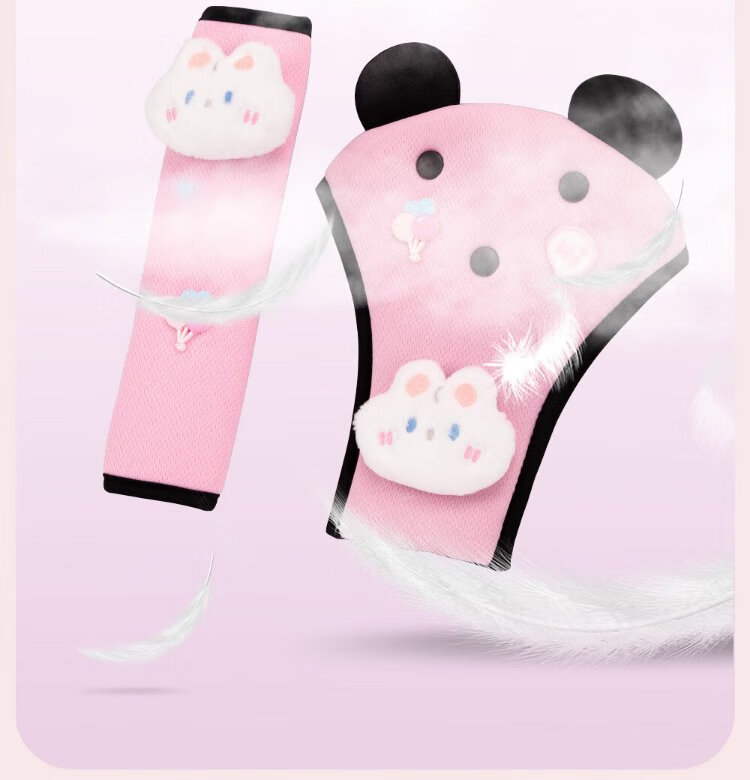 Yunche Weishi Car Child Seat Belt Adjustment Fixer Anti-Strangle Baby Simple Seat Safety Belt Limiter Shoulder Cover Fabric Style Pink Rabbit Set