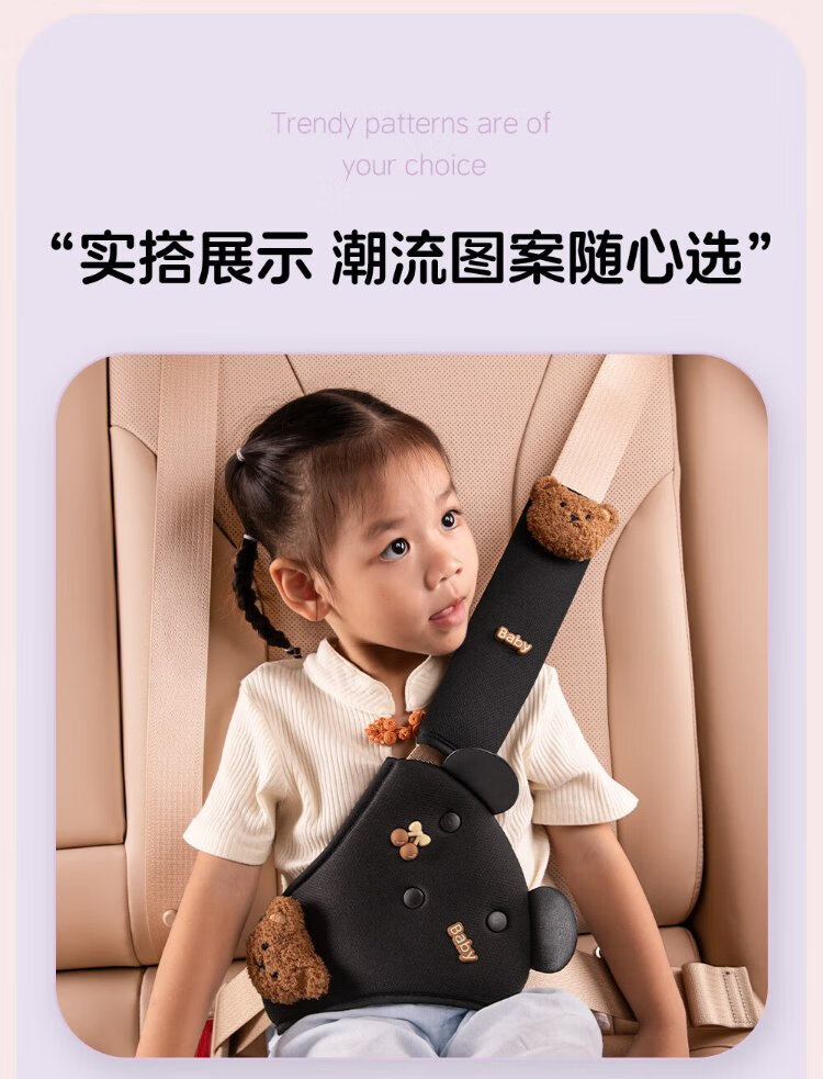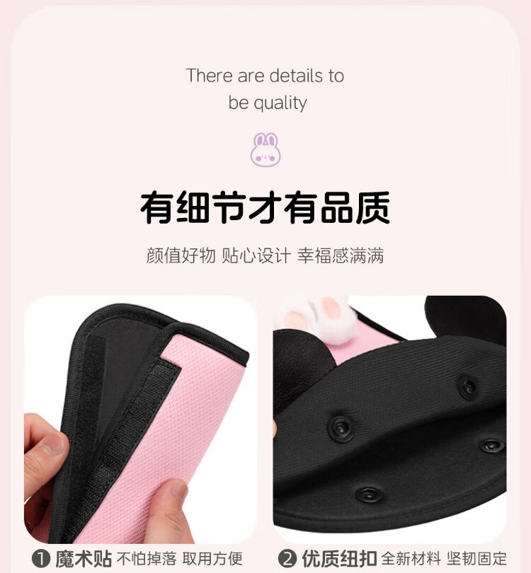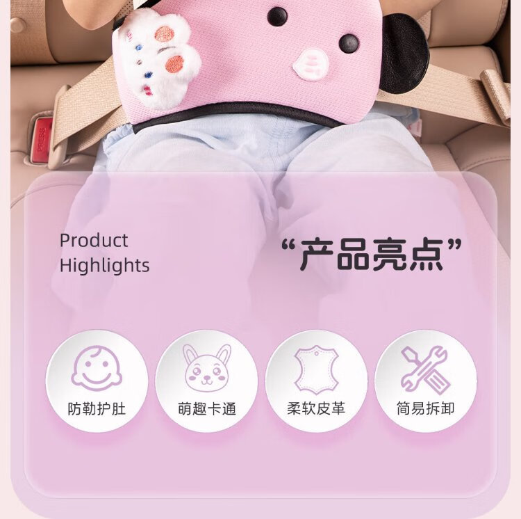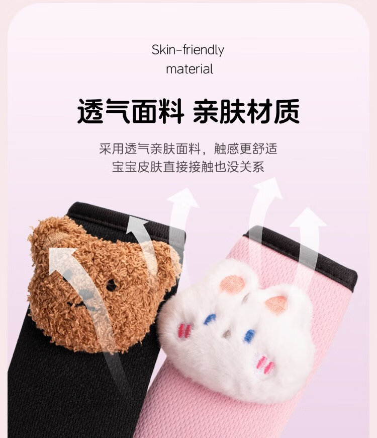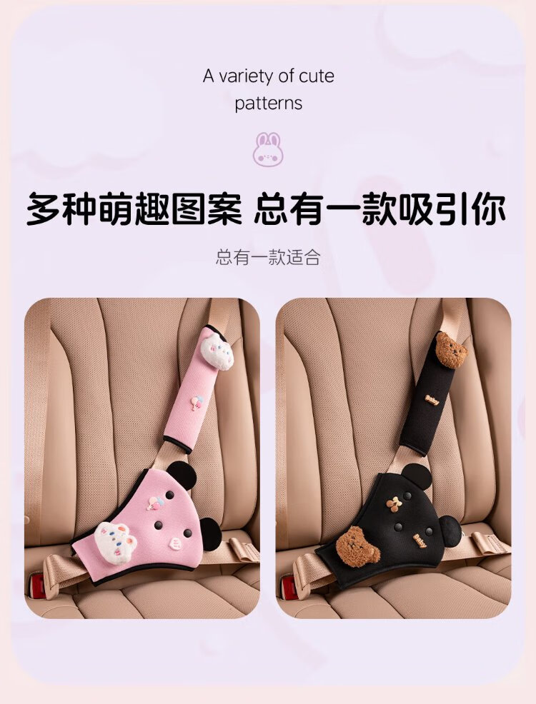 Yunche Weishi Car Child Seat Belt Adjustment Fixer Anti-Strangle Baby Simple Seat Safety Belt Limiter Shoulder Cover Fabric Style Pink Rabbit Set