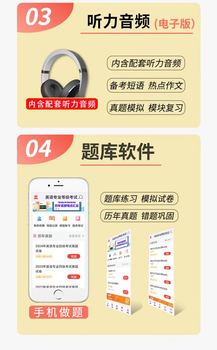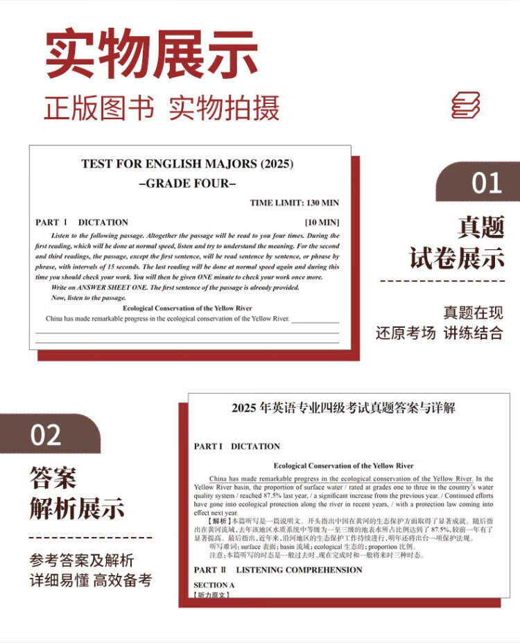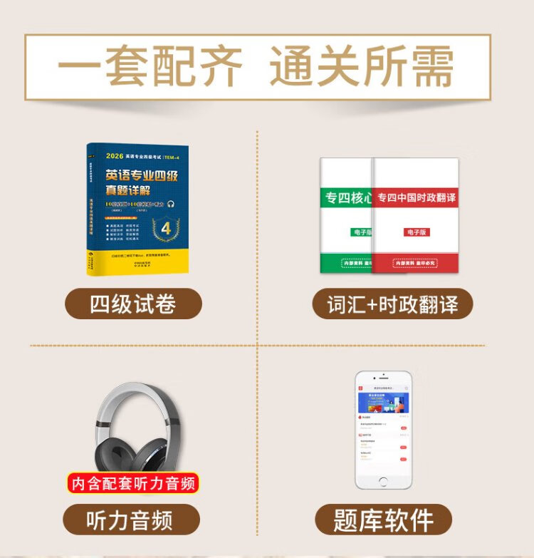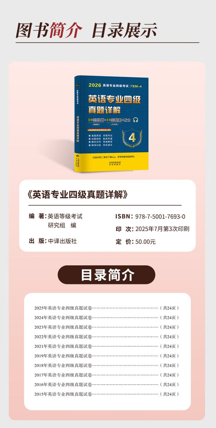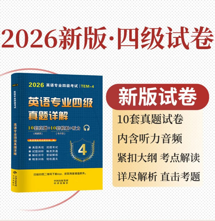 专四真题2026英语专业四级考试历年真题试卷答案详解模拟试题集指南听力与理解语法与词汇单词书阅读听力写作完形填空专项训练tem4星火 英语专四【10套真题详解】当天发货