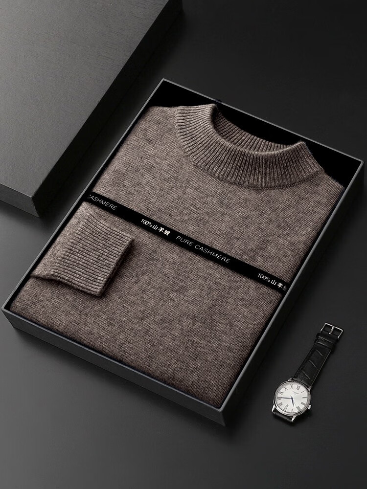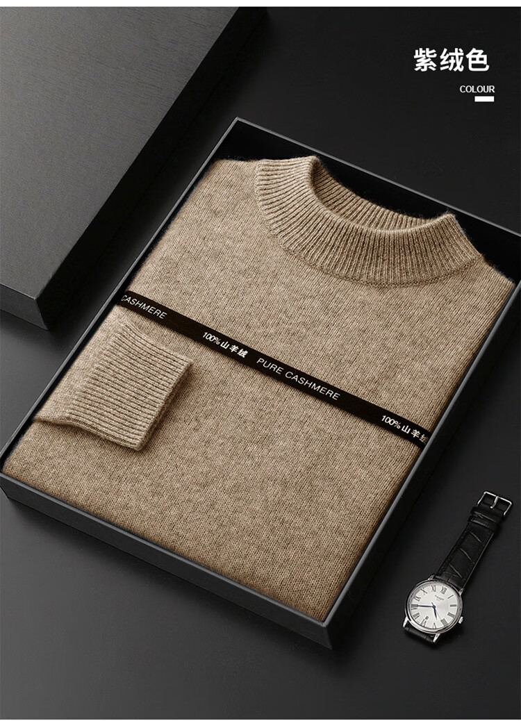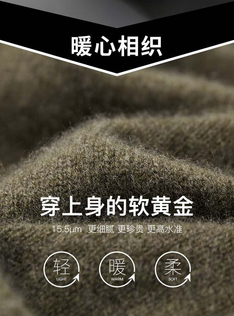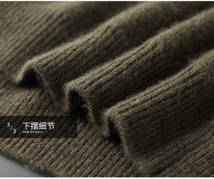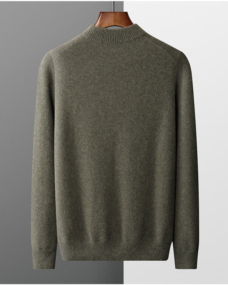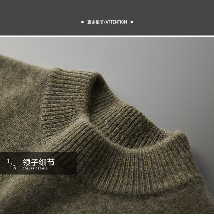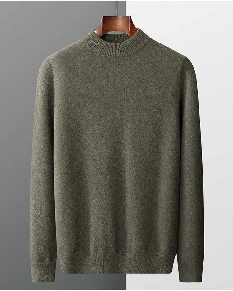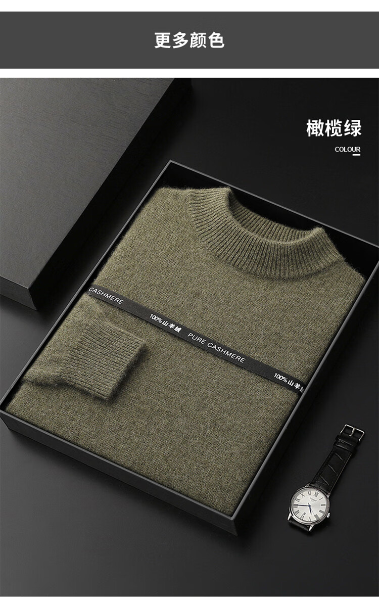 鄂尔多斯市产男士高档高端纯羊绒衫男100山羊绒毛衣中加厚 橄榄绿 XL