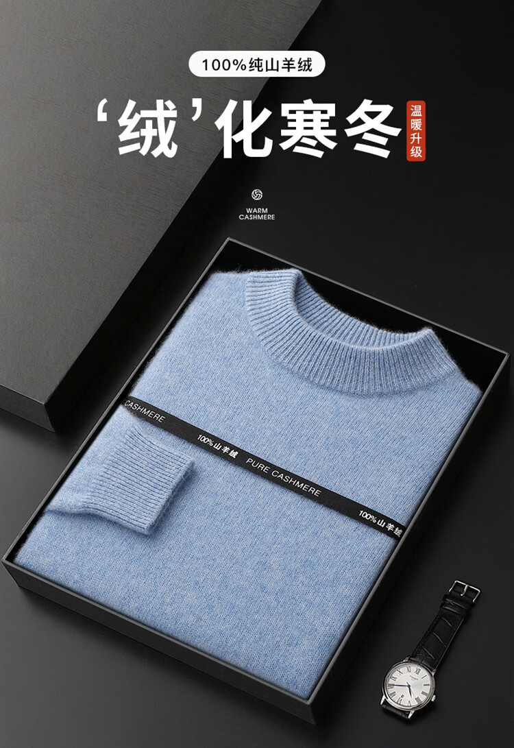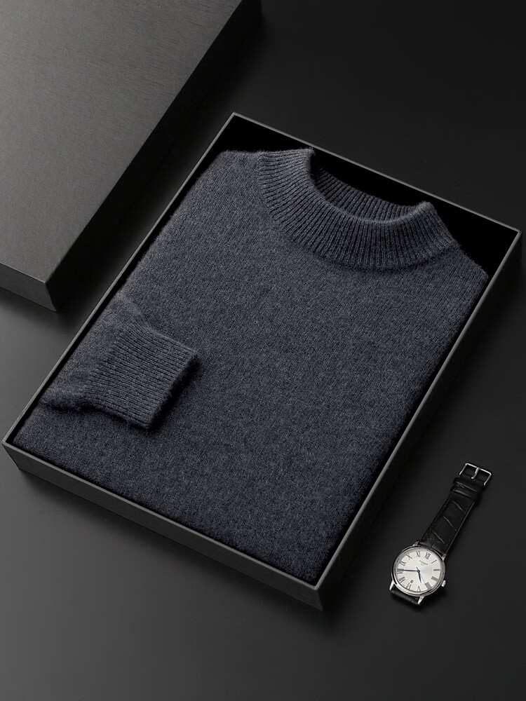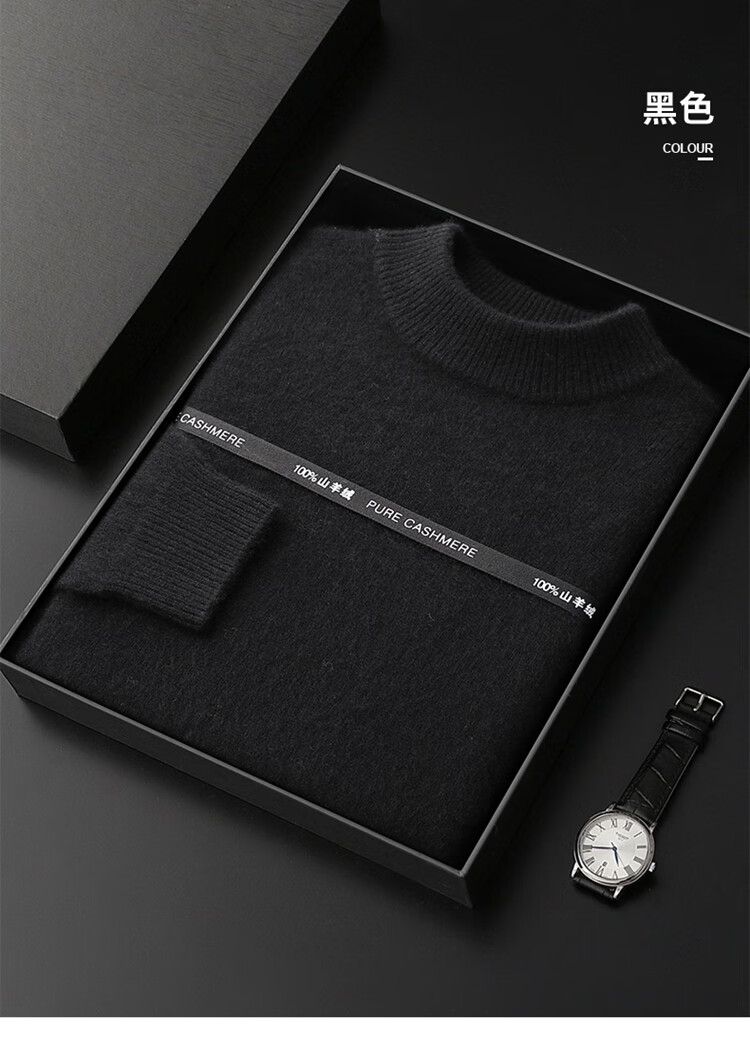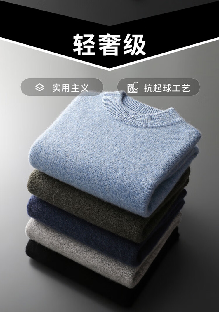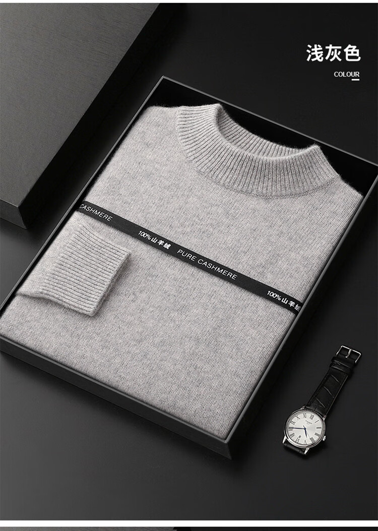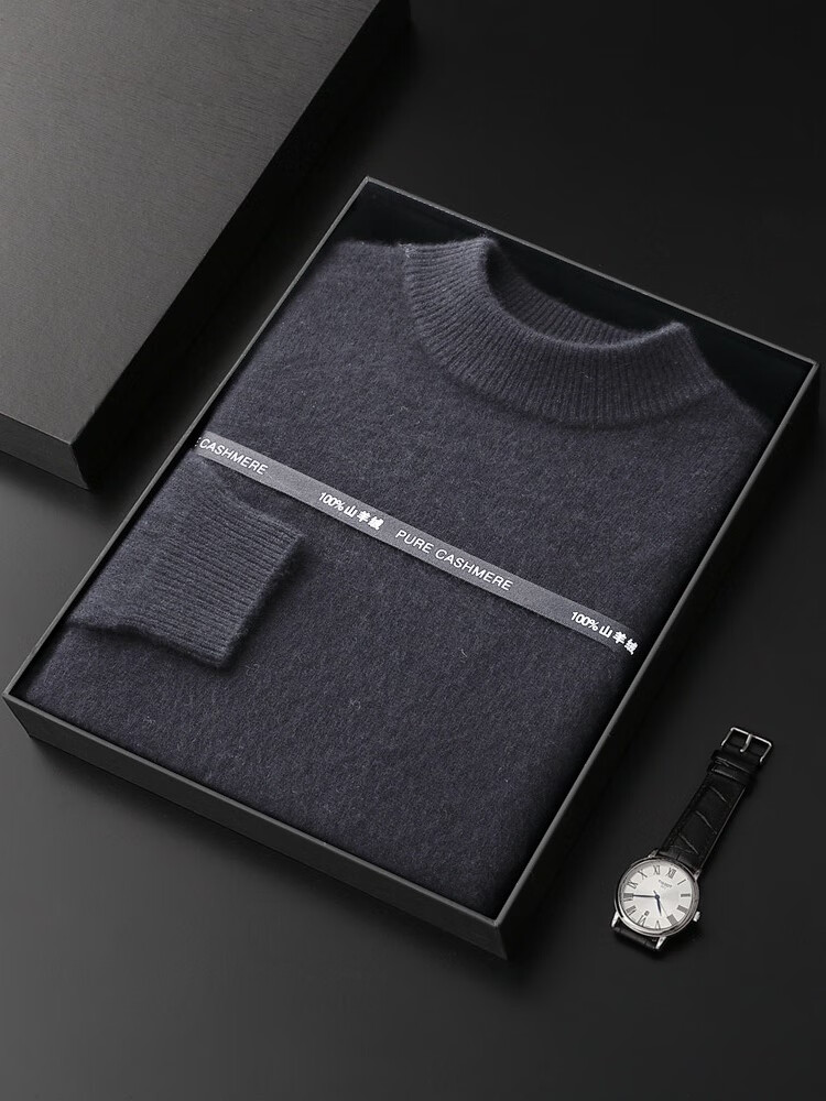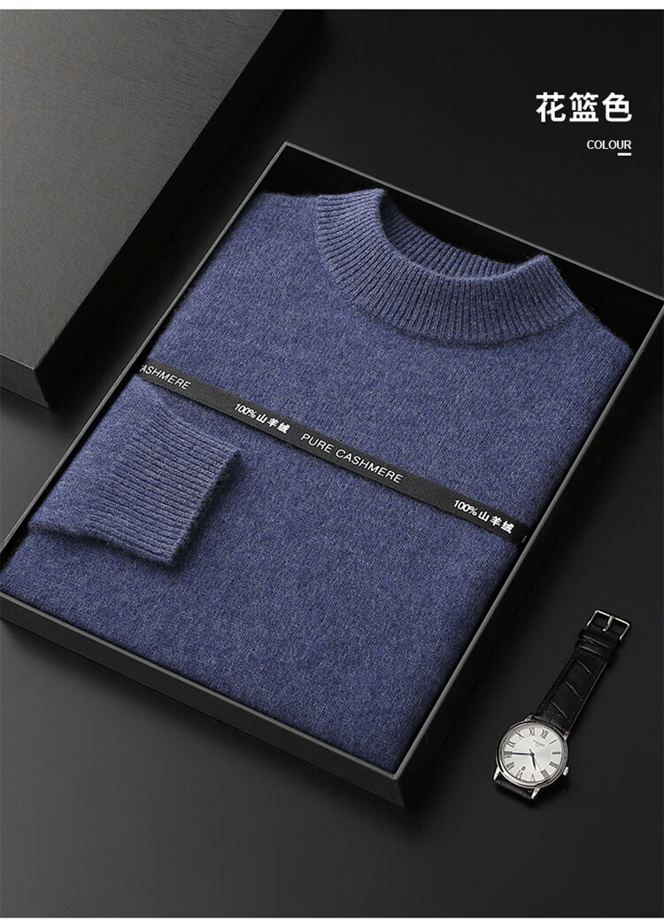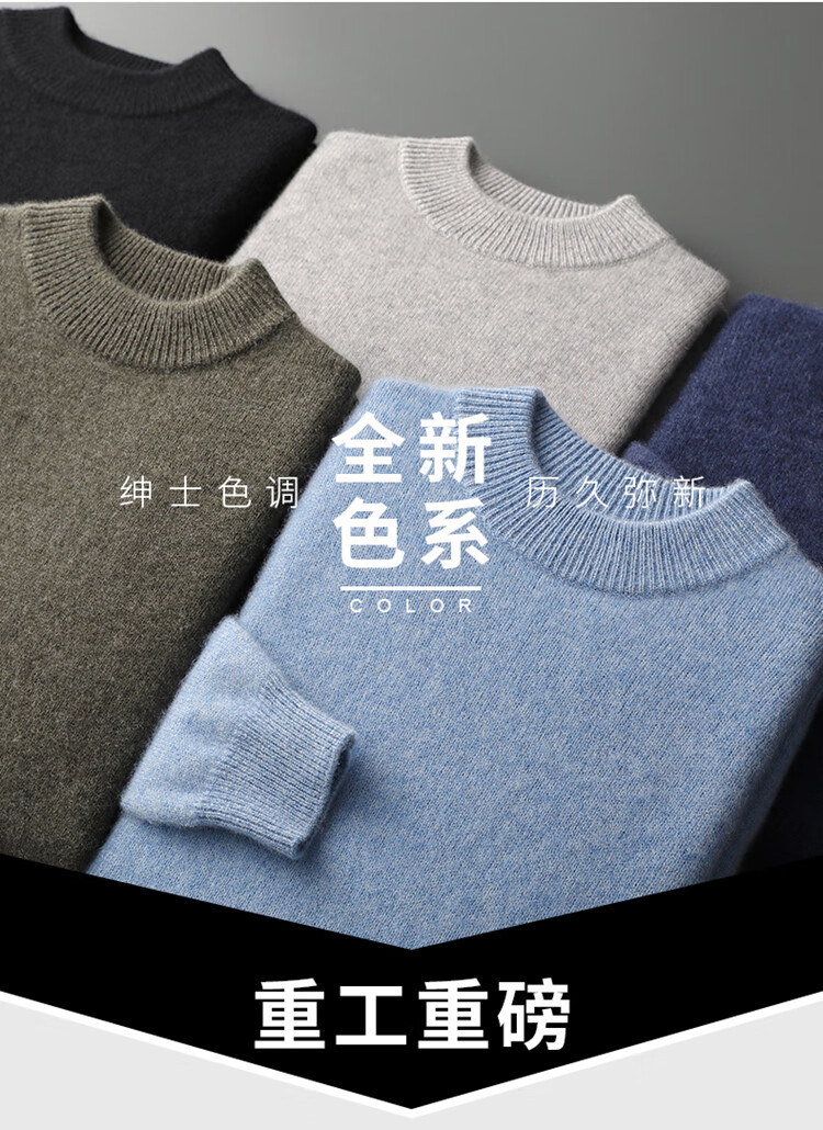 鄂尔多斯市产男士高档高端纯羊绒衫男100山羊绒毛衣中加厚 橄榄绿 XL