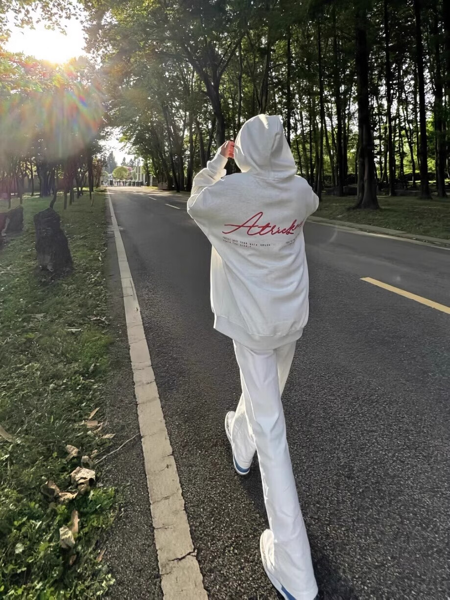 Digada white and gray American retro high street hooded sweatshirt for men in spring, autumn and winter plus velvet trendy all-match top casual sweatshirt CXS-LM459 white gray plus velvet M (size is too small, it is recommended to go up one size)