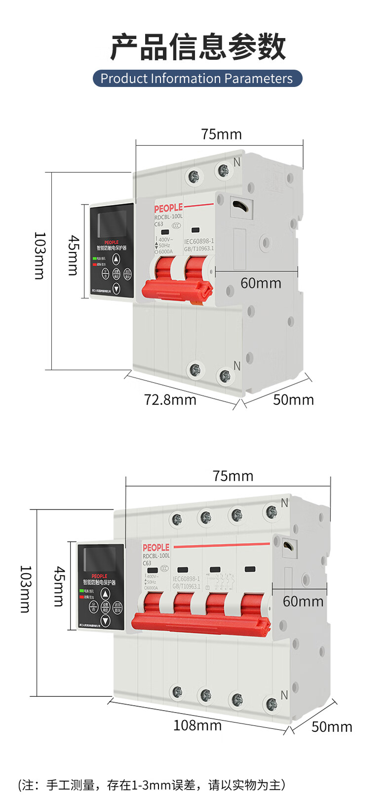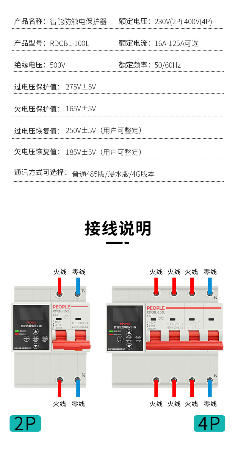 Volksintelligenter Fehlerstrom-Schutzschalter, Fernbedienung, automatische Wiedereinschaltung, Über- und Unterspannungs-Leckageschutz, 2P (normale 485-Version)