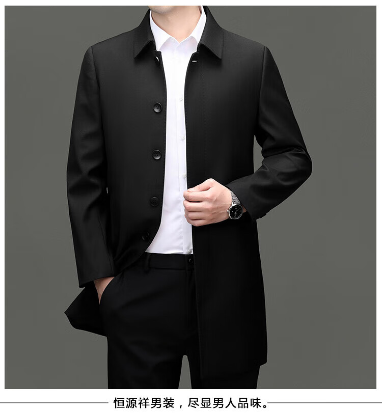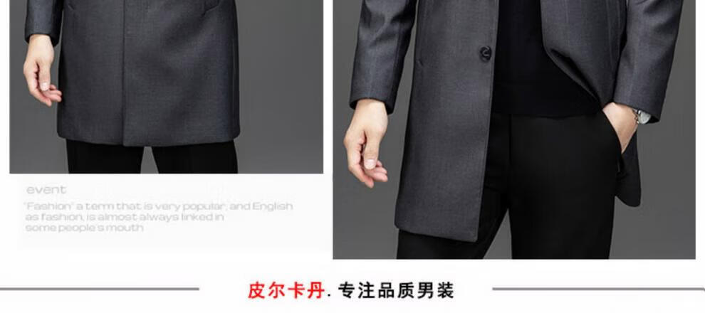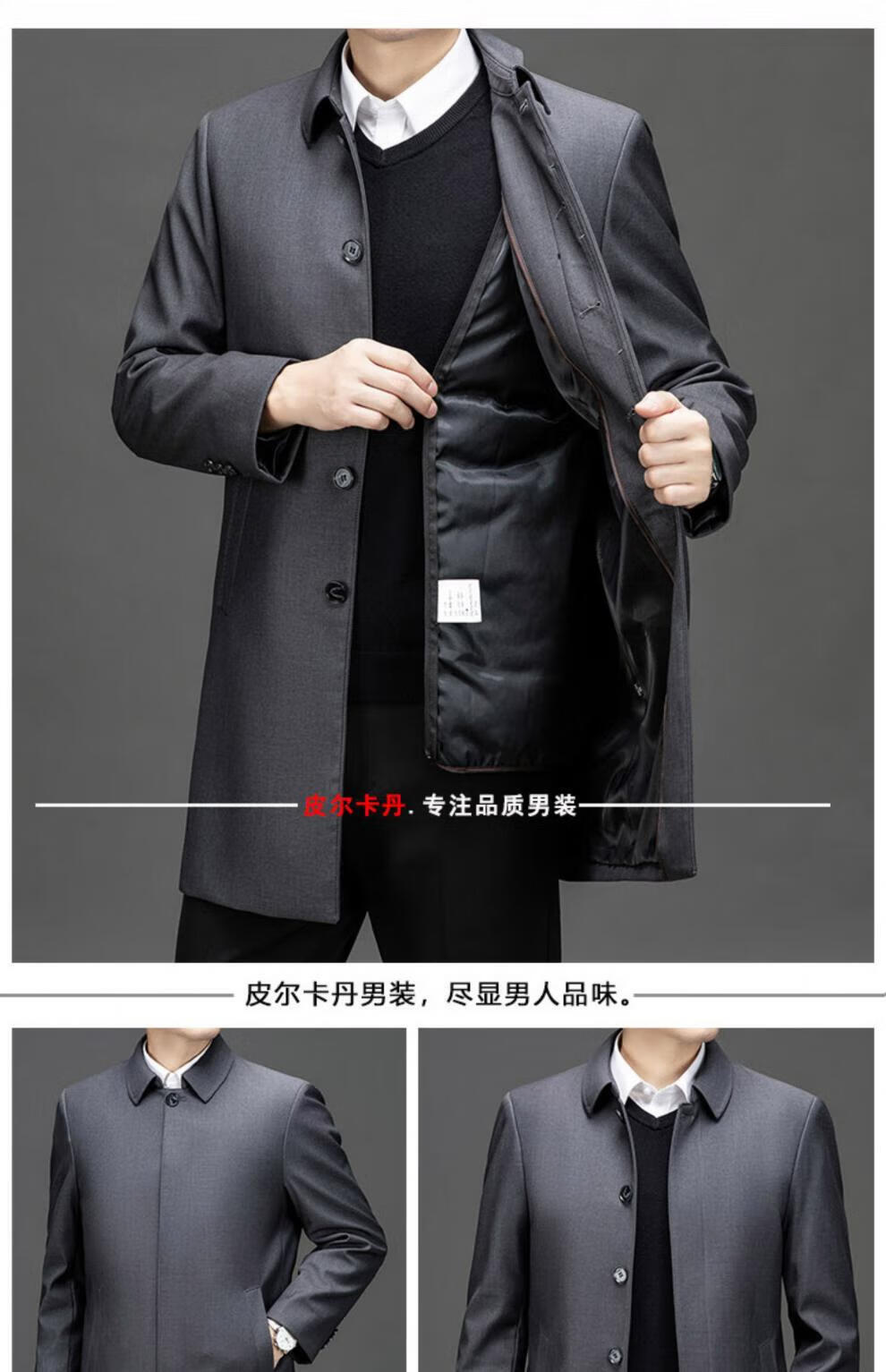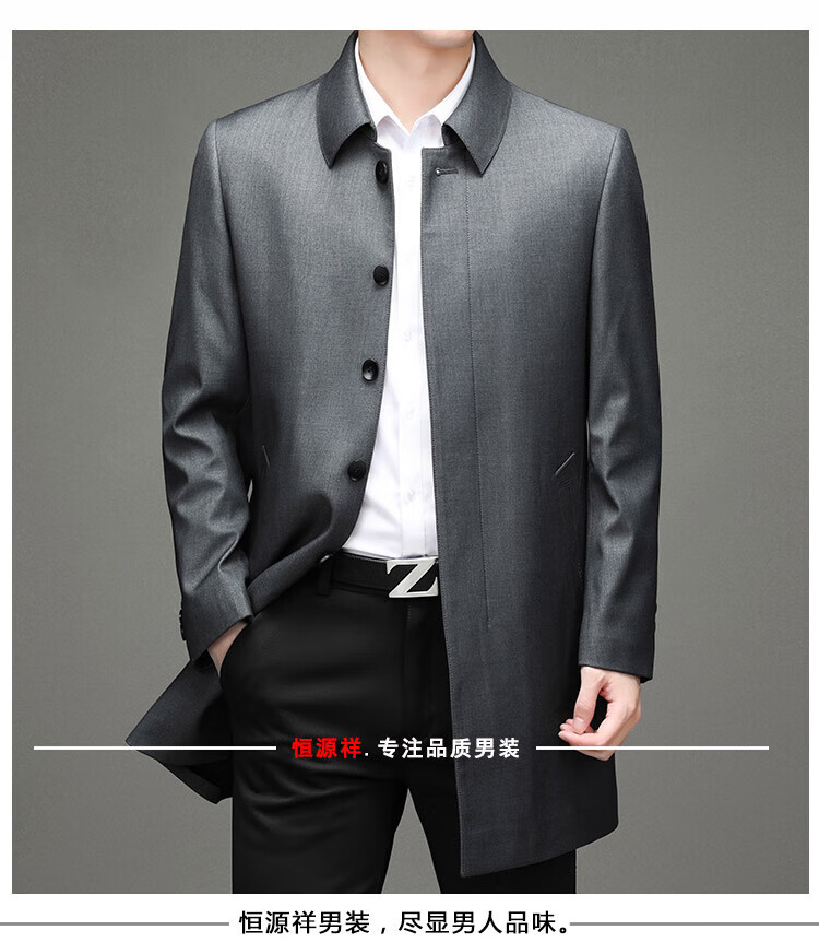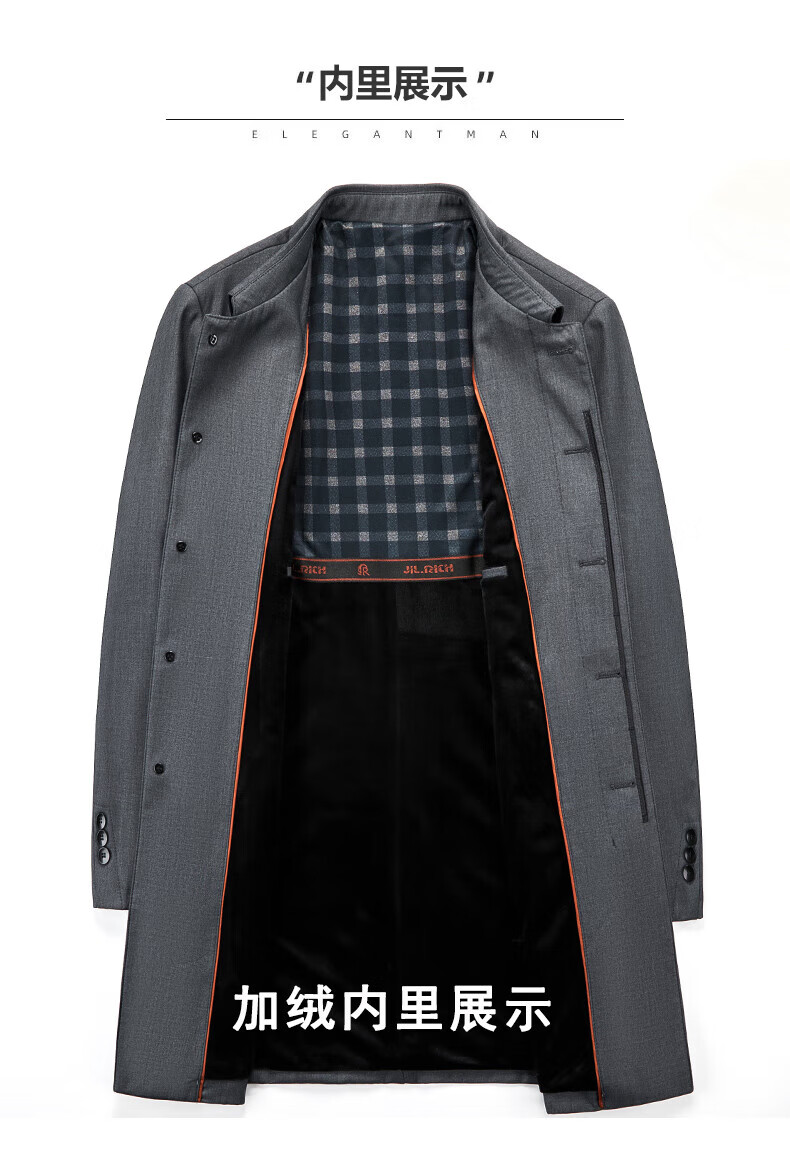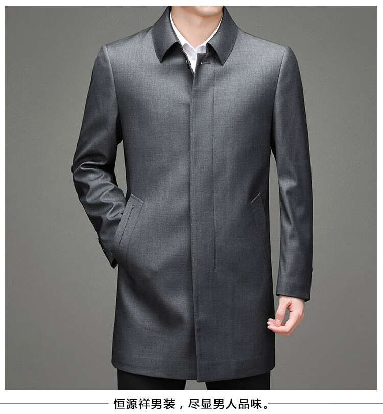 老爷车(COCHE CLASICO)2025新款男士中年风衣秋冬季商务休闲中长款大衣翻领爸爸外套保暖 灰色  1936 翻领款 XL 180 (推荐150-170斤)