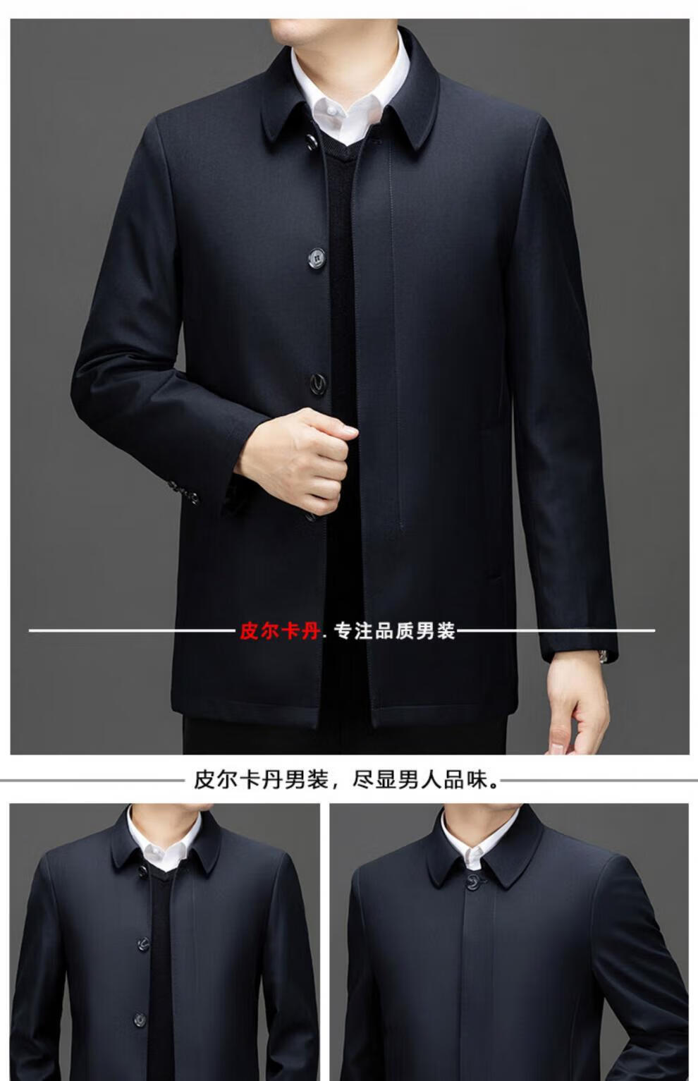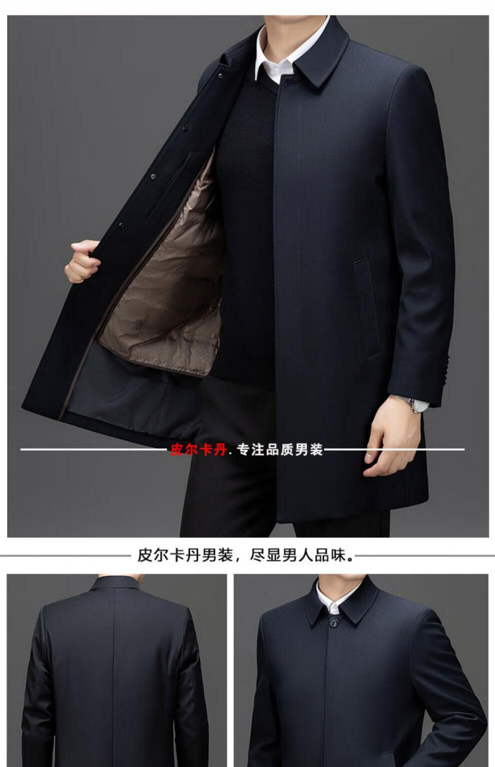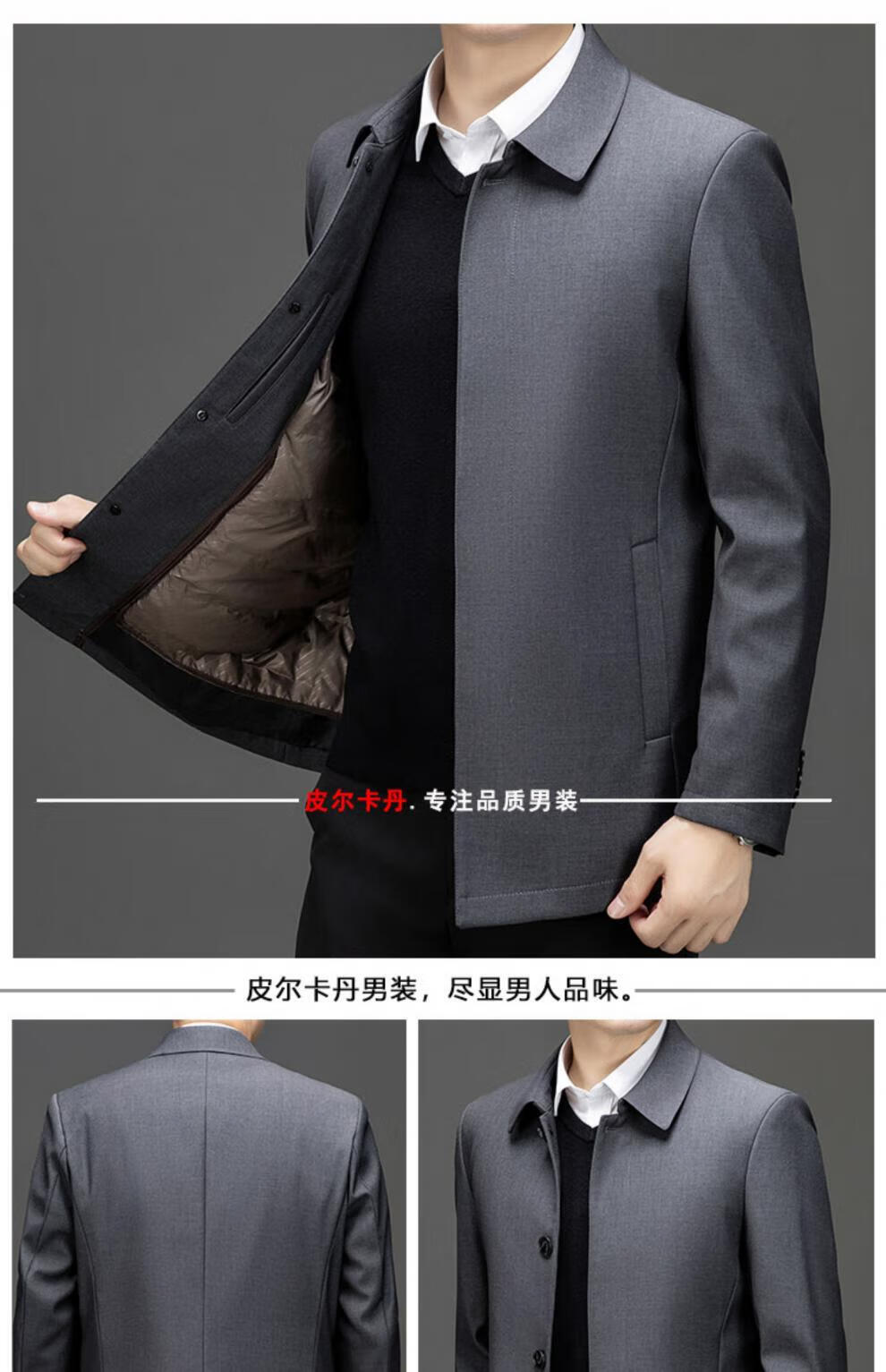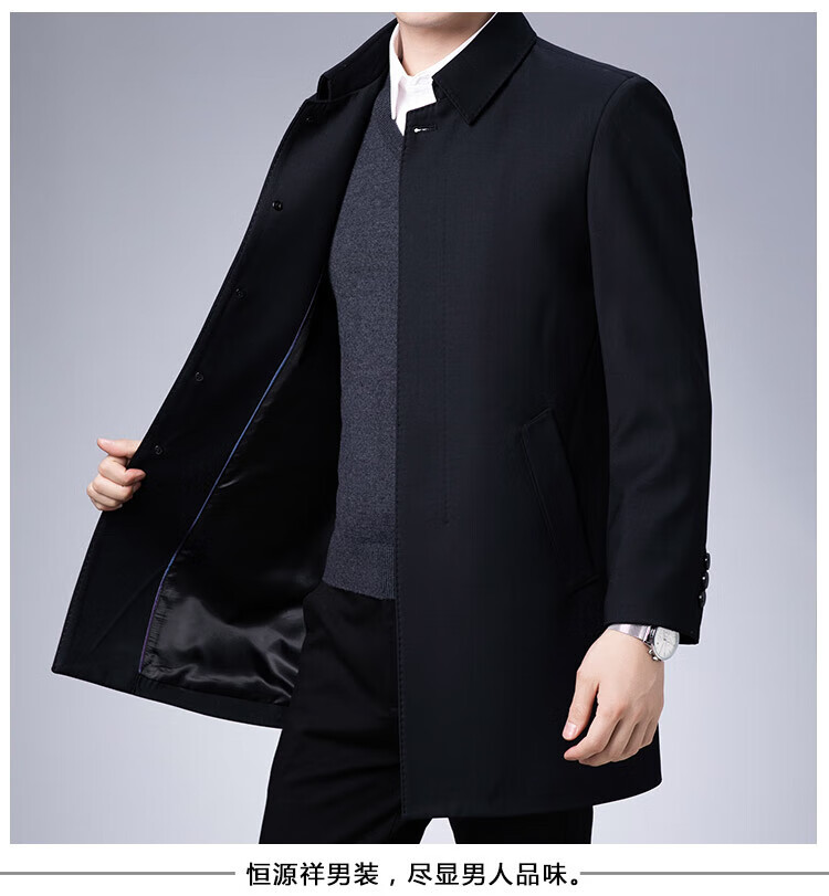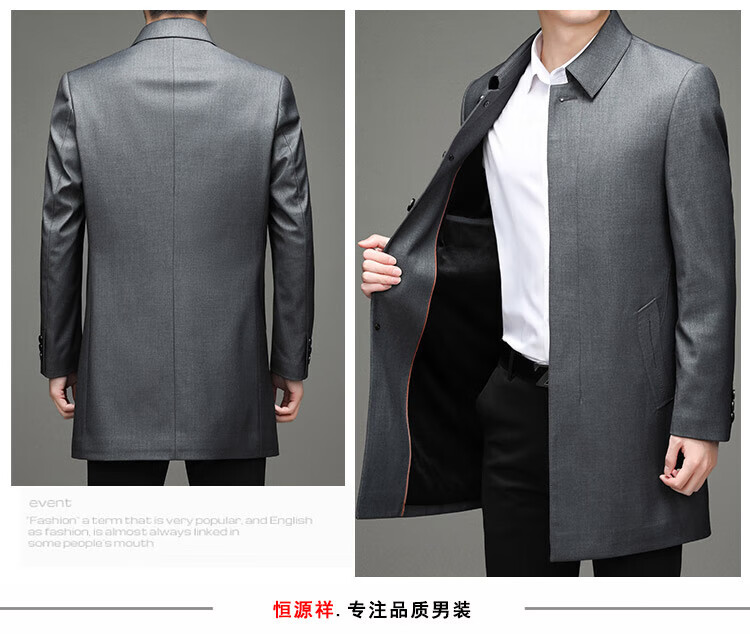 老爷车(COCHE CLASICO)2025新款男士中年风衣秋冬季商务休闲中长款大衣翻领爸爸外套保暖 灰色  1936 翻领款 XL 180 (推荐150-170斤)