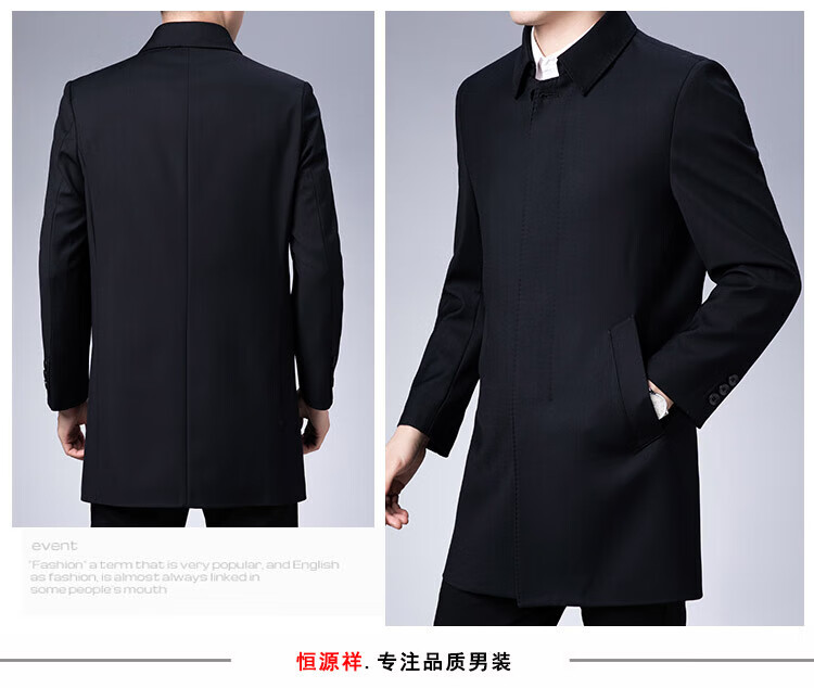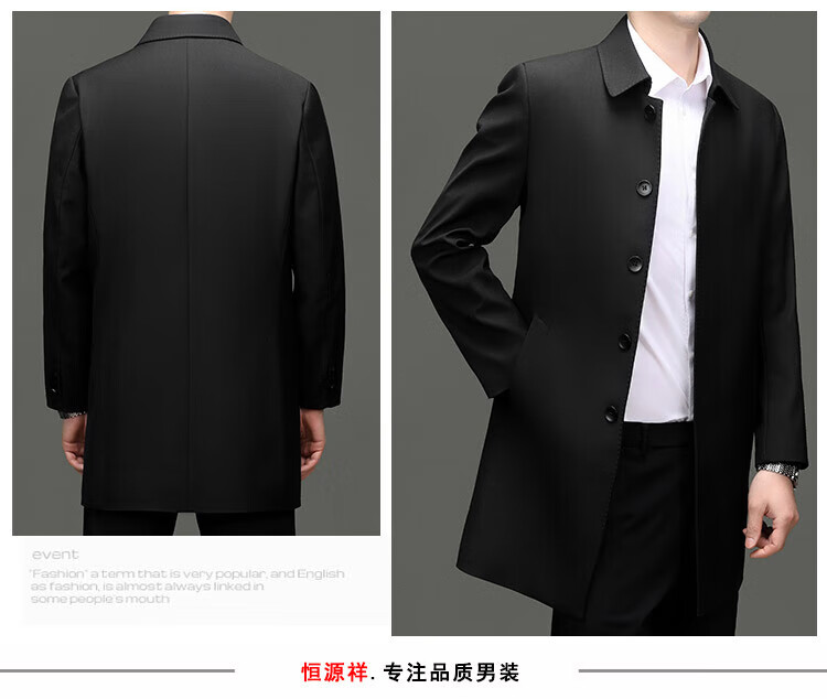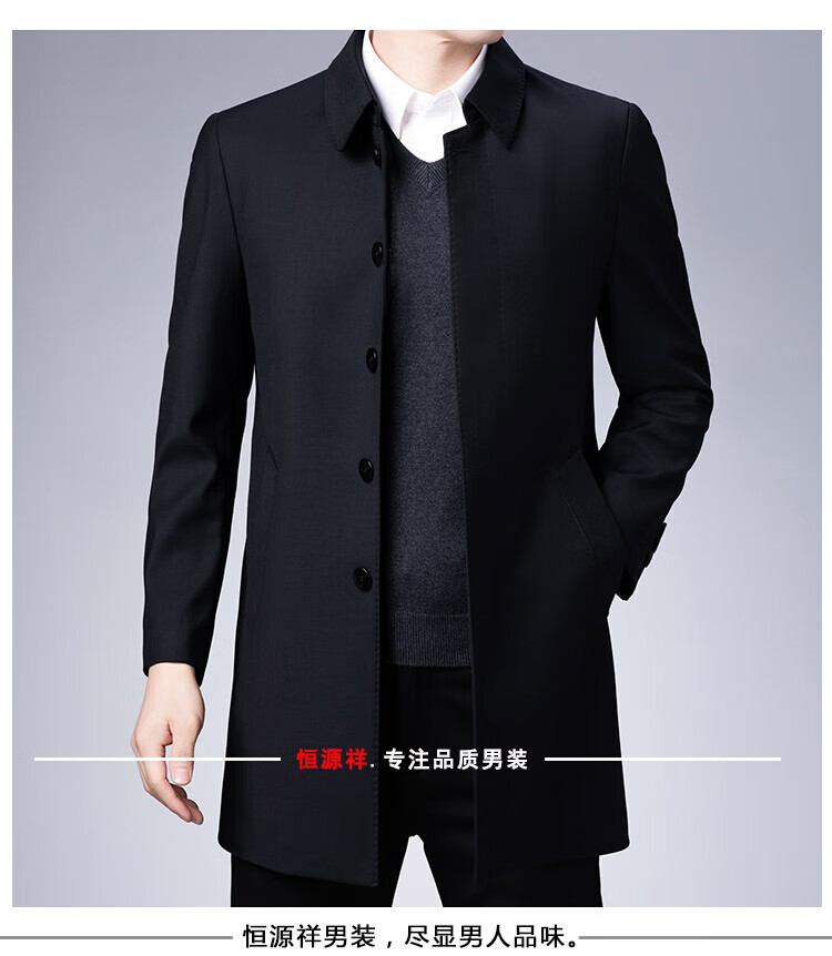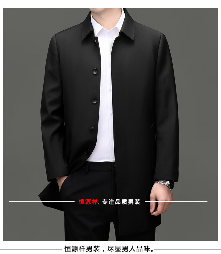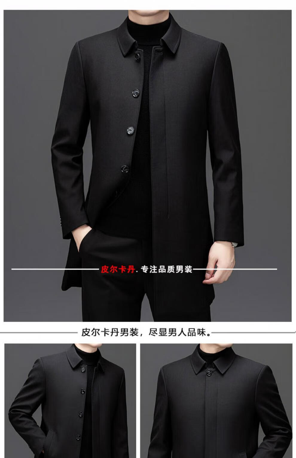 老爷车(COCHE CLASICO)2025新款男士中年风衣秋冬季商务休闲中长款大衣翻领爸爸外套保暖 灰色 1936 翻领款 XL 180 (推荐150-170斤)