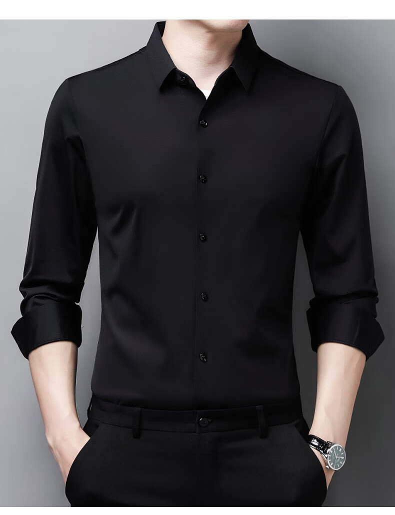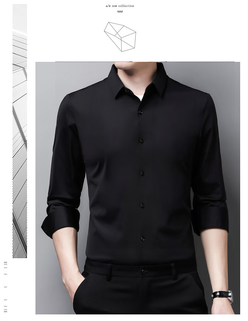 Woodpecker mulberry silk warm shirt men's business casual winter velvet thickened drape anti-wrinkle non-iron long-sleeved shirt ZMN-999 black (thick) velvet 175/XL suitable for 140-160Jin Jin equals 0.5 kg