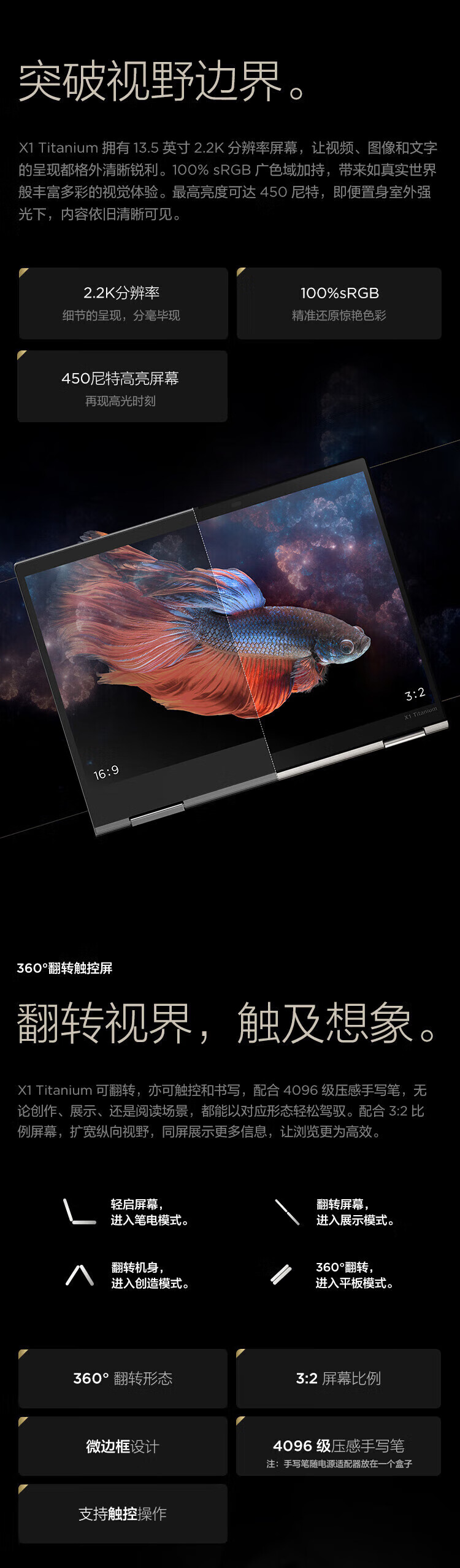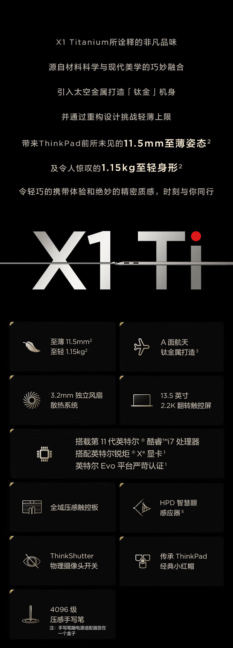 ThinkPad X1 yoga 升级 X1 Titanium 泰坦 钛金灰翻转版 英特尔Evo平台 联想13.5英寸超轻薄商务笔记本电脑 酷睿i7 含手写笔 Win11 2.2K翻转触控屏 16G内存 1TB固态硬盘 升配版