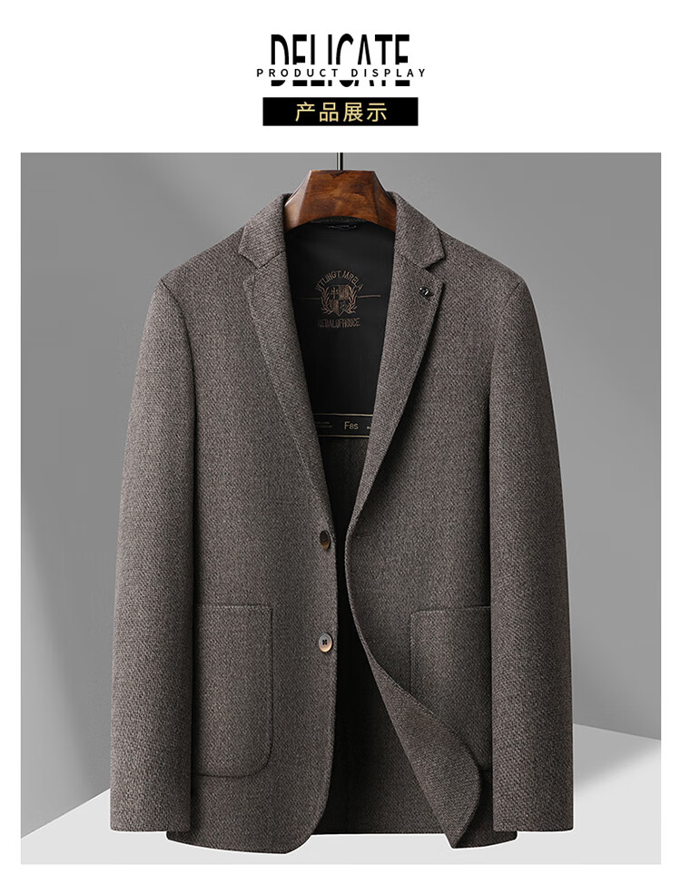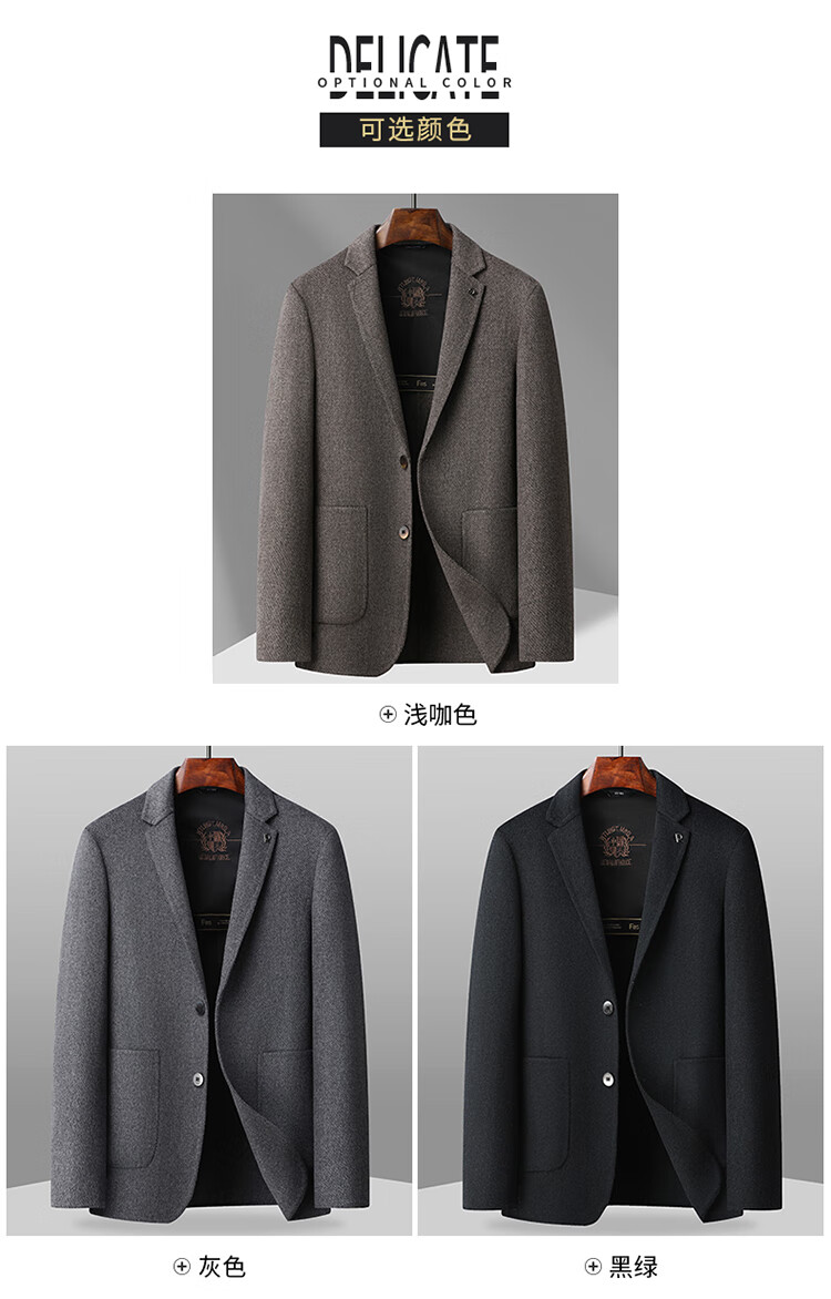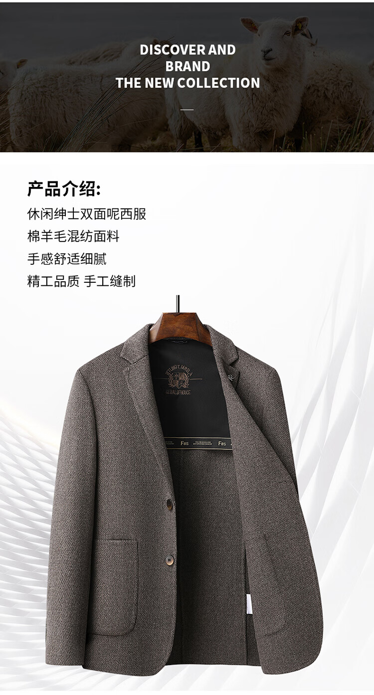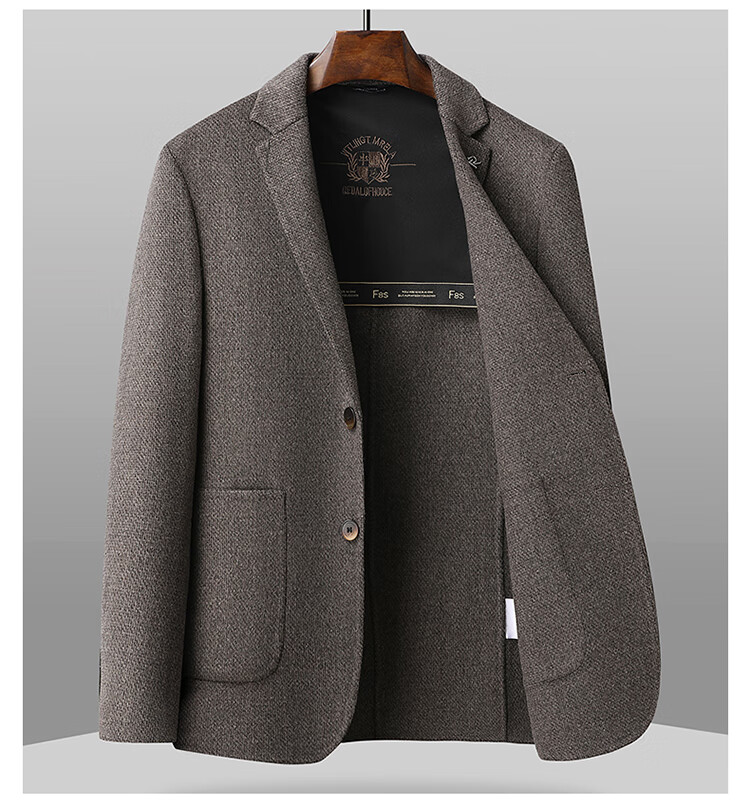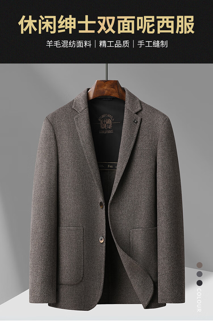 皮尔卡丹(pierre cardin)秋冬季双面呢西装男商务休闲爸爸装外套绵羊毛呢子西服新品 浅咖色 常.规不加内胆 4XL 建议175-190斤