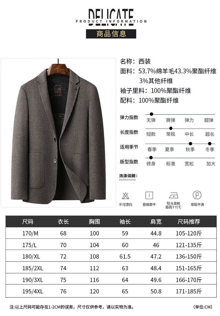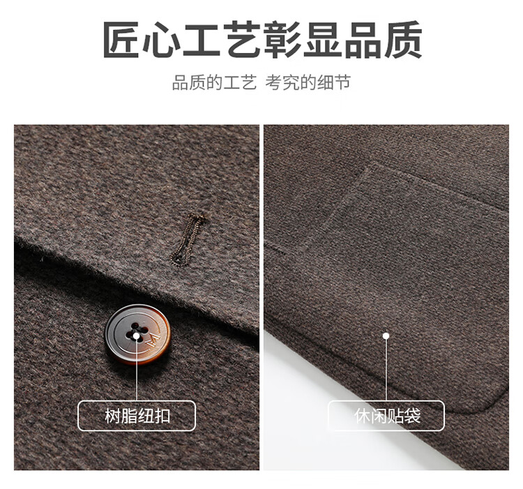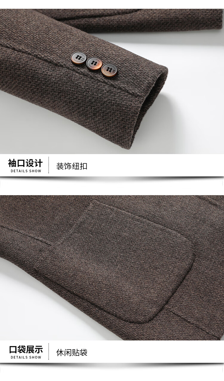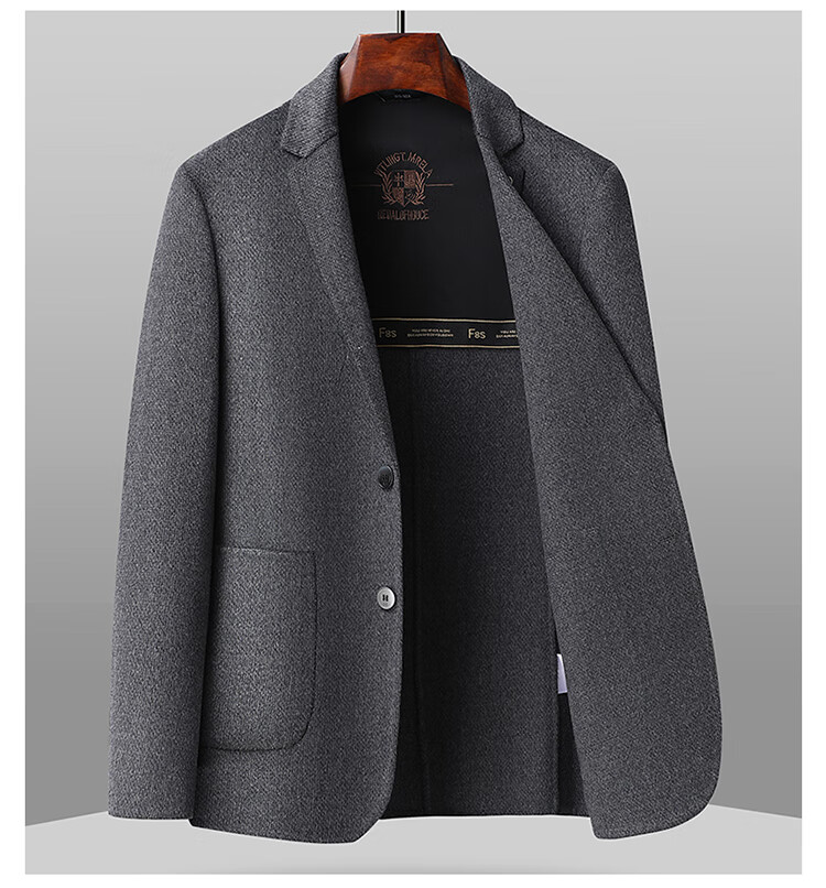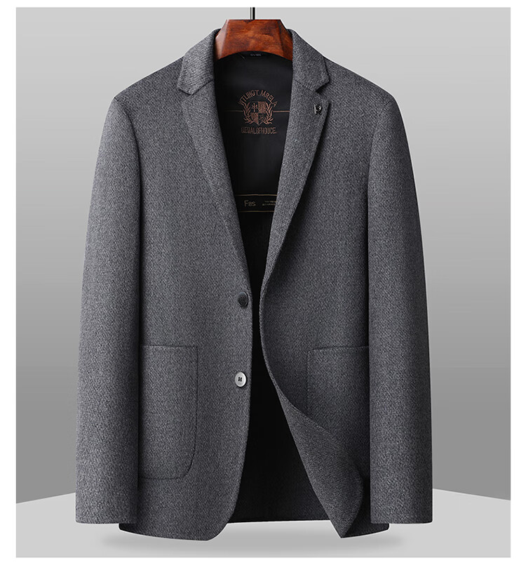 皮尔卡丹(pierre cardin)秋冬季双面呢西装男商务休闲爸爸装外套绵羊毛呢子西服新品 浅咖色 常.规不加内胆 4XL 建议175-190斤