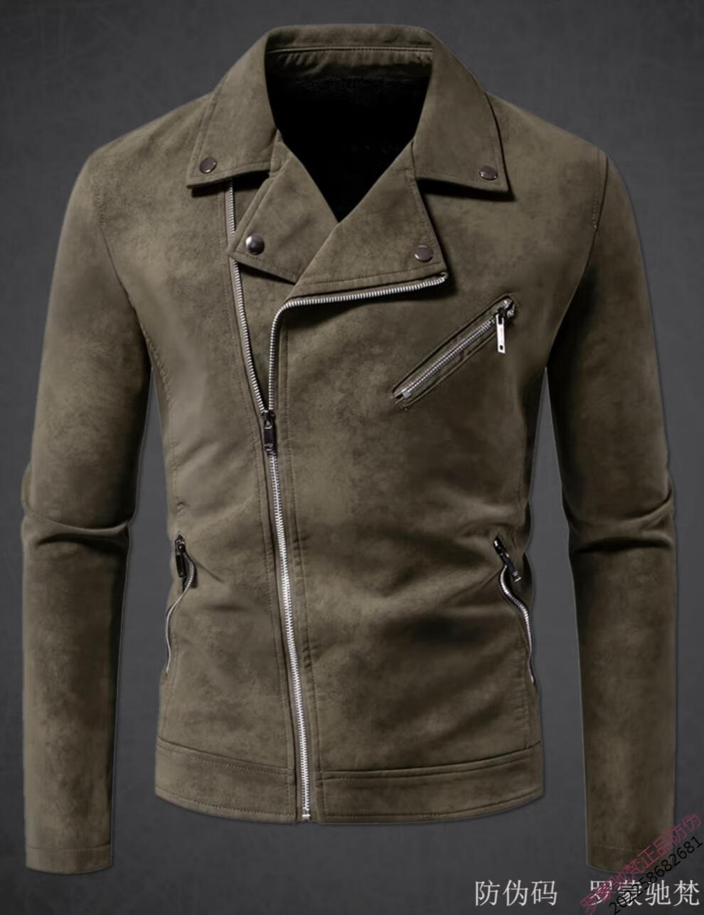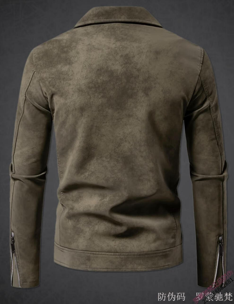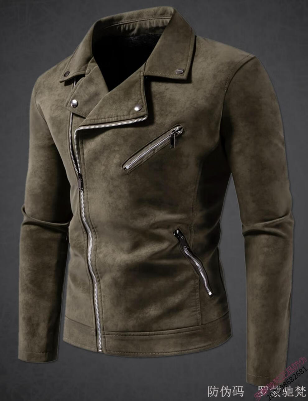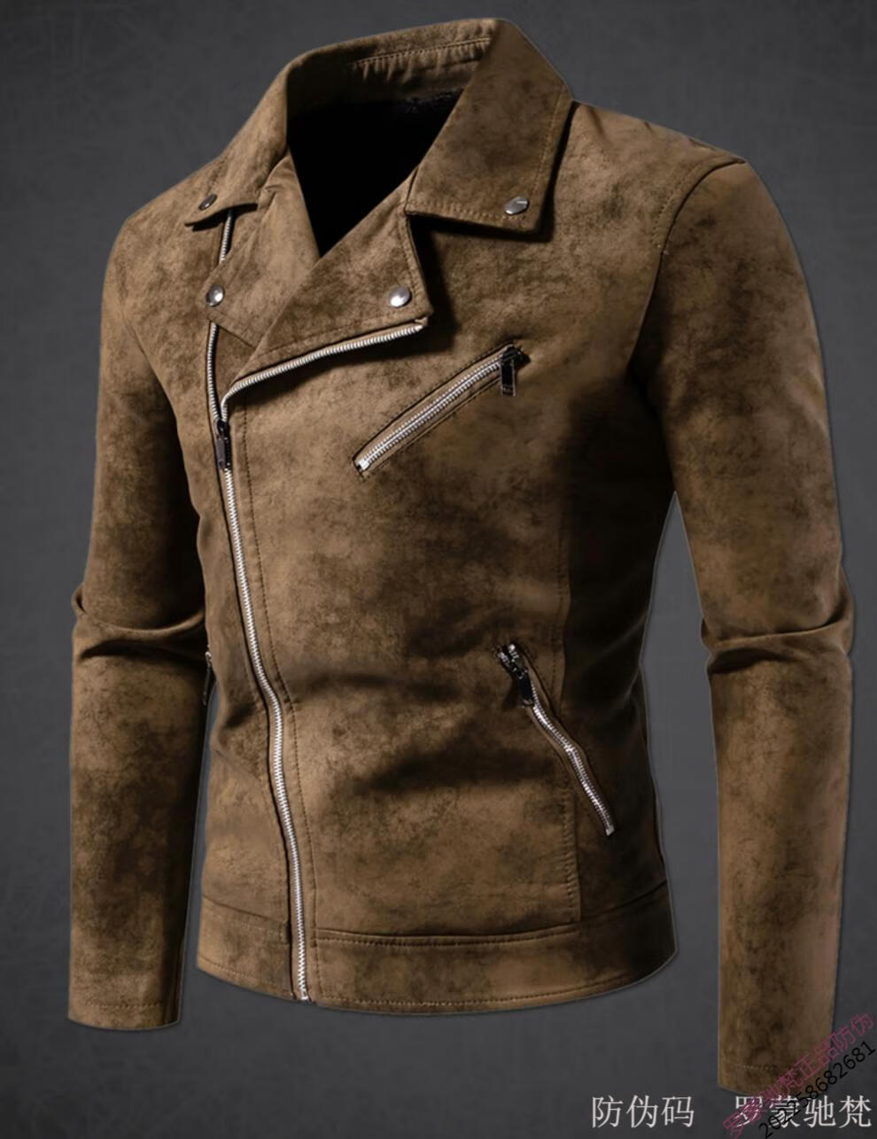 ROMON diagonal zipper jacket men's leather jacket American retro lapel soft leather jacket handsome style Harley motorcycle motorcycle clothing new product green Paul offline same style XL suitable for 125-140Jin Jin equals 0.5 kg