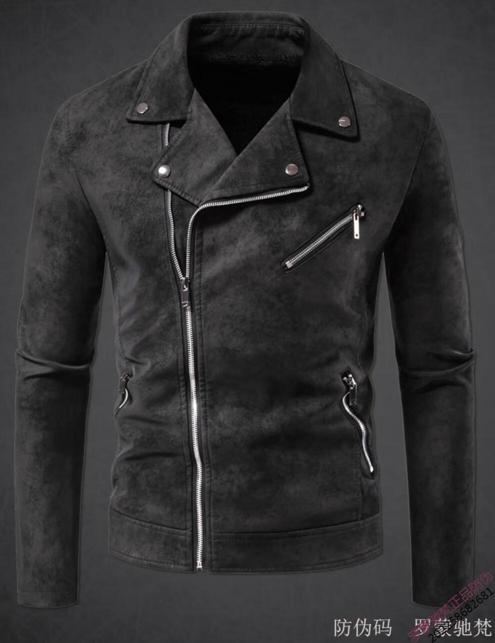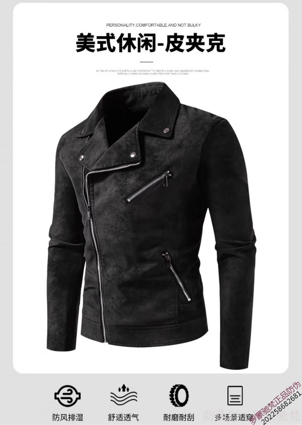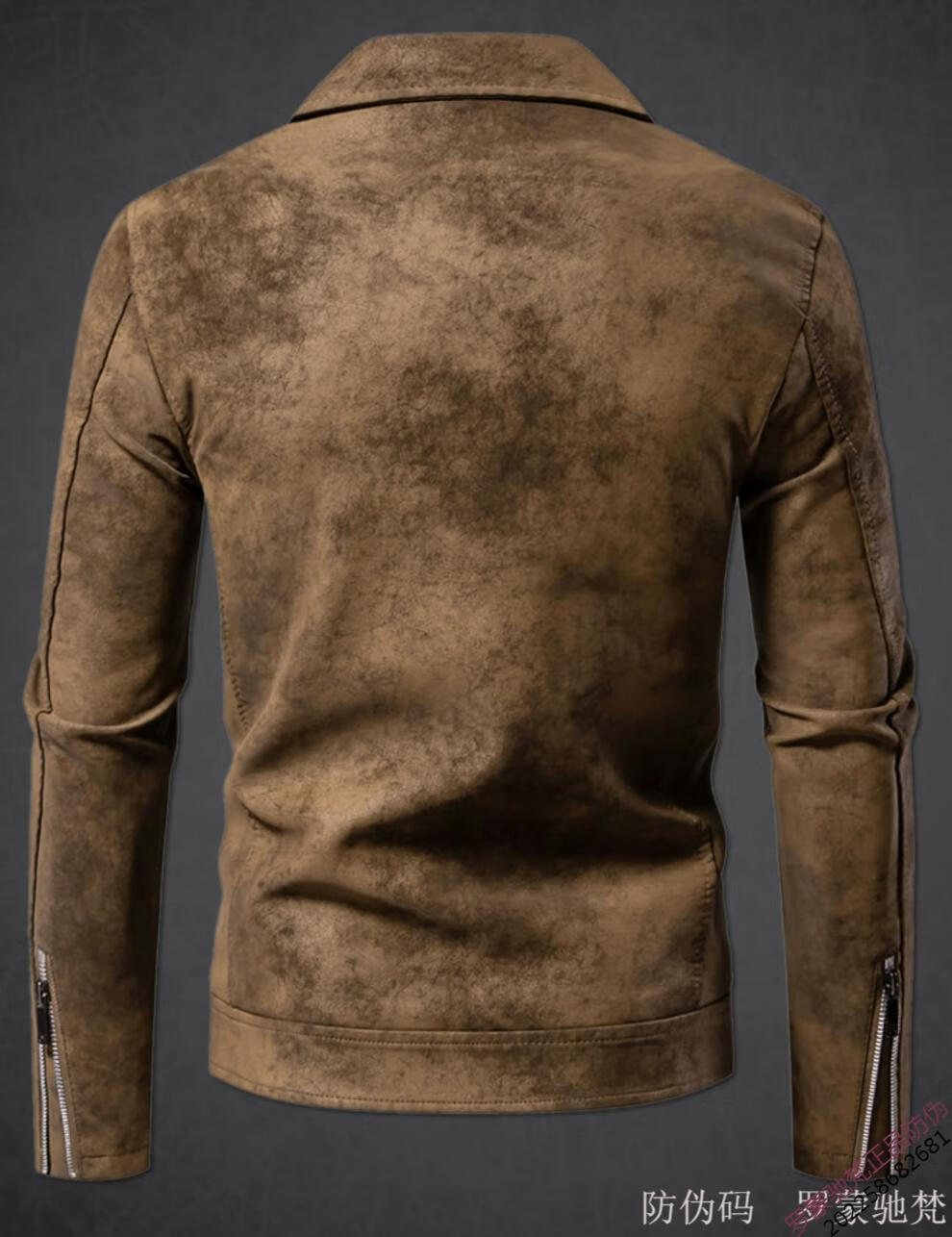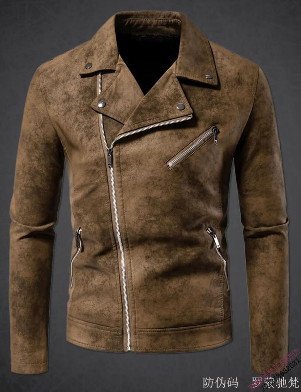 ROMON diagonal zipper jacket men's leather jacket American retro lapel soft leather jacket handsome style Harley motorcycle motorcycle clothing new product green Paul offline same style XL suitable for 125-140Jin Jin equals 0.5 kg