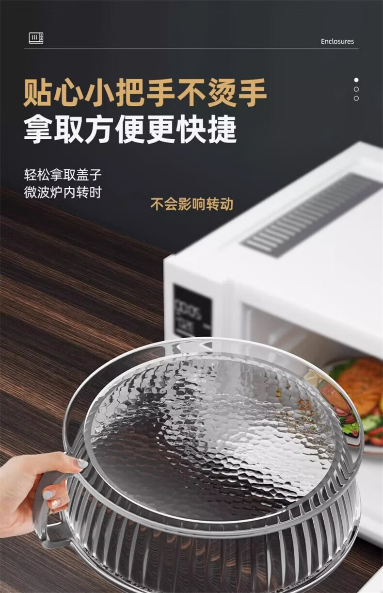 YOUQIN Microwave Oven Oil-proof Cover High Temperature Resistant Splash-proof Cover Home Kitchen Hot Dish Cover Microwave Heating Insulation Cover Can Be Stacked Transparent Color-Large High Temperature Resistant/Easy to Clean