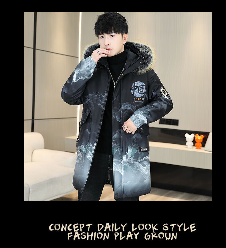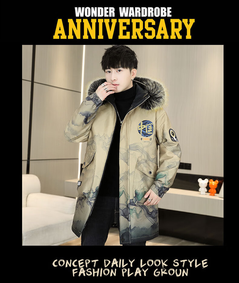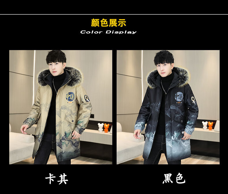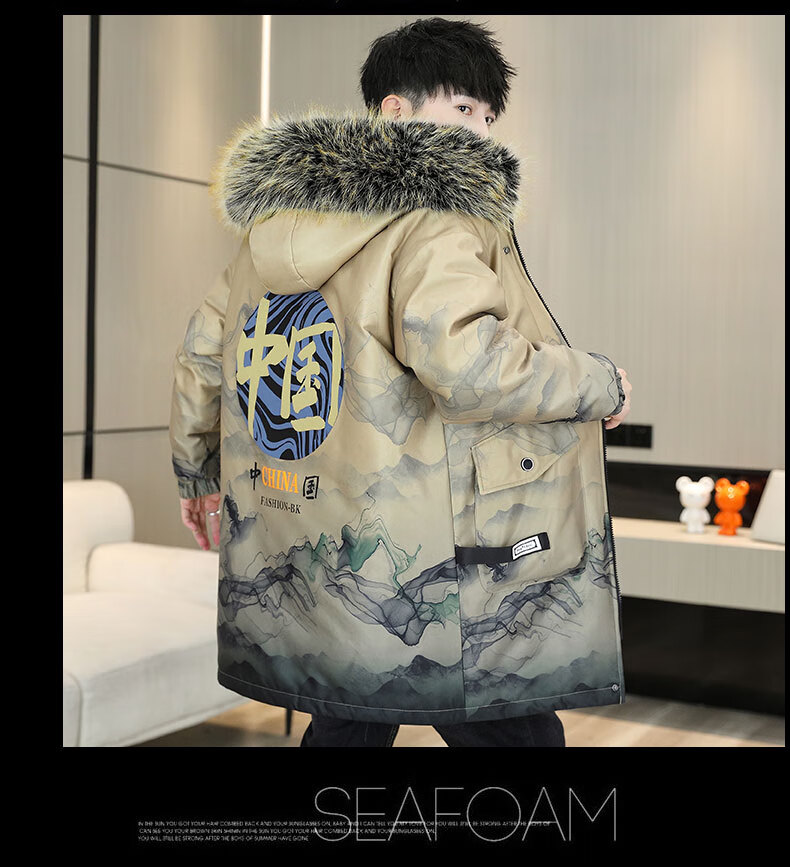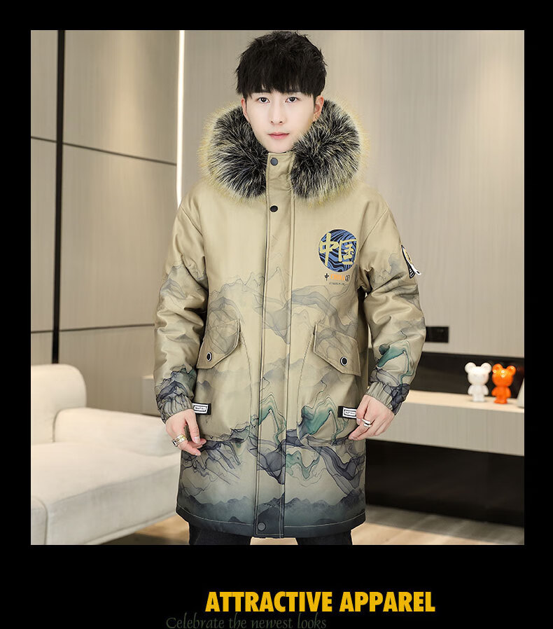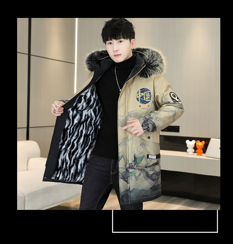 皮尔卡丹(pierre cardin)冬季男士风衣中长款加绒加厚连帽夹克潮流休闲帅气高级感棉衣外套 卡其色 M 90-110斤