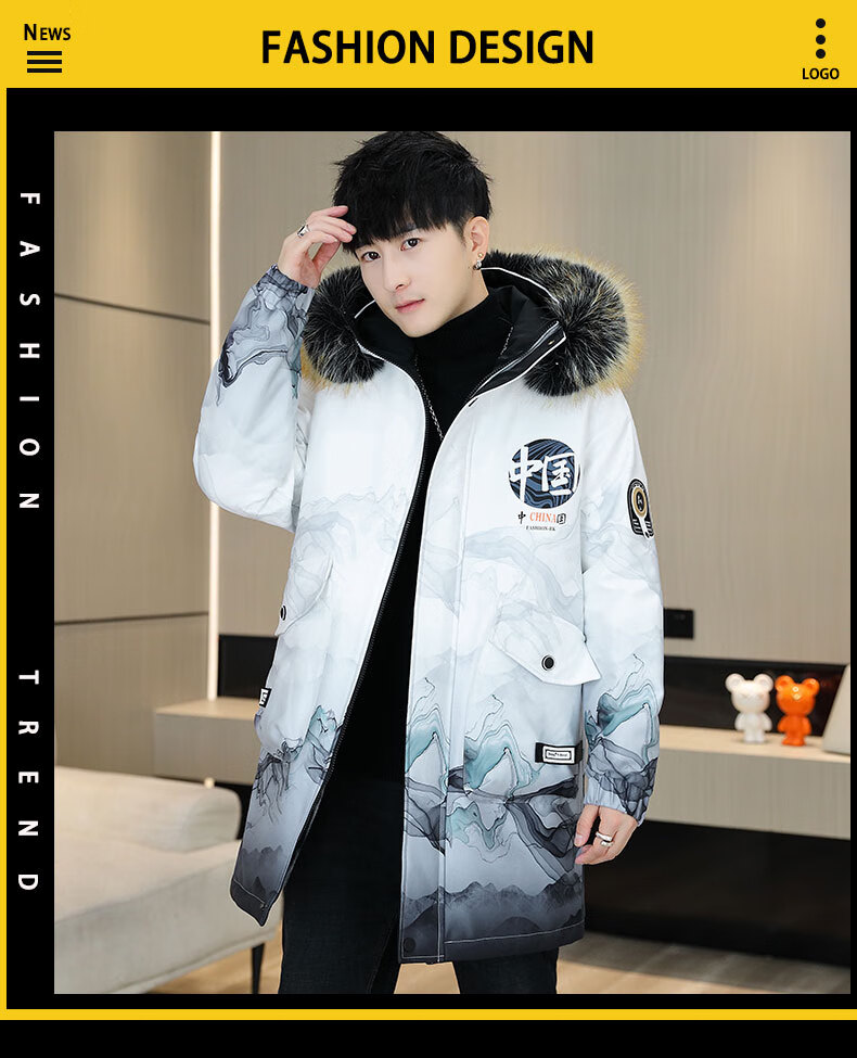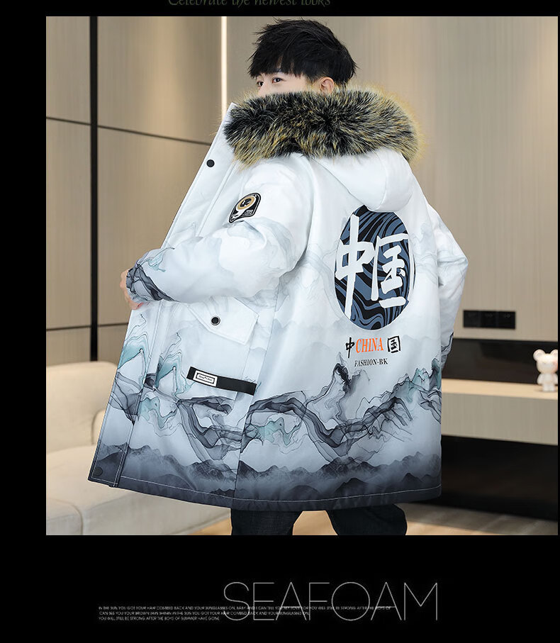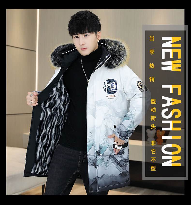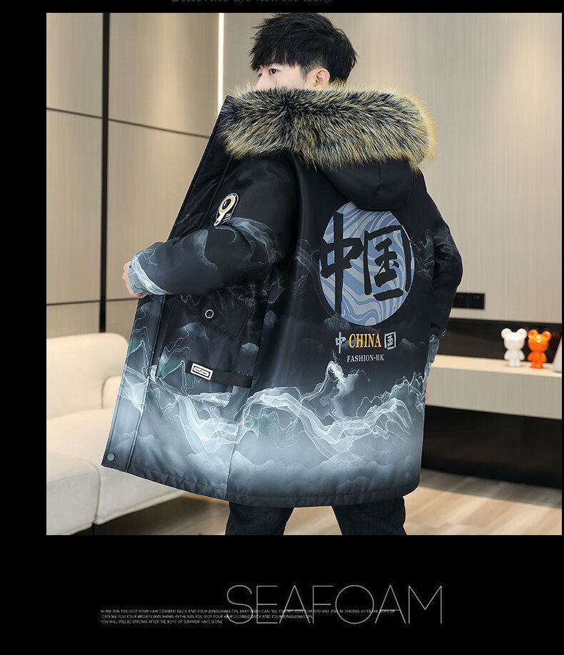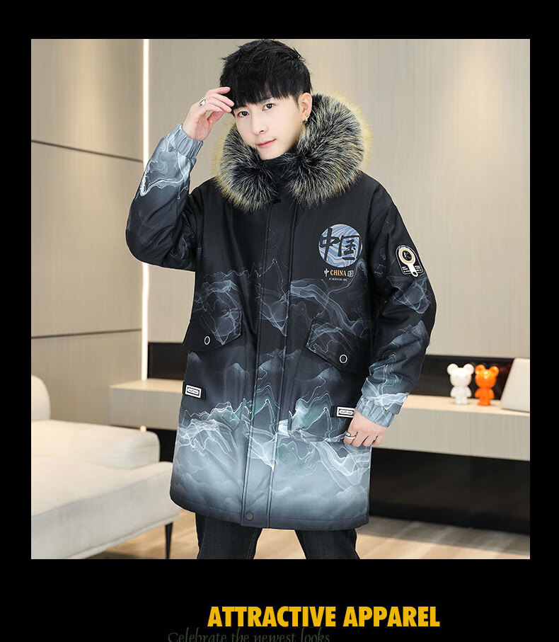 皮尔卡丹(pierre cardin)冬季男士风衣中长款加绒加厚连帽夹克潮流休闲帅气高级感棉衣外套 卡其色 M 90-110斤
