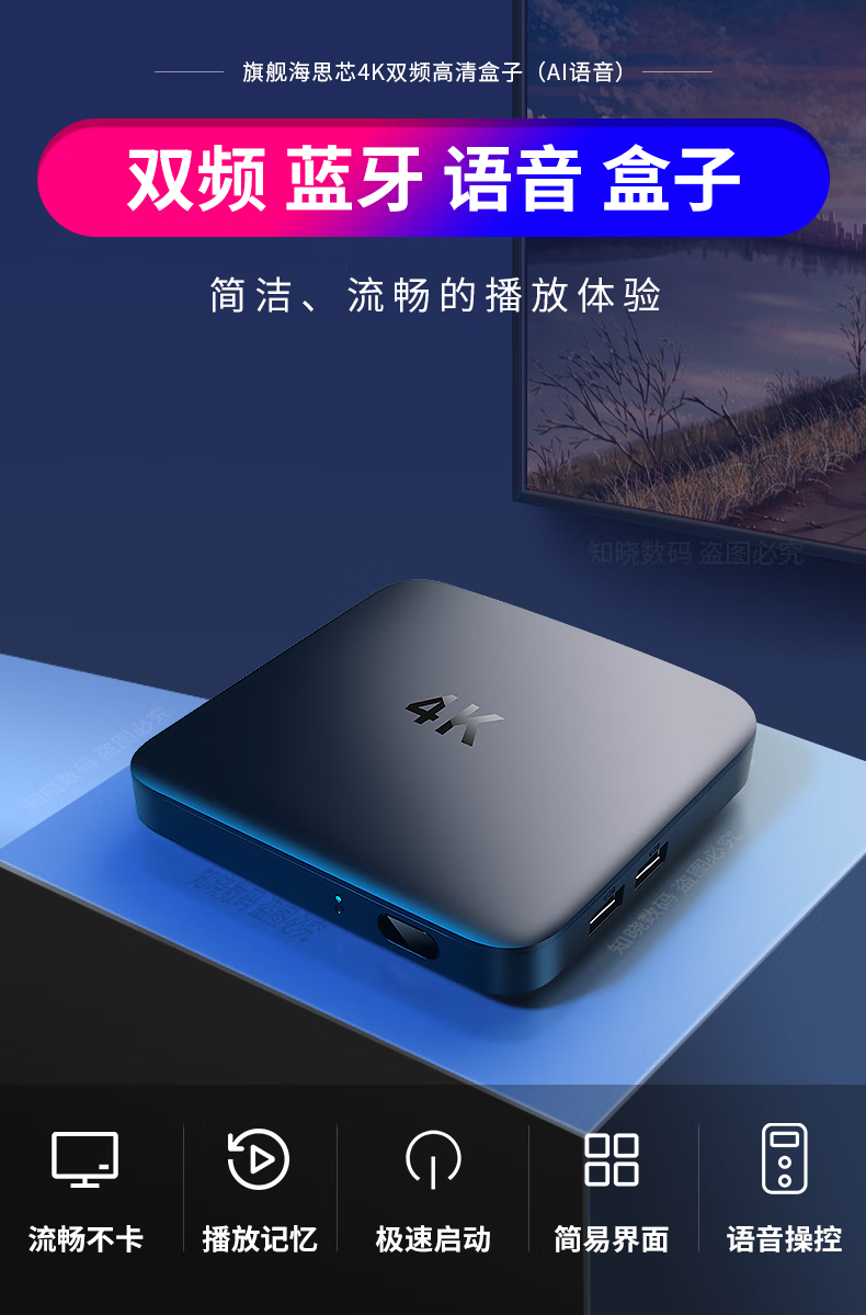 Seminy werbefreies Startup | Kostenlose Dialekt-Sprach-TV-Box, Heimnetzwerk, Set-Top-Box, WLAN, hochauflösender 4K-Live-Übertragungsbildschirm, kabelgebunden, kabellos, universelles Netzwerk, Dualband, 5G, WiFi-Version + digitale Bluetooth-Fernbedienung (Sprachsteuerung).