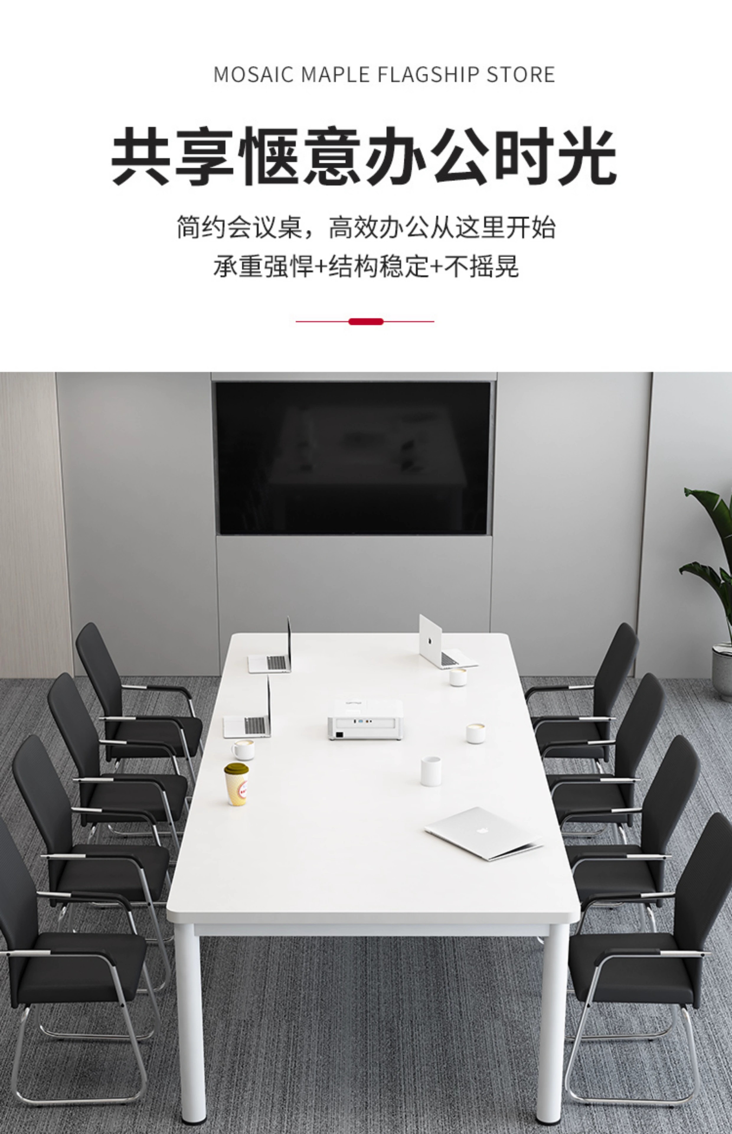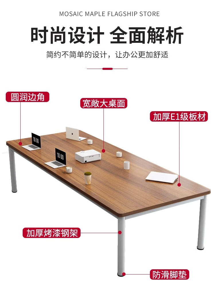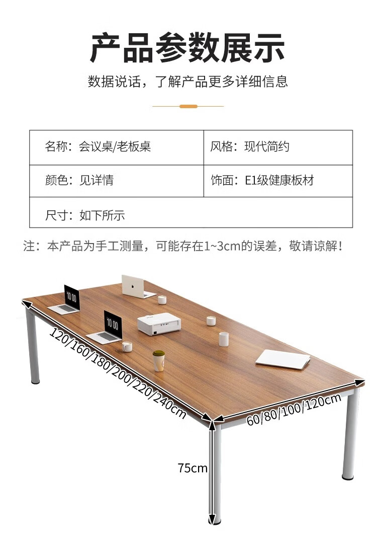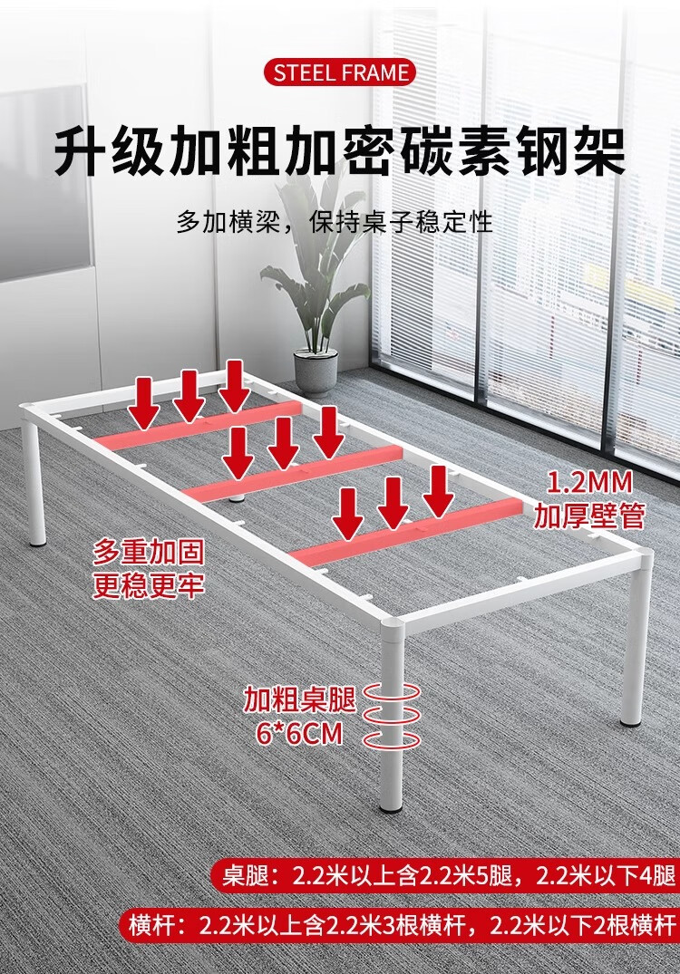 柜隆高会议桌长方形办公桌小型洽谈桌工作台家用餐桌电脑桌加厚25mm桌面 240*120*75(升级钢架 25mm桌面)