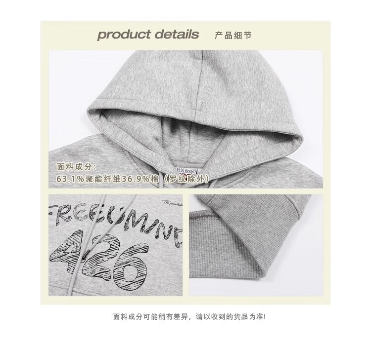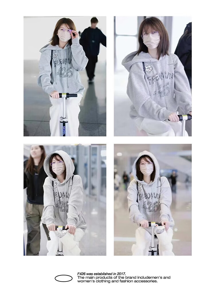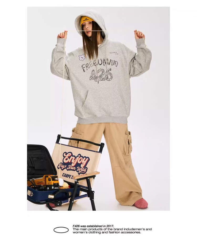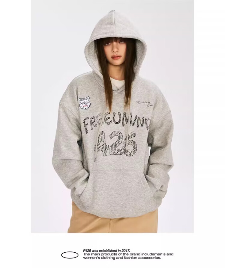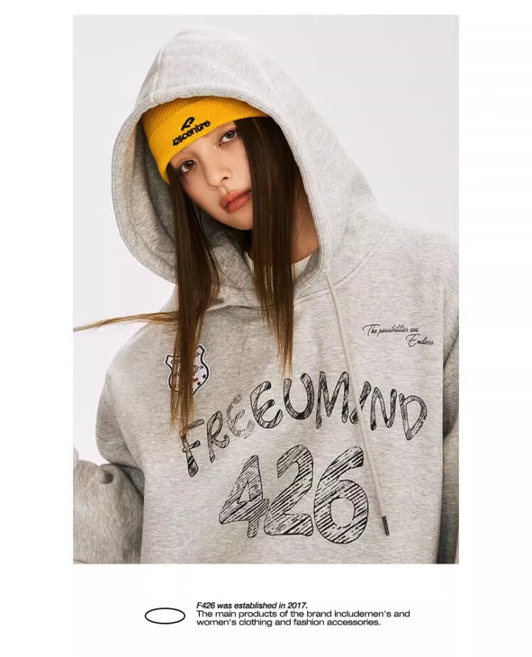 F426【赵露思许妍同款】国潮牌春季情侣美式宽松涂鸦手绘连帽卫衣 灰色 S