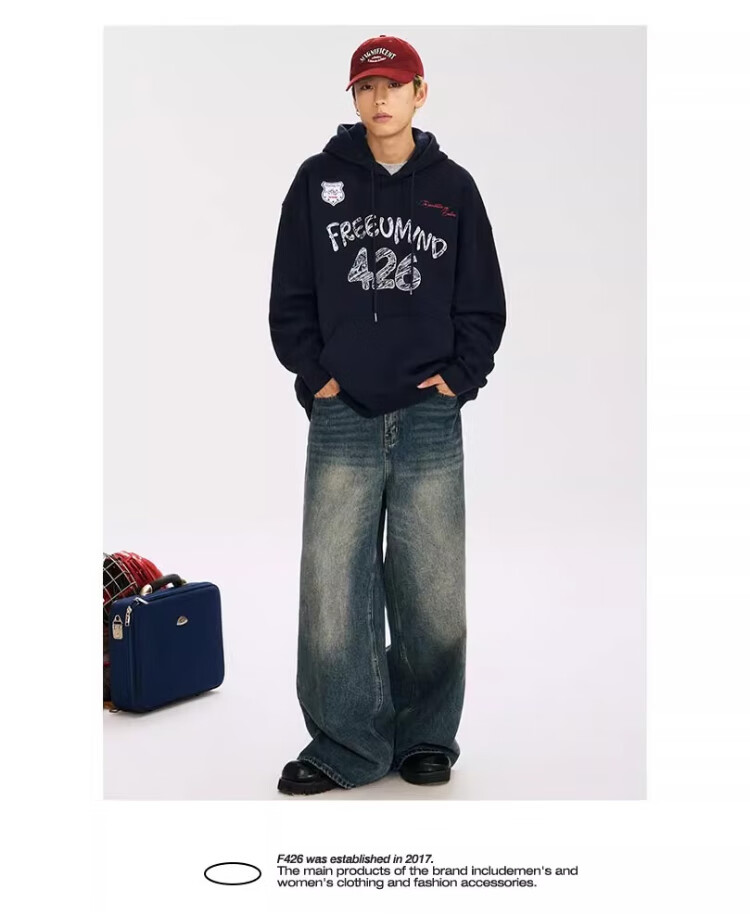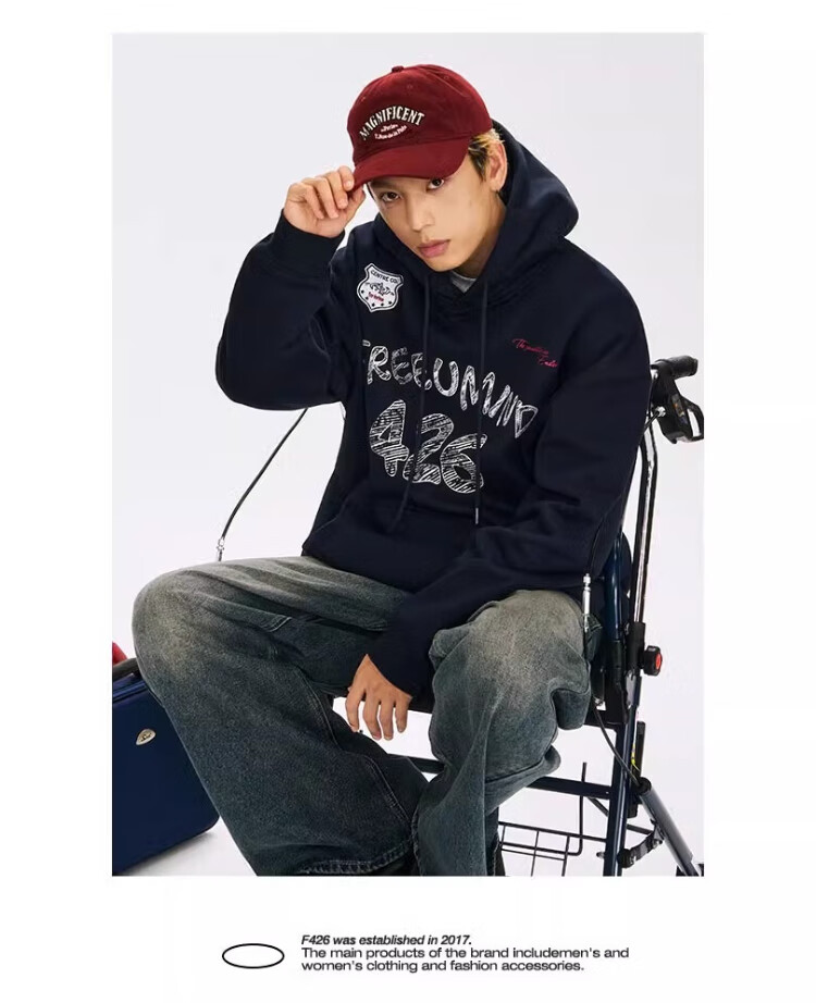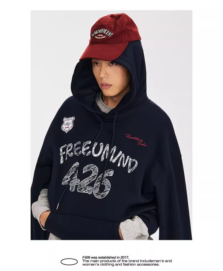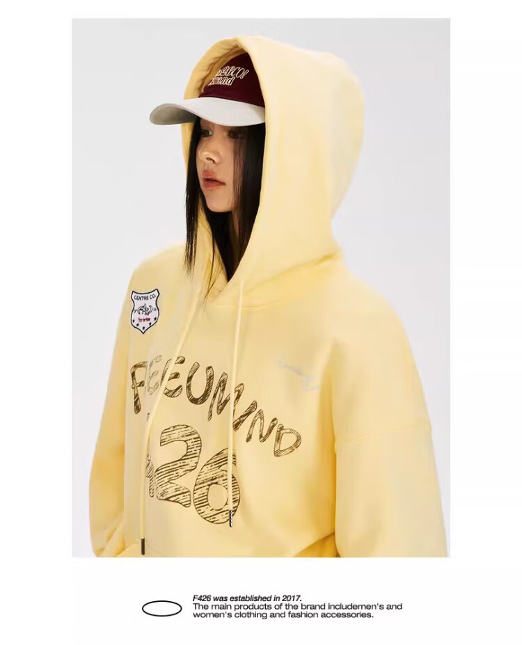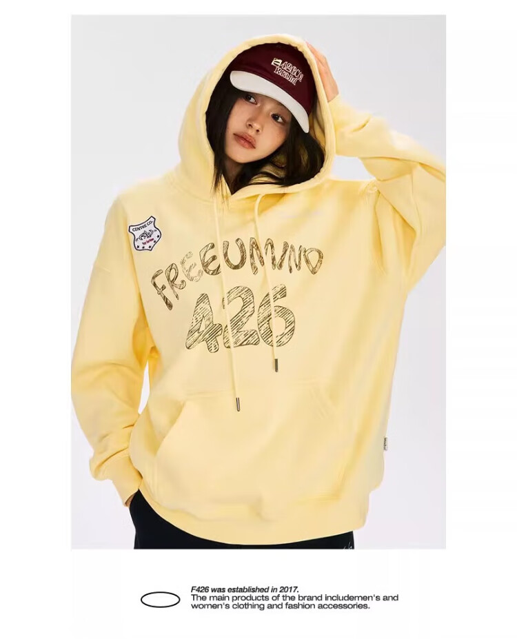 F426【赵露思许妍同款】国潮牌春季情侣美式宽松涂鸦手绘连帽卫衣 灰色 S