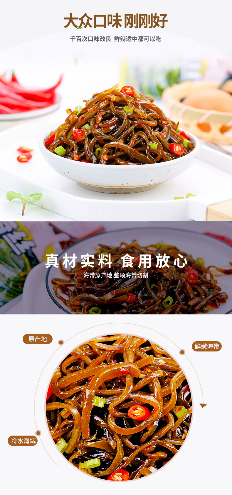 海带丝开袋即食香辣下饭菜休闲零食小包装早餐开胃咸菜凉拌菜海川 香辣海带丝30g*3袋(热销款)