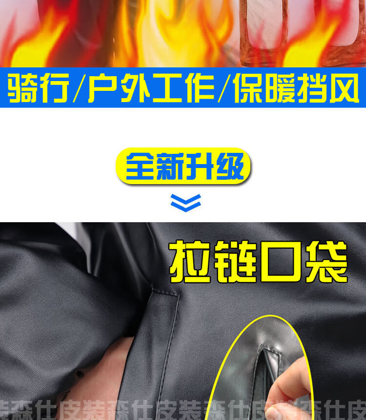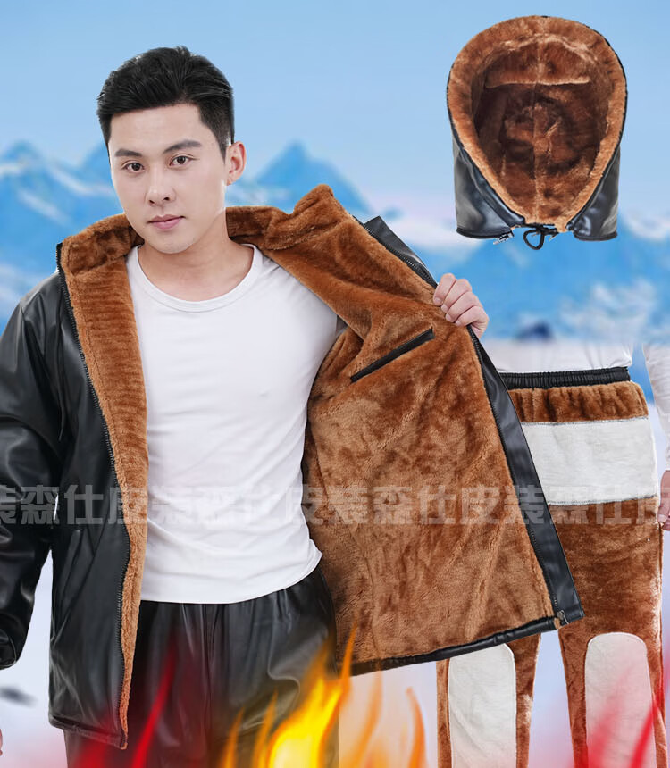 NASALIKE加绒加厚皮衣皮裤套装男皮棉衣冬季骑行外卖防风宽松工作服皮外套 拉链斜兜套装/可拆帽皮衣+直 加 3XL (社会小伙) 【140-160斤】