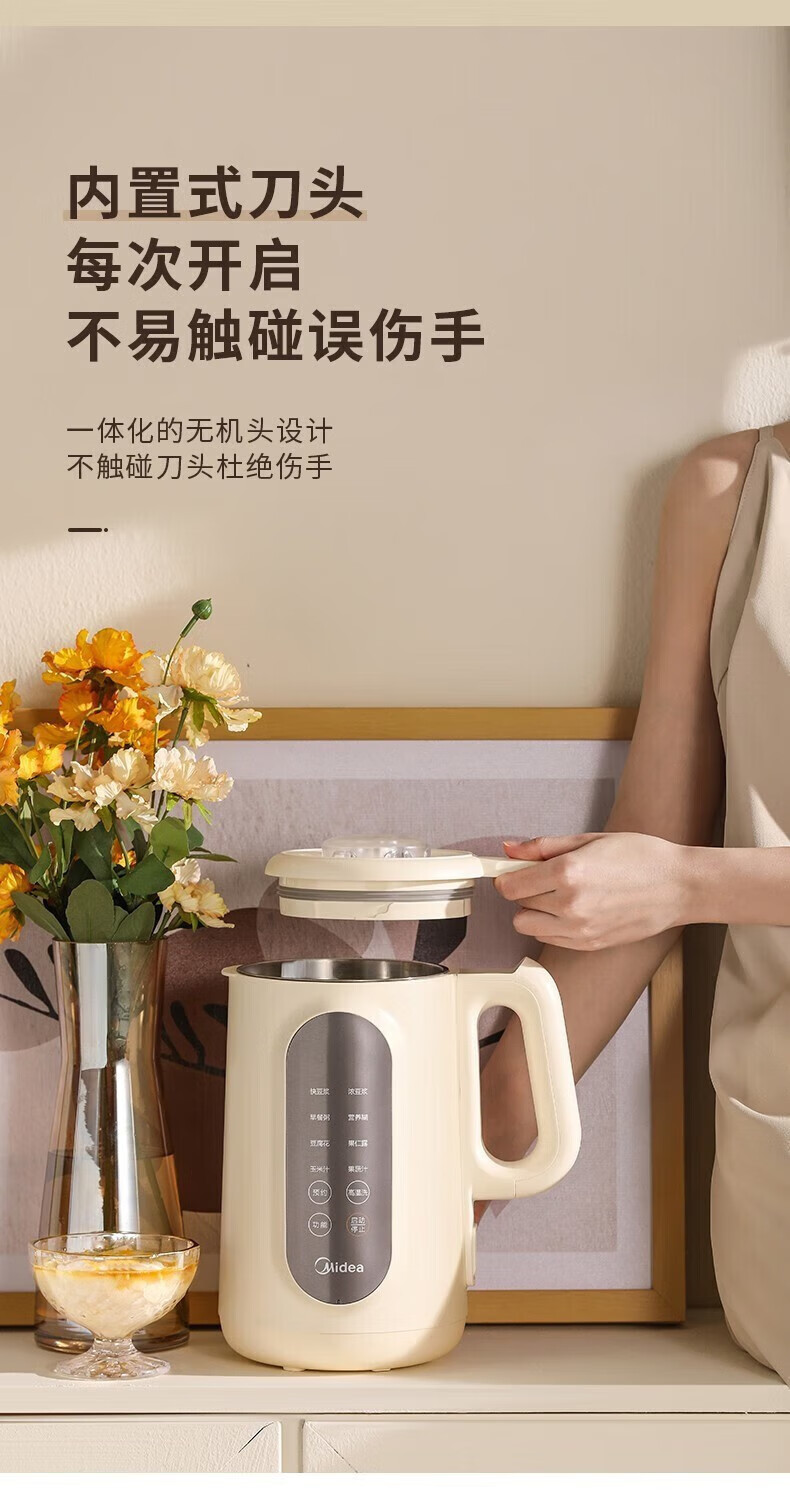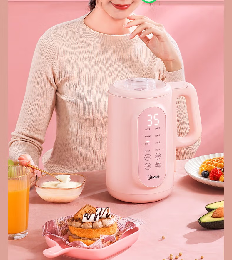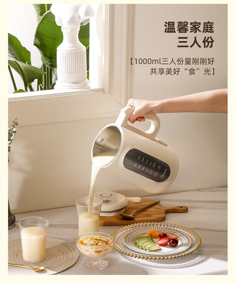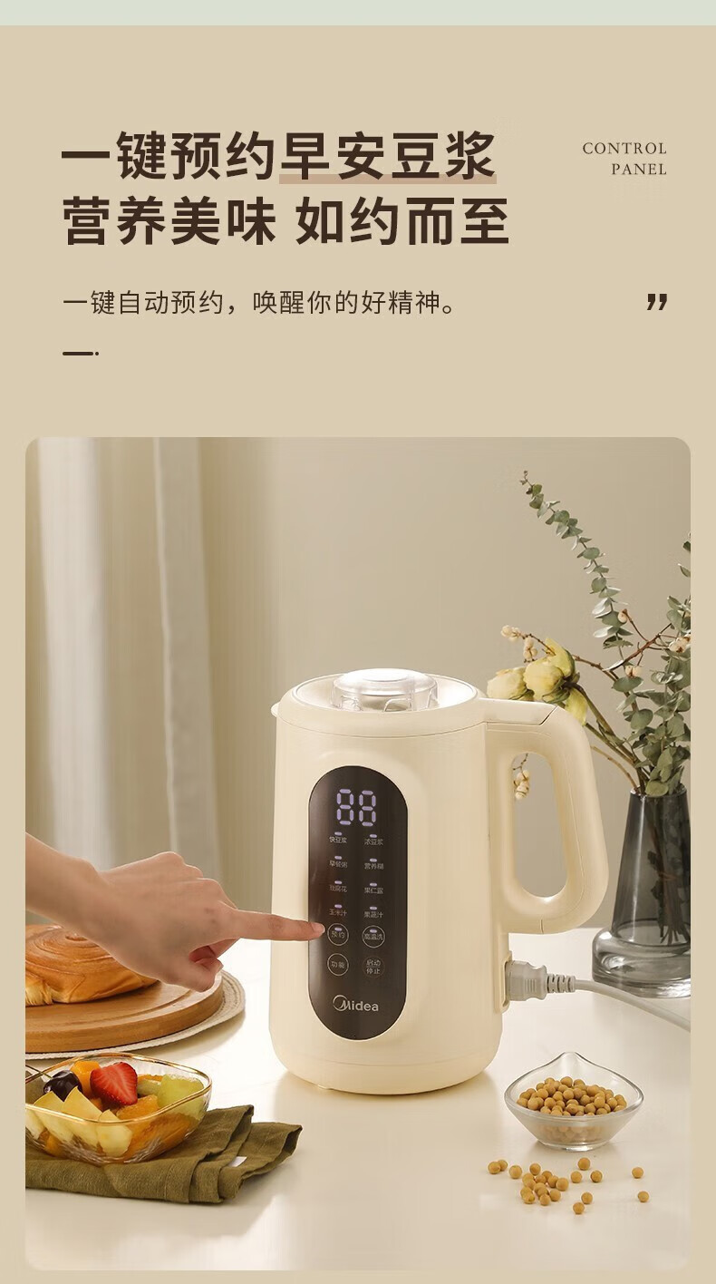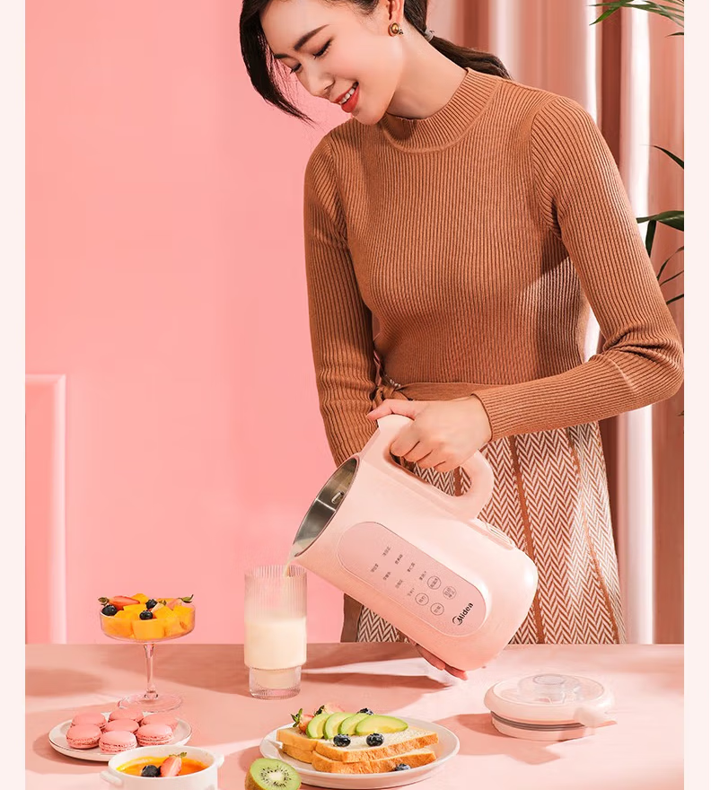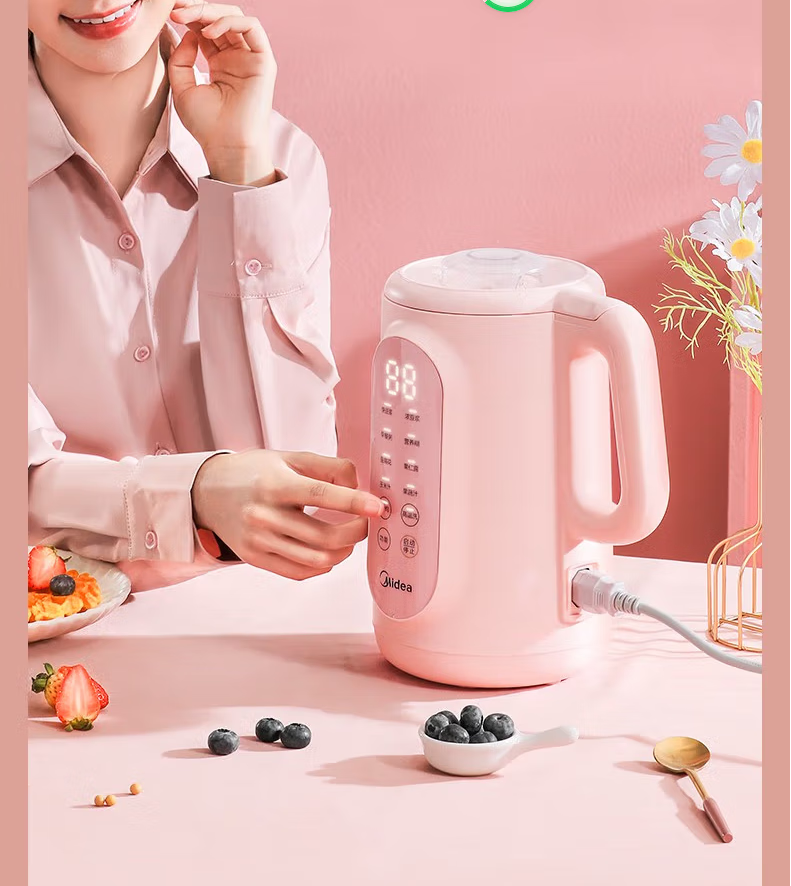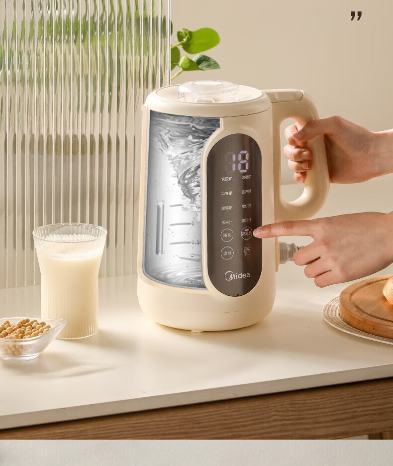 Midea Sojamilchmaschine, kleine Wandbrechmaschine, 1–2–6 Personen, vollautomatisch, ohne Kochen, Müsli, für den Haushalt, ohne Filter, ohne Nahrungsergänzung, ohne Kochen, ohne Filter, 12 Stunden, Reservierung DJ10B-P701, 1 l