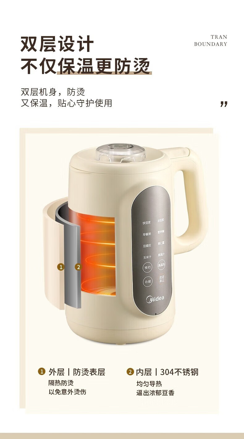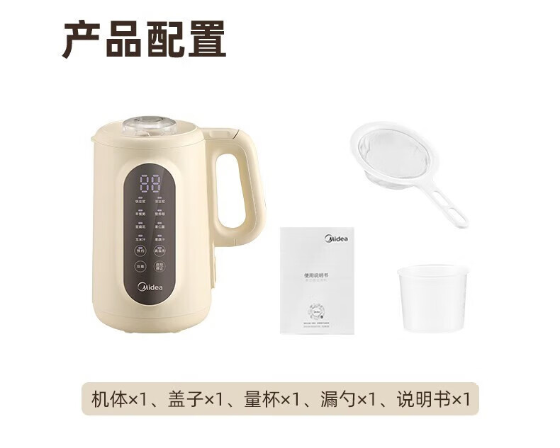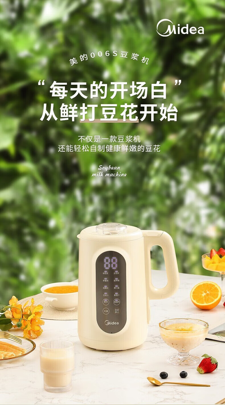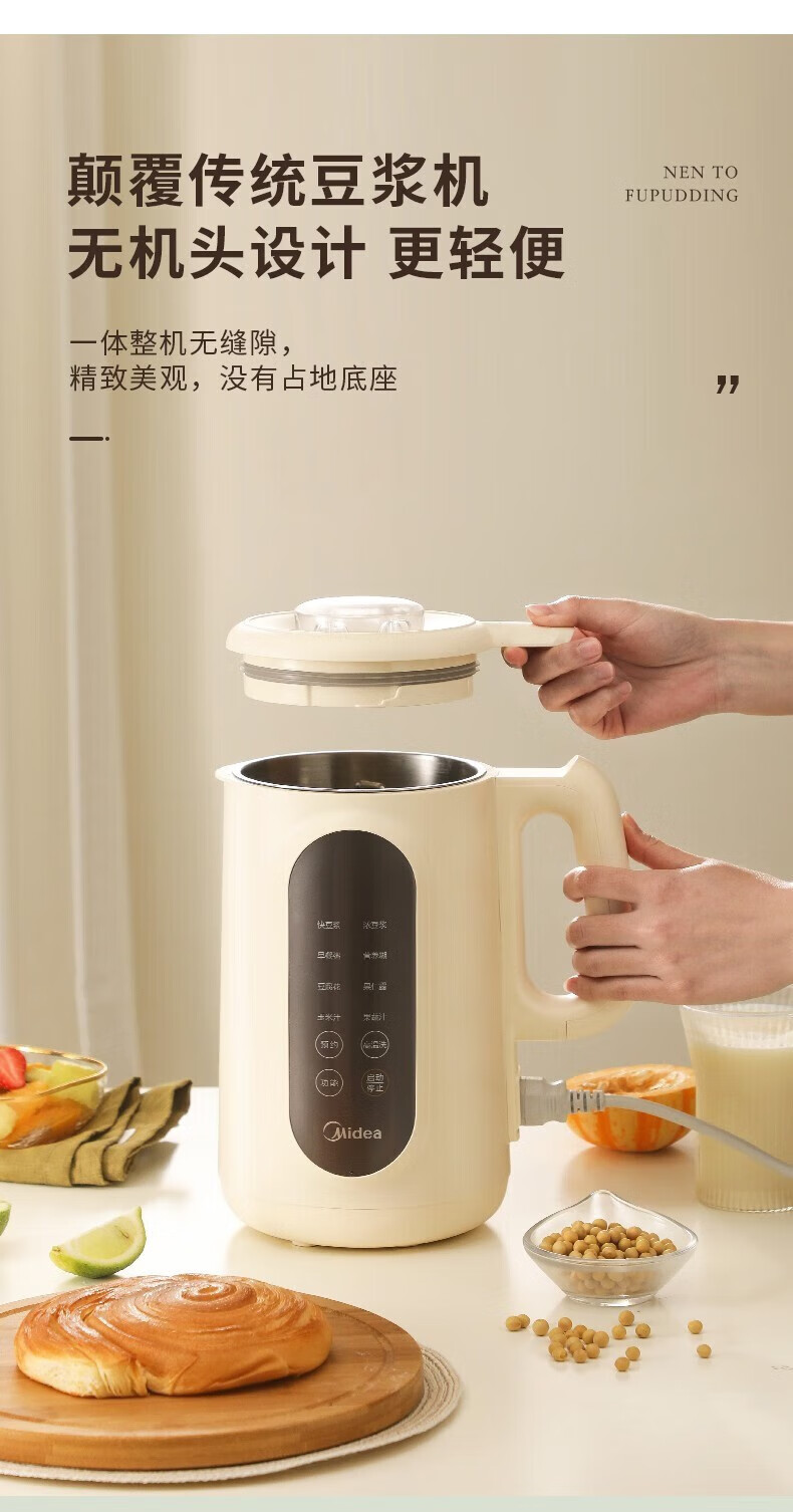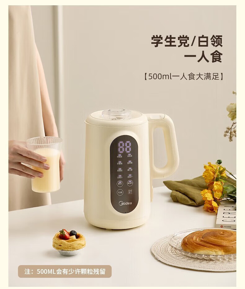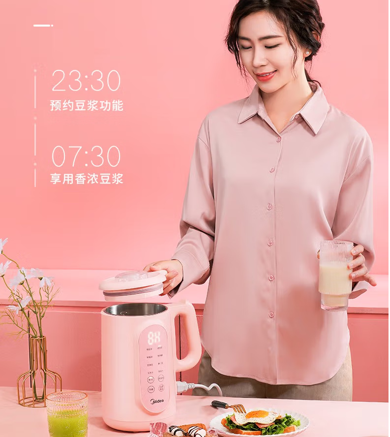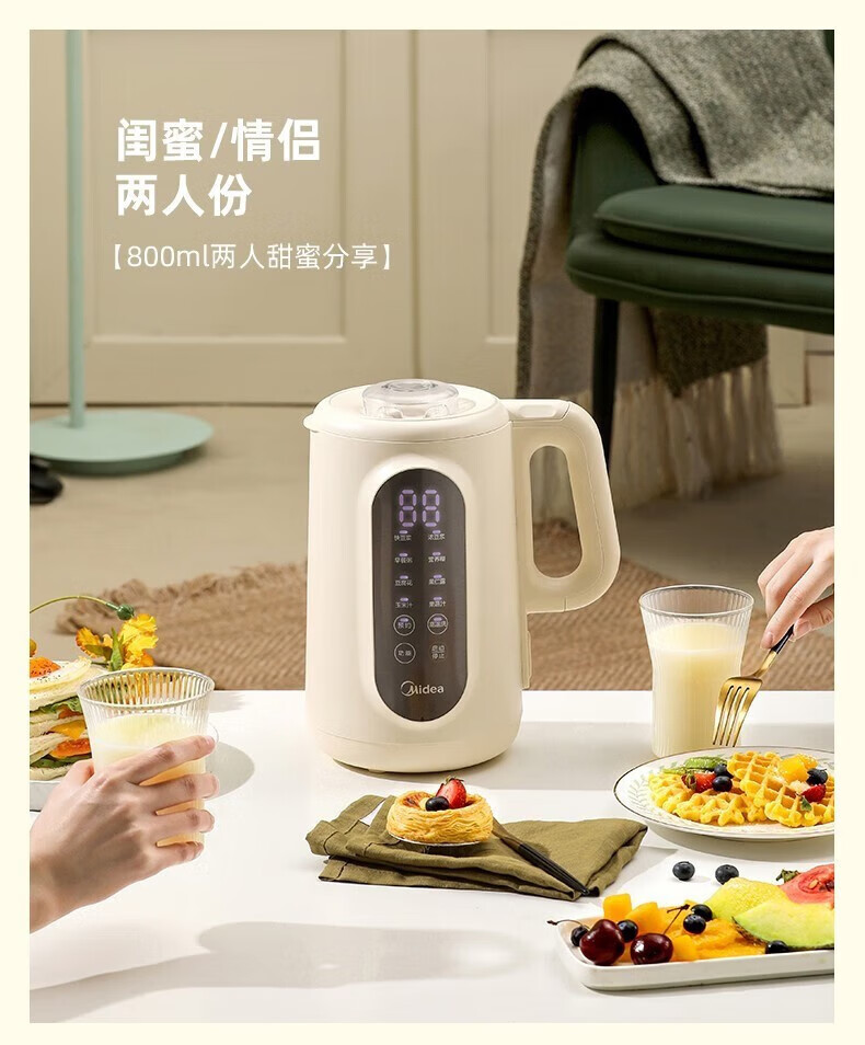 Midea Sojamilchmaschine, kleine Wandbrechmaschine, 1–2–6 Personen, vollautomatisch, ohne Kochen, Müsli, für den Haushalt, ohne Filter, ohne Nahrungsergänzung, ohne Kochen, ohne Filter, 12 Stunden, Reservierung DJ10B-P701, 1 l