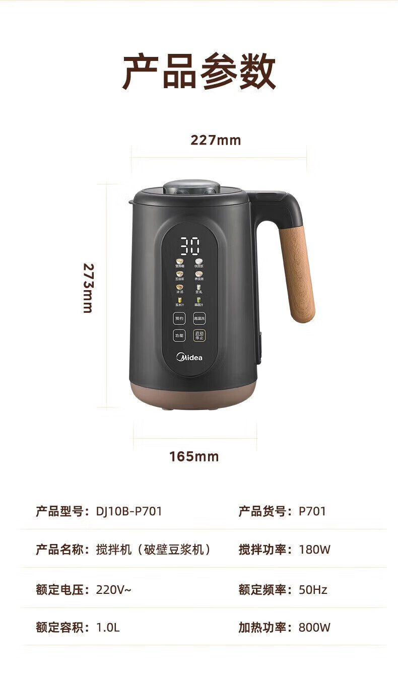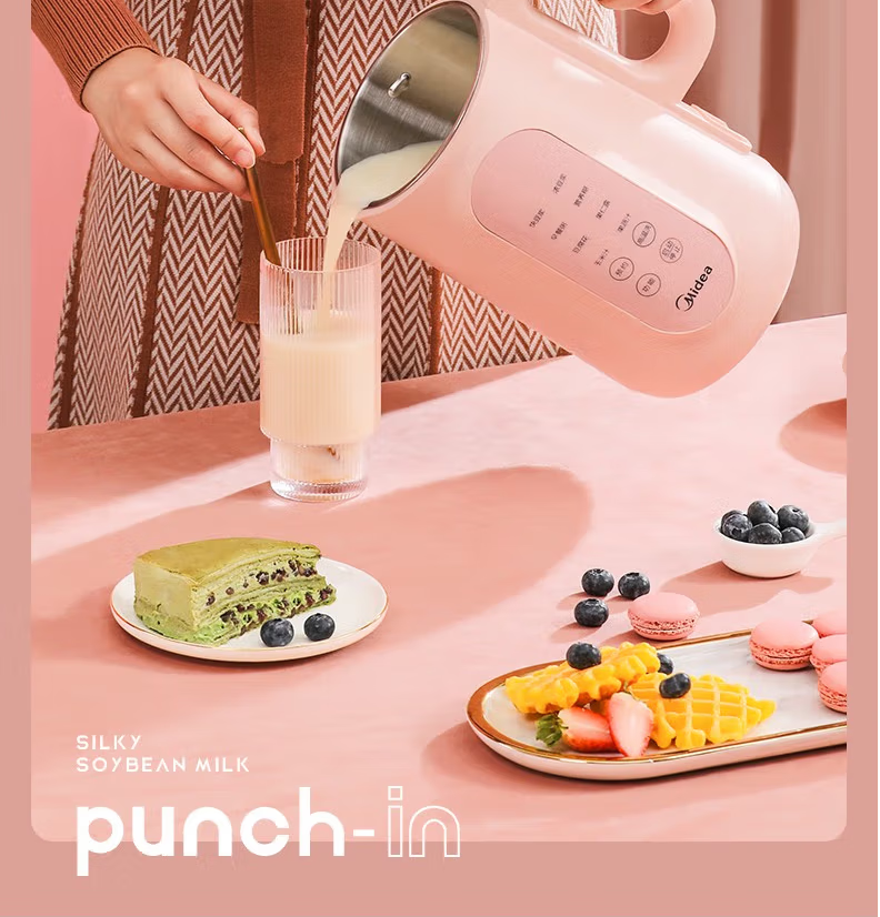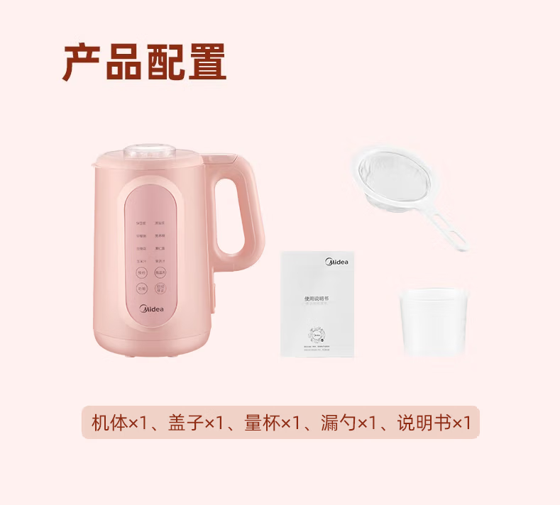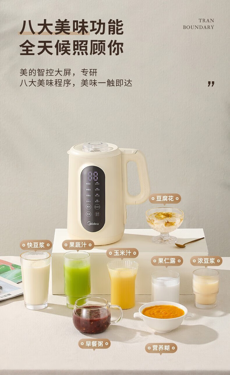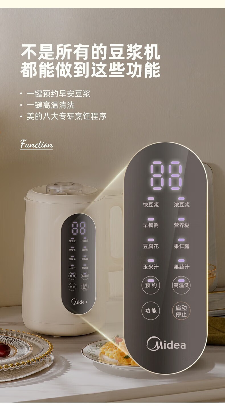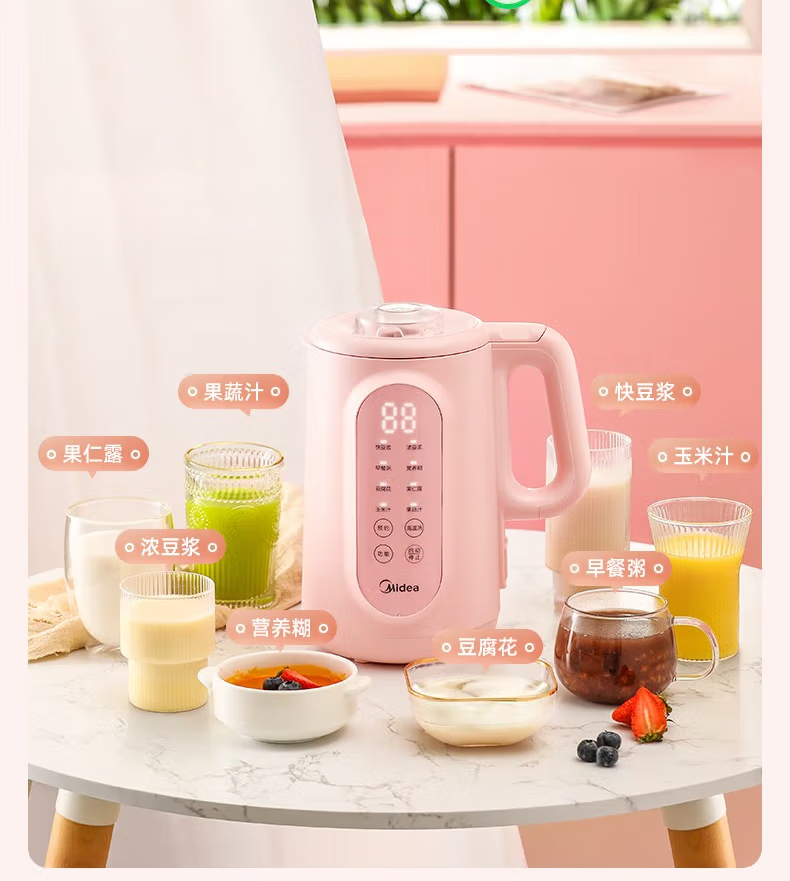 Midea Sojamilchmaschine, kleine Wandbrechmaschine, 1–2–6 Personen, vollautomatisch, ohne Kochen, Müsli, für den Haushalt, ohne Filter, ohne Nahrungsergänzung, ohne Kochen, ohne Filter, 12 Stunden, Reservierung DJ10B-P701, 1 l