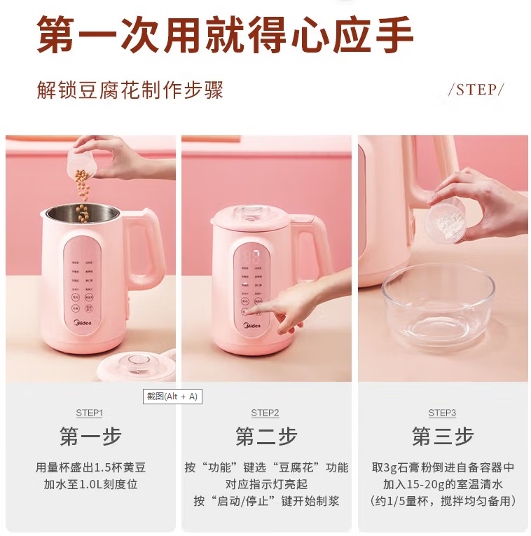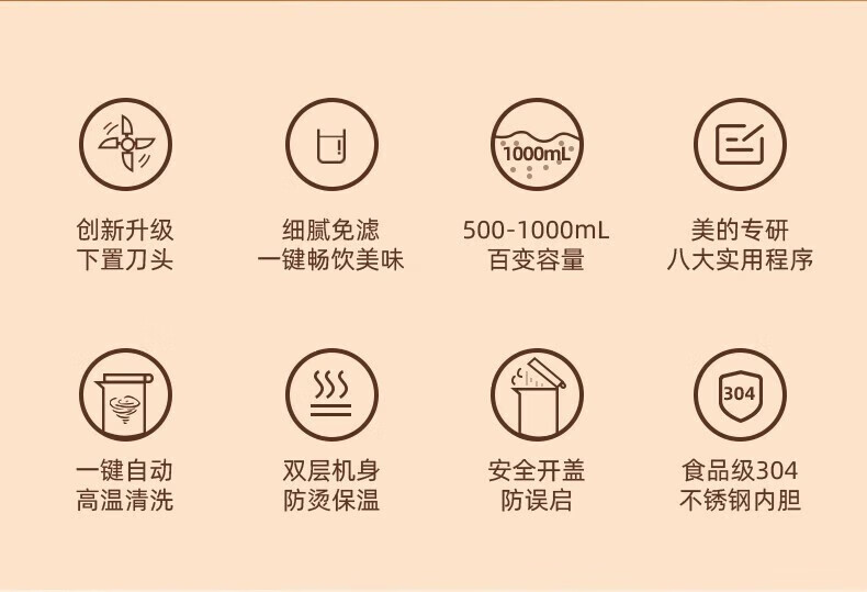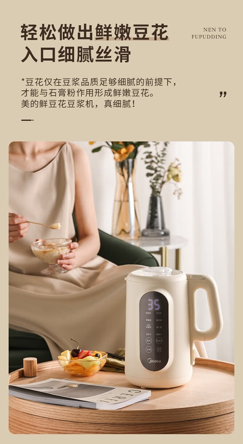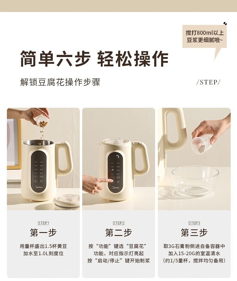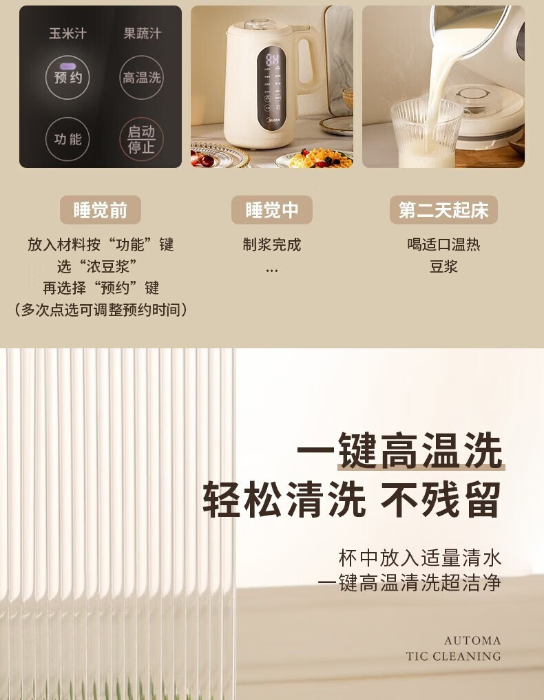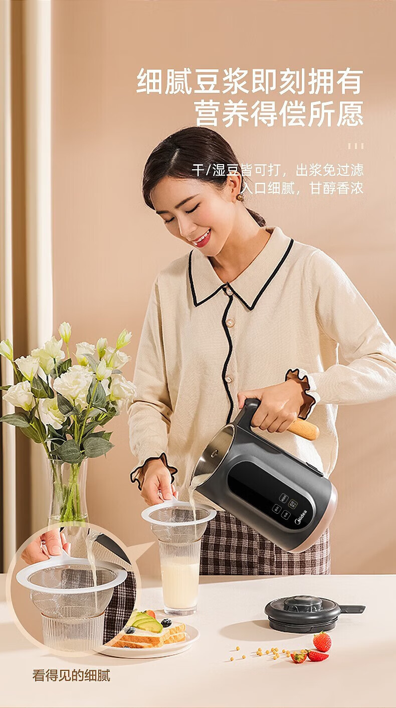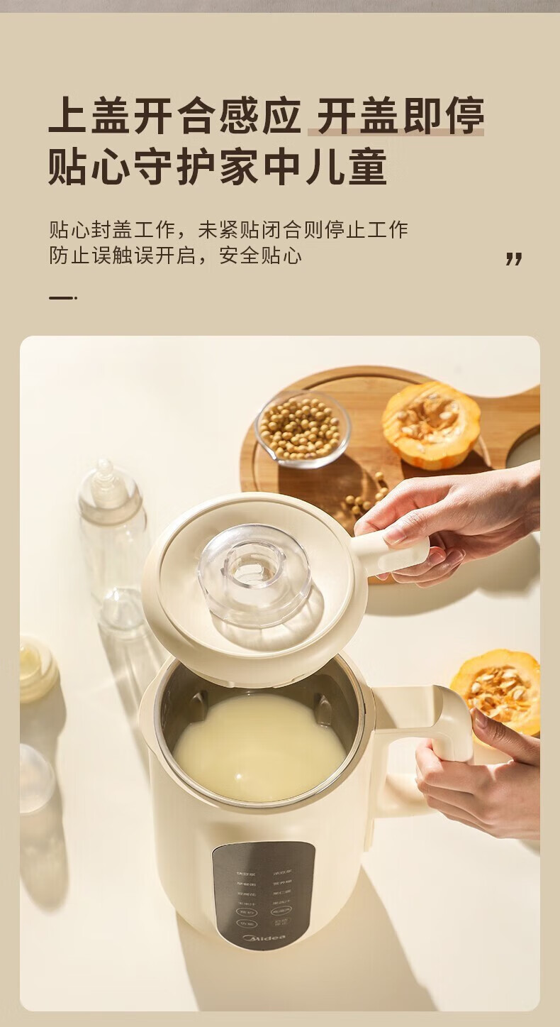 Midea Sojamilchmaschine, kleine Wandbrechmaschine, 1–2–6 Personen, vollautomatisch, ohne Kochen, Müsli, für den Haushalt, ohne Filter, ohne Nahrungsergänzung, ohne Kochen, ohne Filter, 12 Stunden, Reservierung DJ10B-P701, 1 l