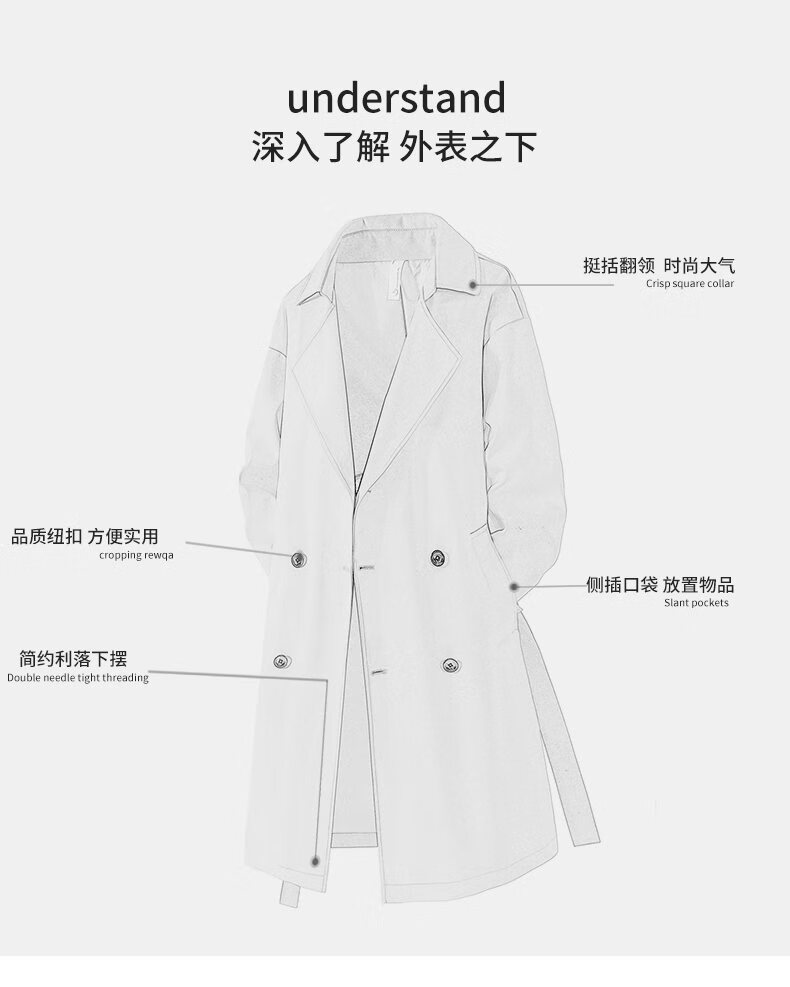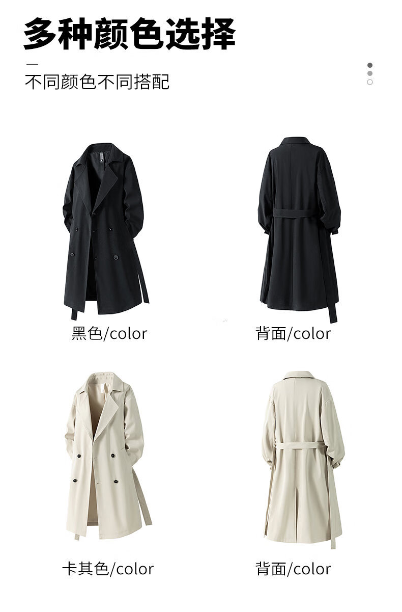 NASA XVVX官方联名秋冬新款中长款风衣男生宽松休闲双排扣过膝大衣外套男 黑色 3XL