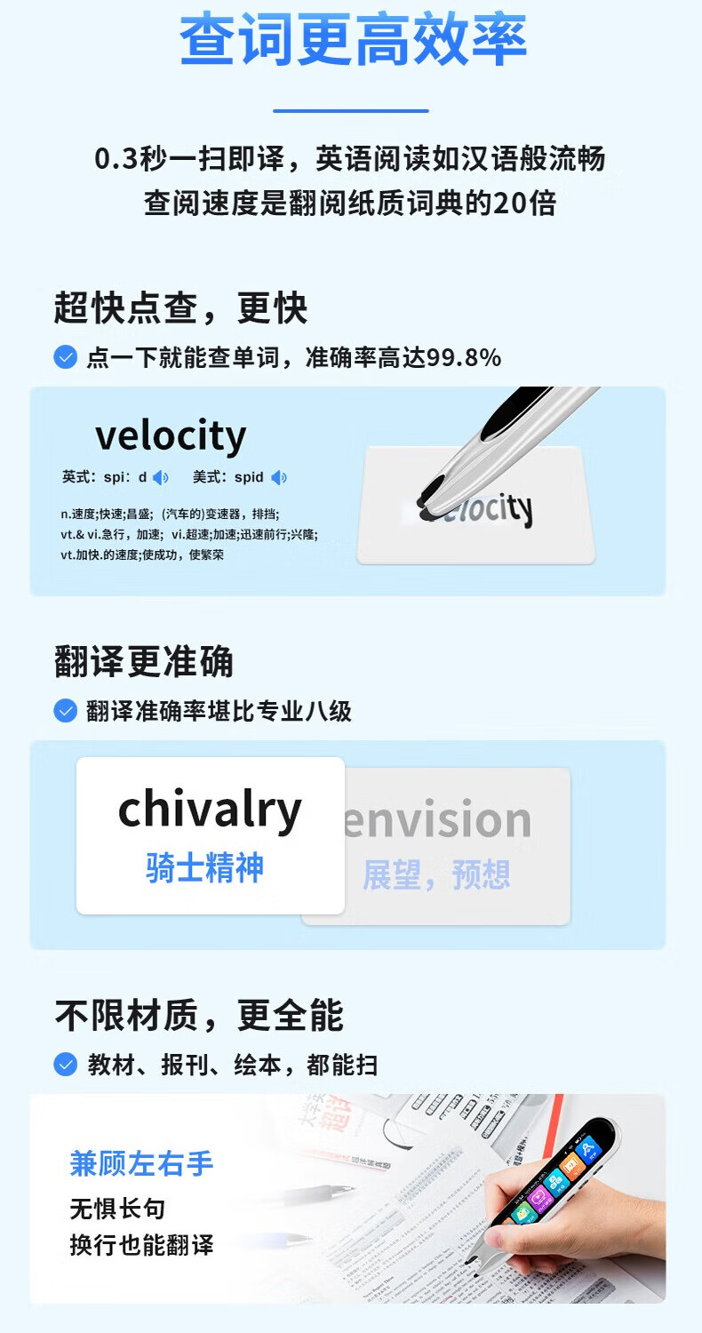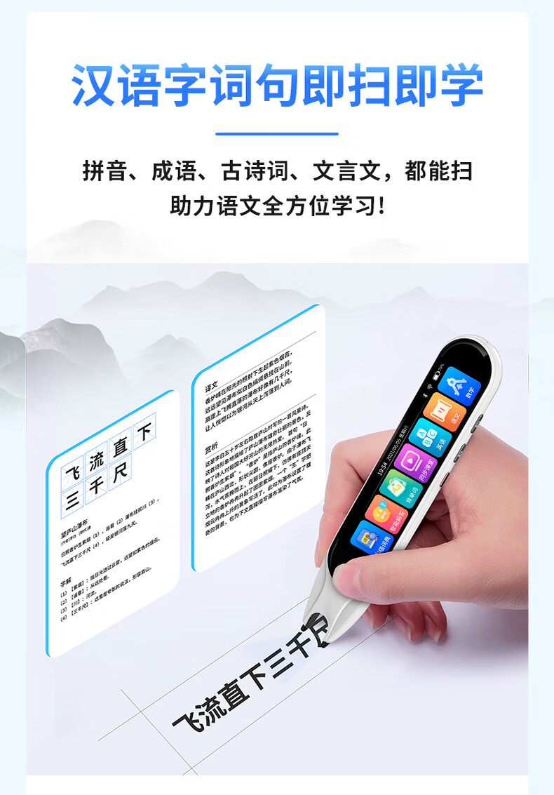 阿尔法离线点读笔全科通用词典笔万能扫描英语翻译笔多功能扫读笔 白—全科离线免费学 258GB