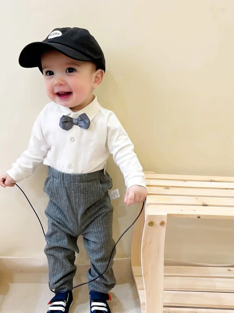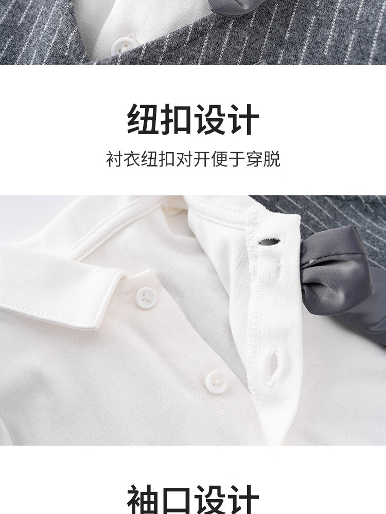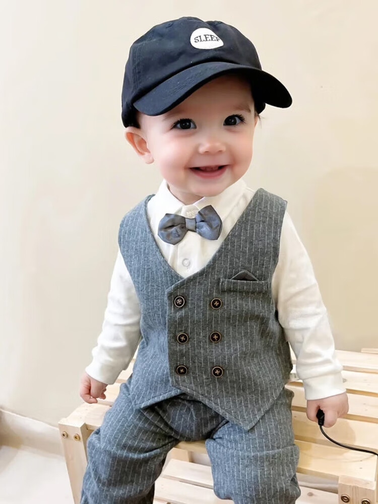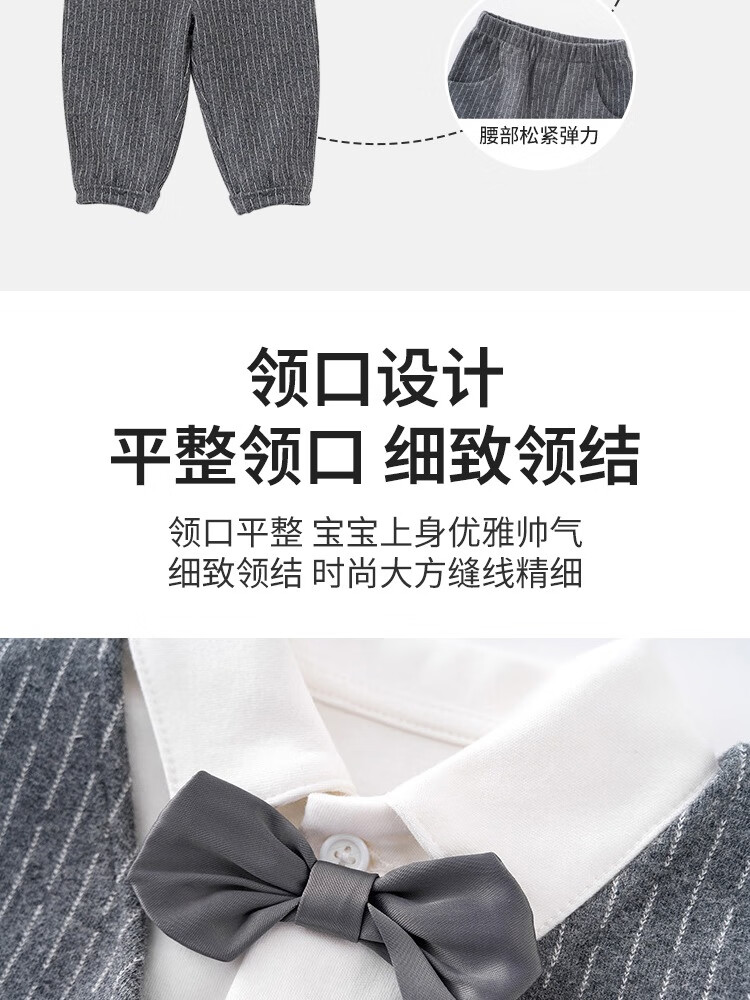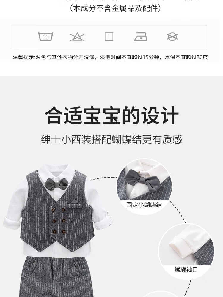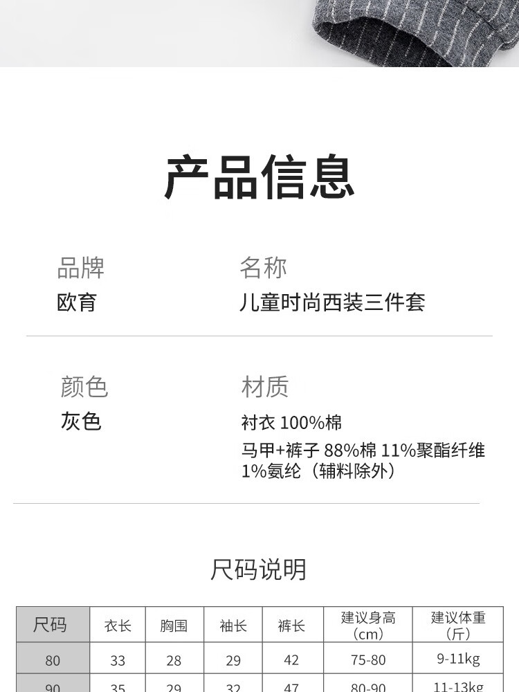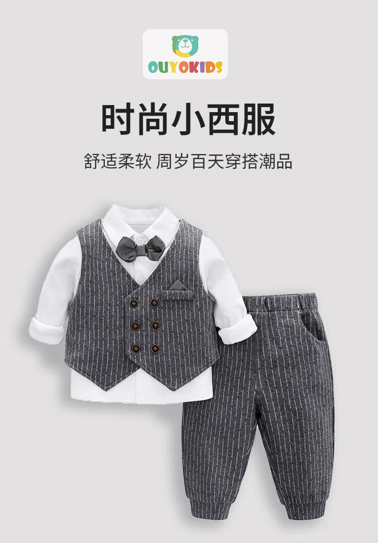 欧育男童套装宝宝周岁衣服秋冬季礼服婴儿花童主持人西装抓周生日衣服 S2034灰色马甲+衬衣+裤子 三件套 80 (身高68-77体重17-20斤)