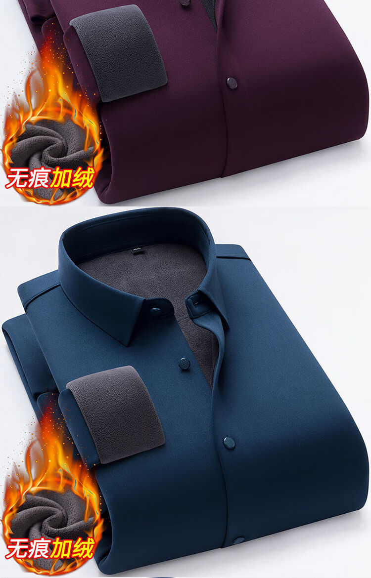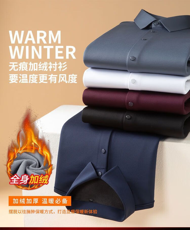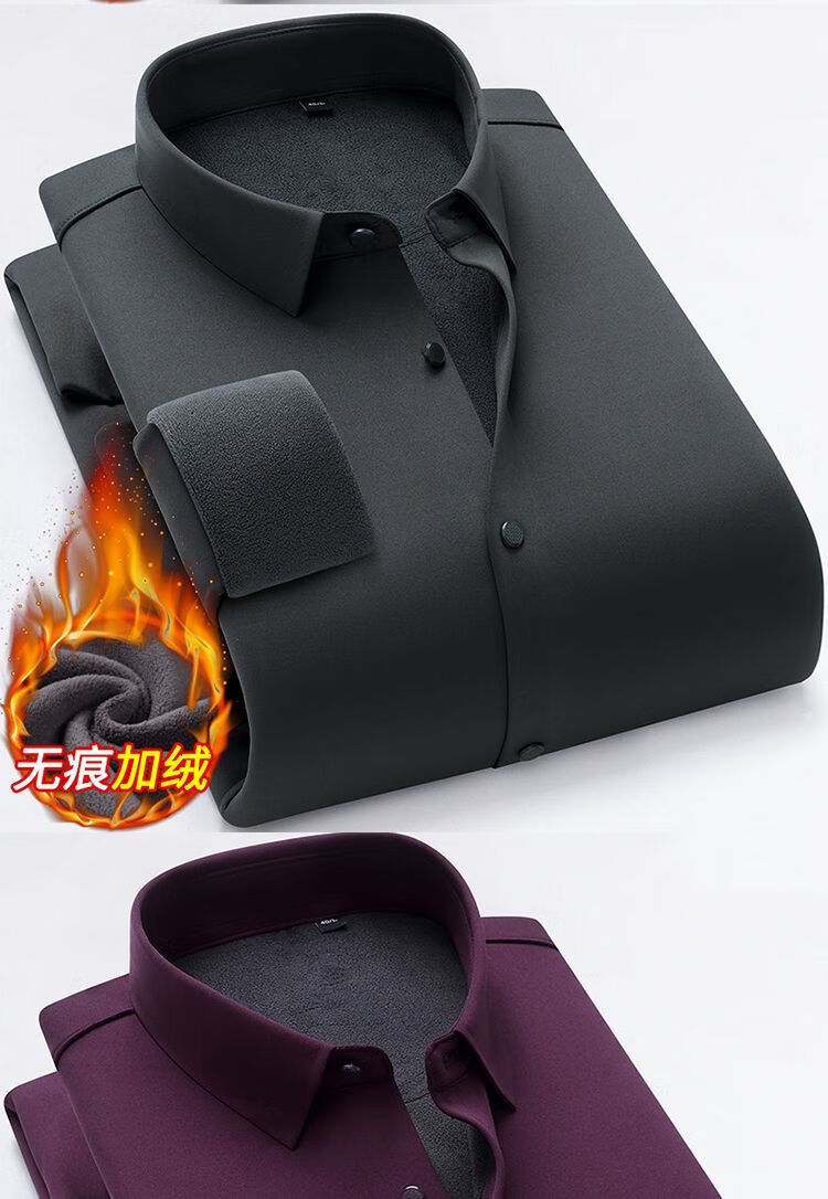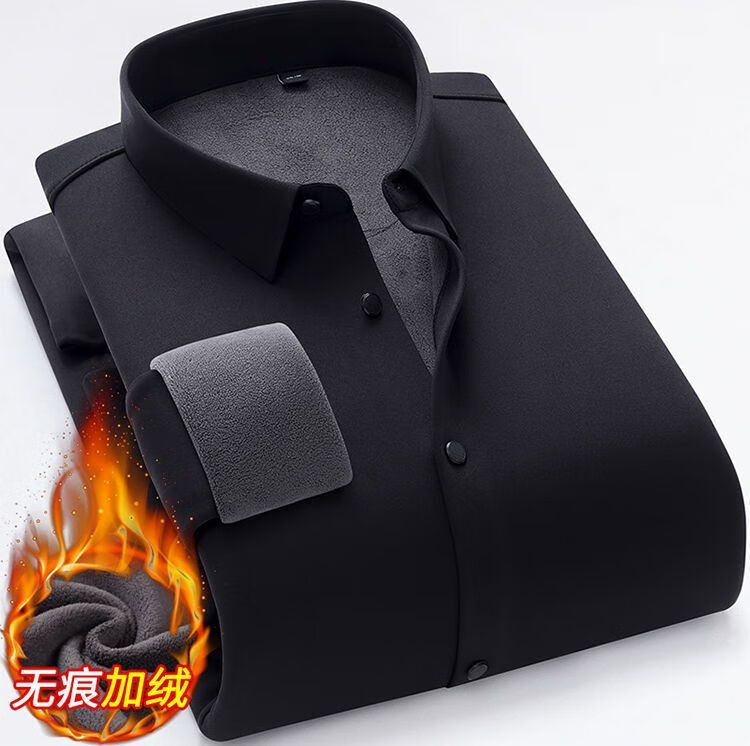 啄木鸟高档无痕保暖衬衫男加绒加厚商务休闲职业工装纯色免烫桑蚕丝衬衣 Z06 黑色/ 保暖 加绒 175/XL 建议130-145斤