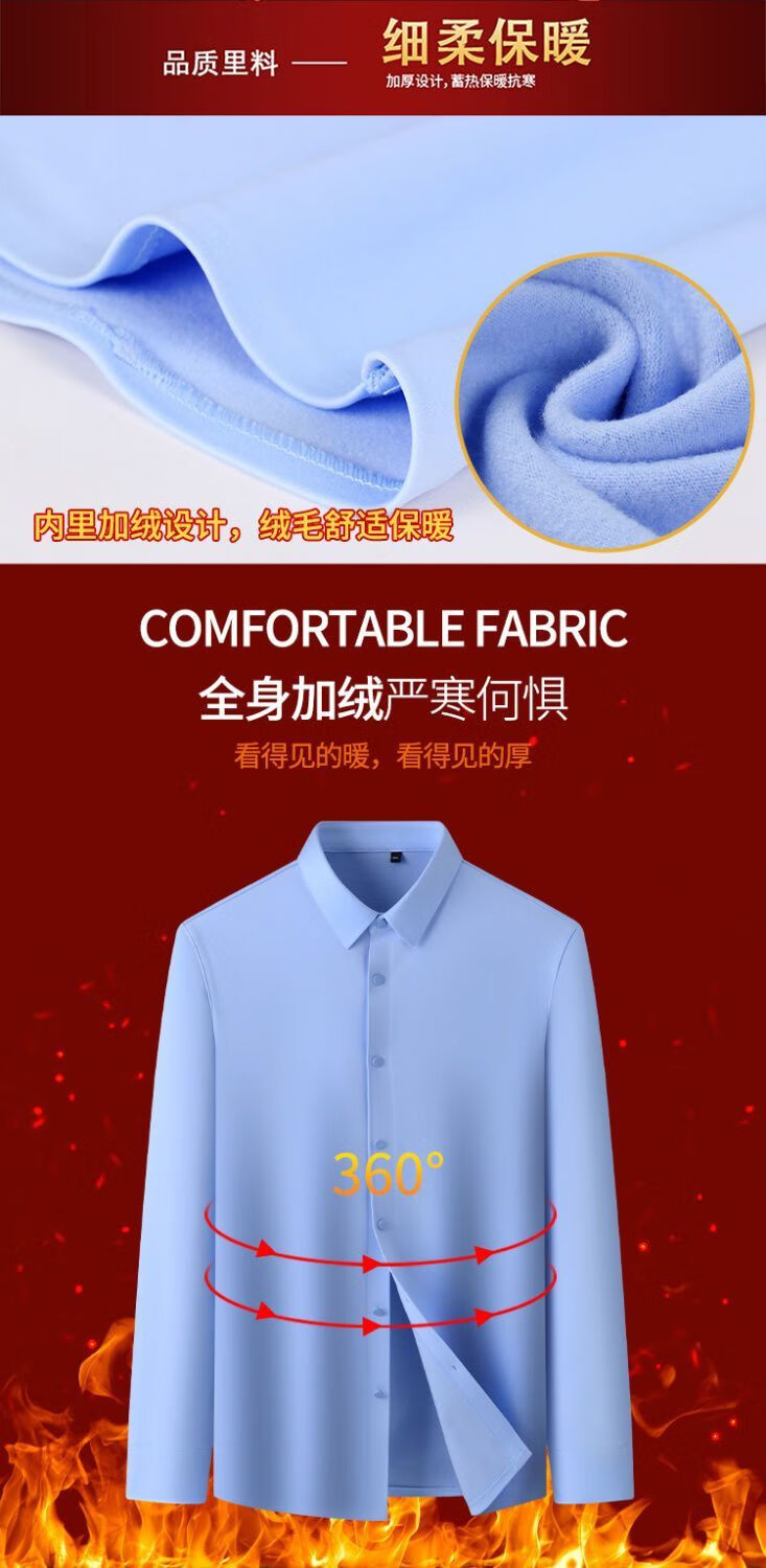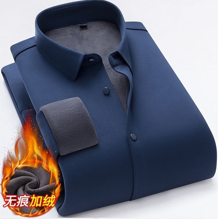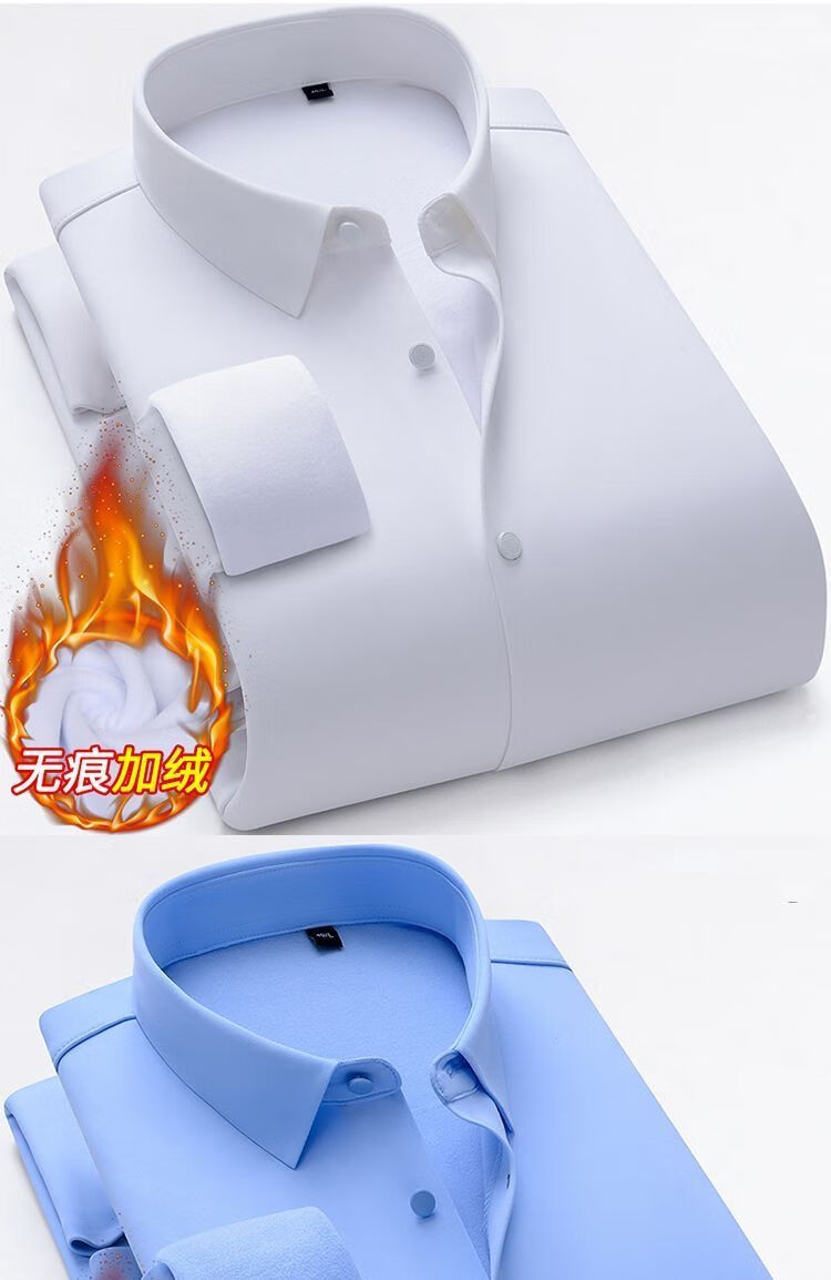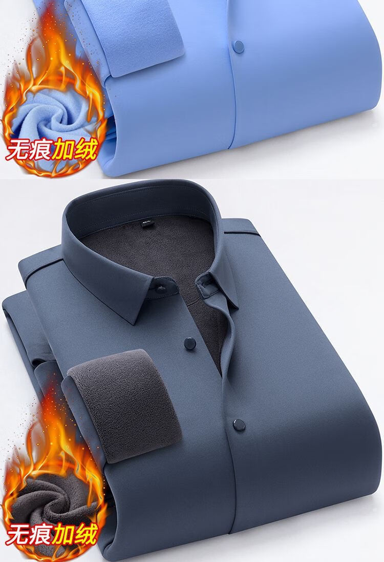 啄木鸟高档无痕保暖衬衫男加绒加厚商务休闲职业工装纯色免烫桑蚕丝衬衣 Z06 黑色/ 保暖 加绒 175/XL 建议130-145斤