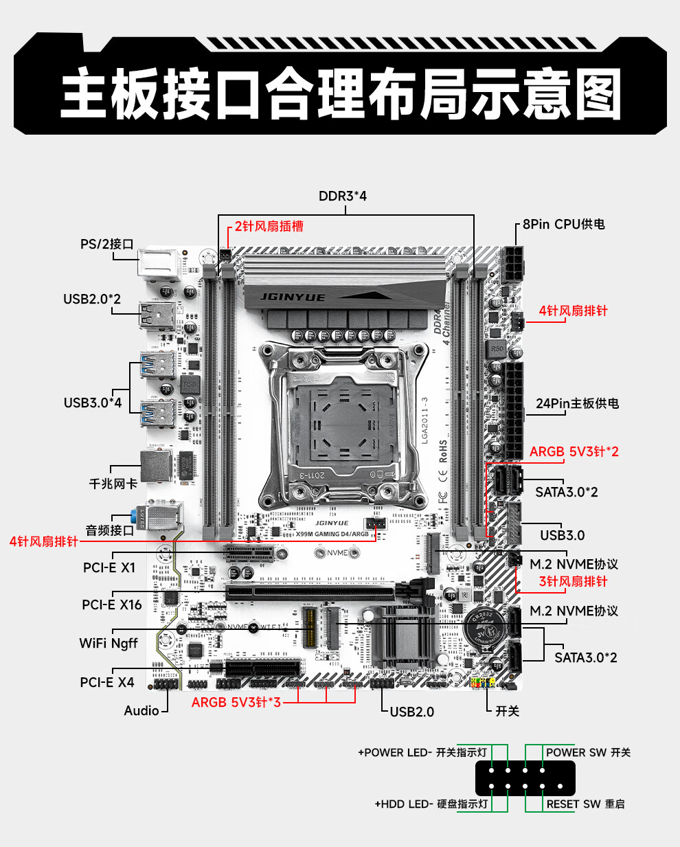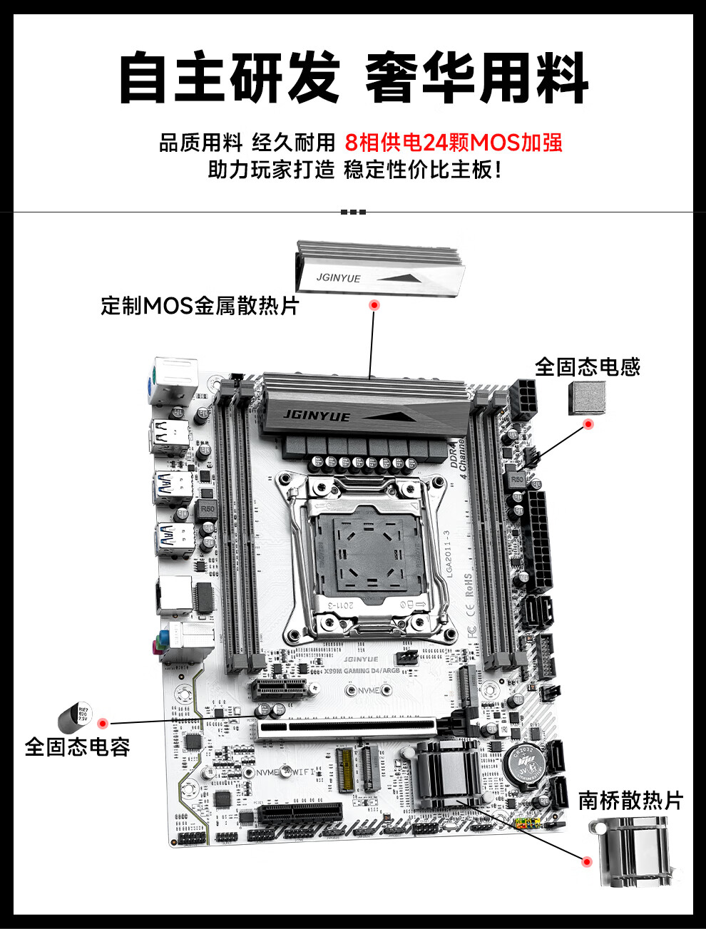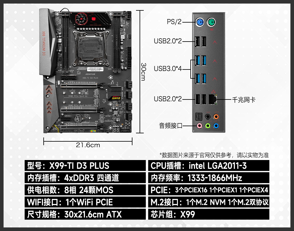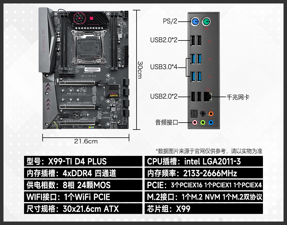 Jingyue X99 motherboard CPU set Xeon E5 2011-3-pin computer desktop rendering design game multi-open motherboard E5 2678V3/E5 2696V3/E5 2680V4 Jingyue X99-TI D4 PLUS motherboard single motherboard
