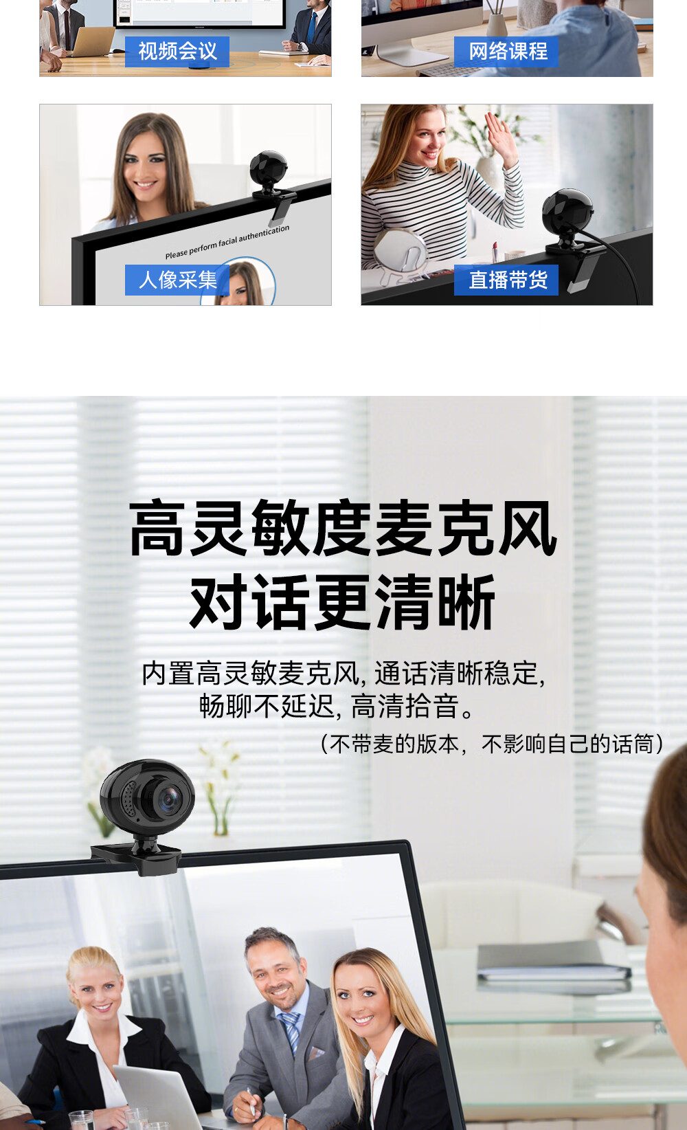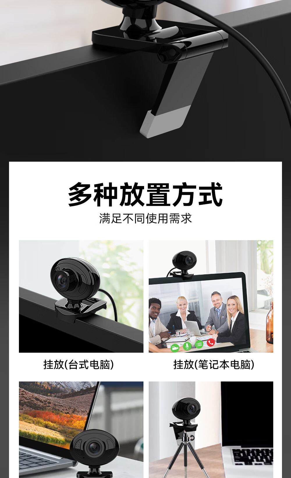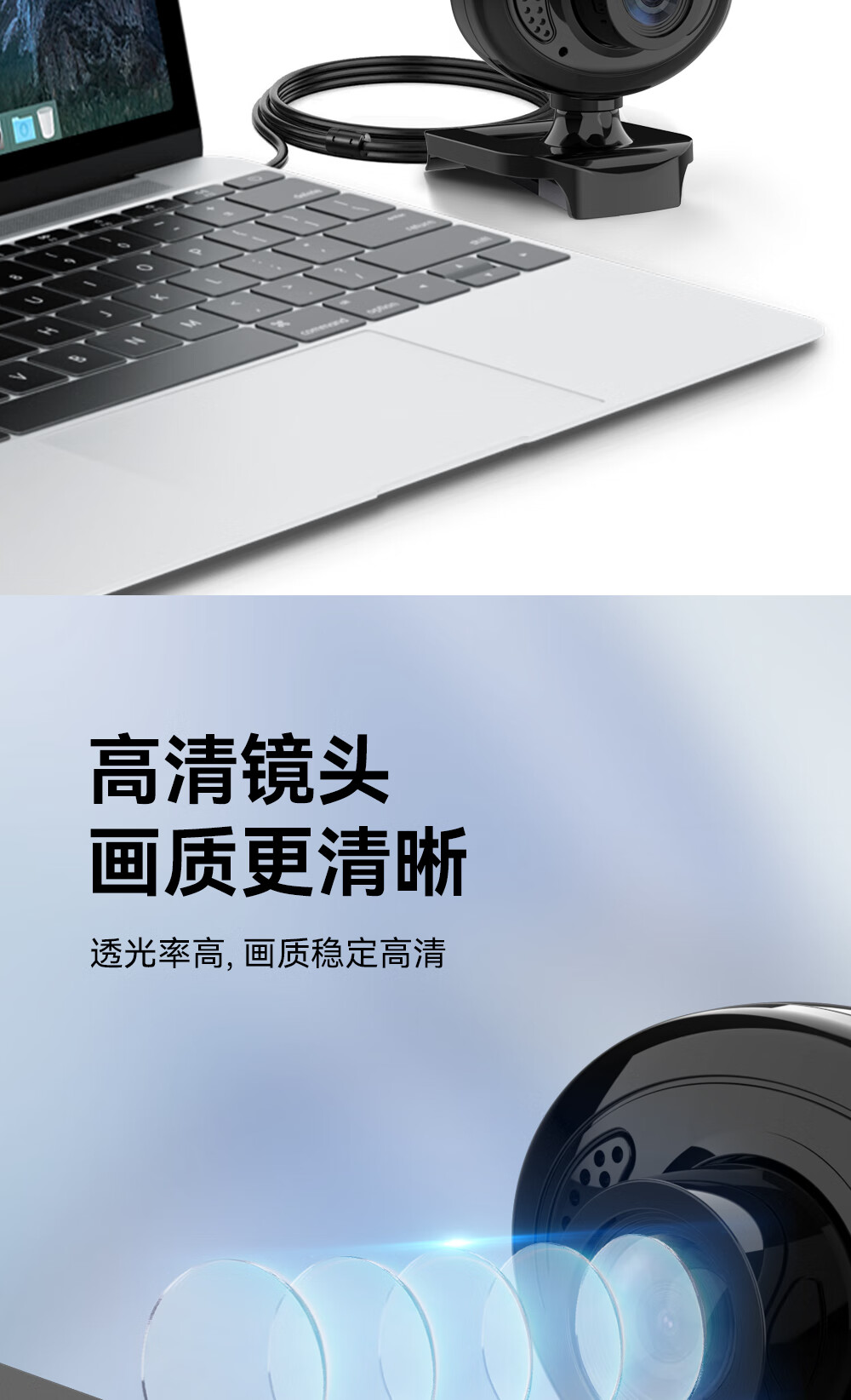 摩胜(mosengsm)Q16免驱电脑摄像头台式高清带麦克风台式机笔记本视频考研复试1080P摄影头 720P 黑色【不带麦克风话筒】