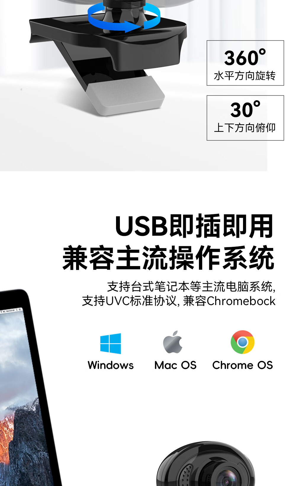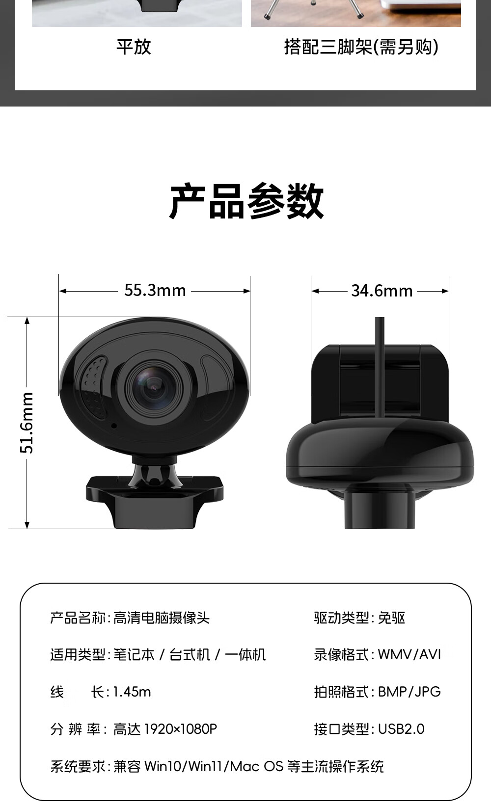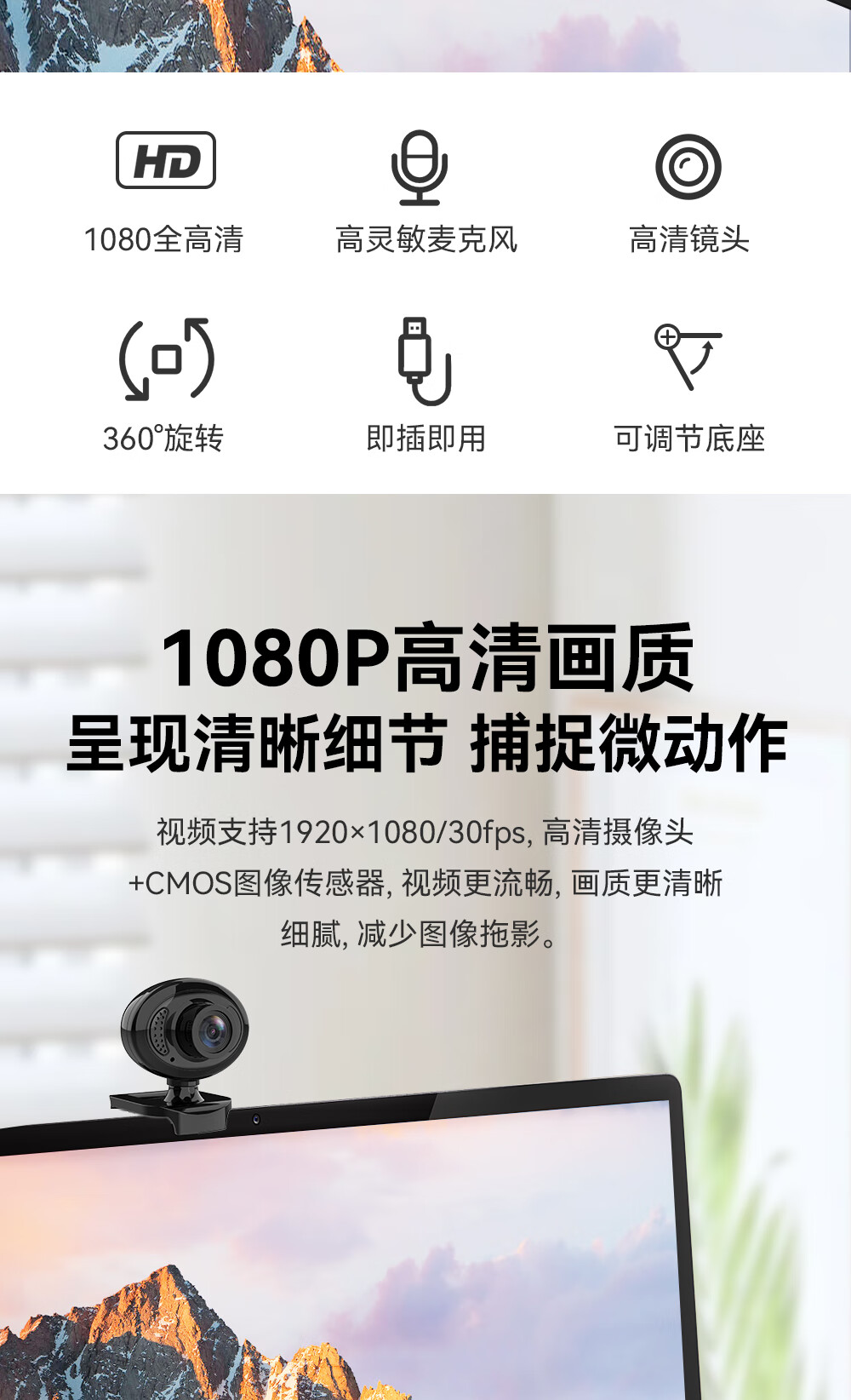 摩胜(mosengsm)Q16免驱电脑摄像头台式高清带麦克风台式机笔记本视频考研复试1080P摄影头 720P 黑色【不带麦克风话筒】