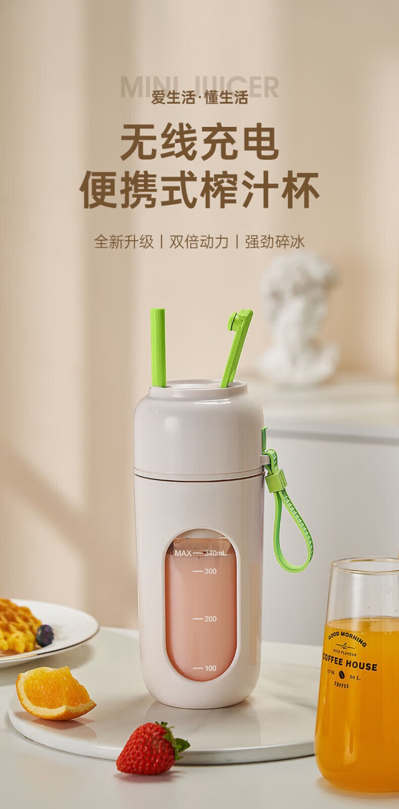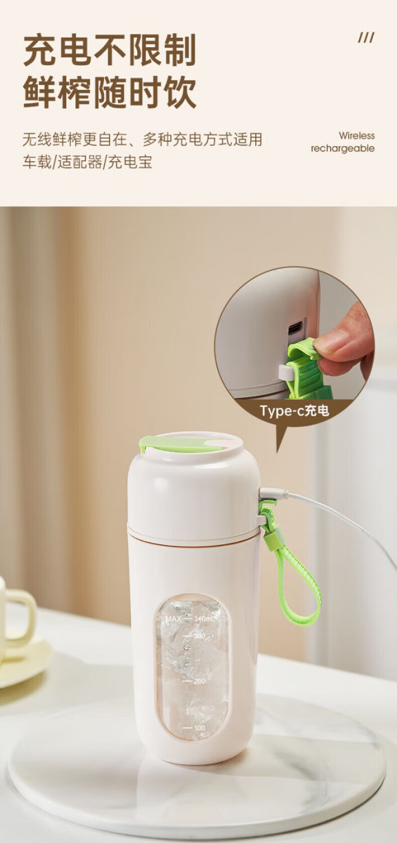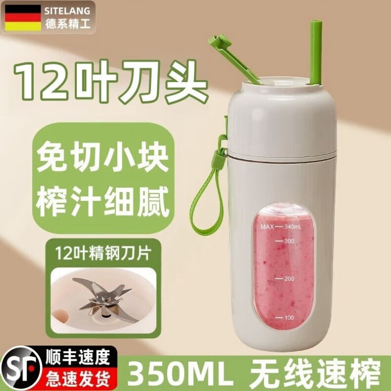 欧斯仑2024新品【德国品质】破壁机迷你小型榨汁机12叶刀头便捷式家用小型榨汁杯可碎冰充电式果汁机 【12叶精钢刀头】高速纯铜电机20000转 典雅绿【赠吸管 吸管刷】350ML