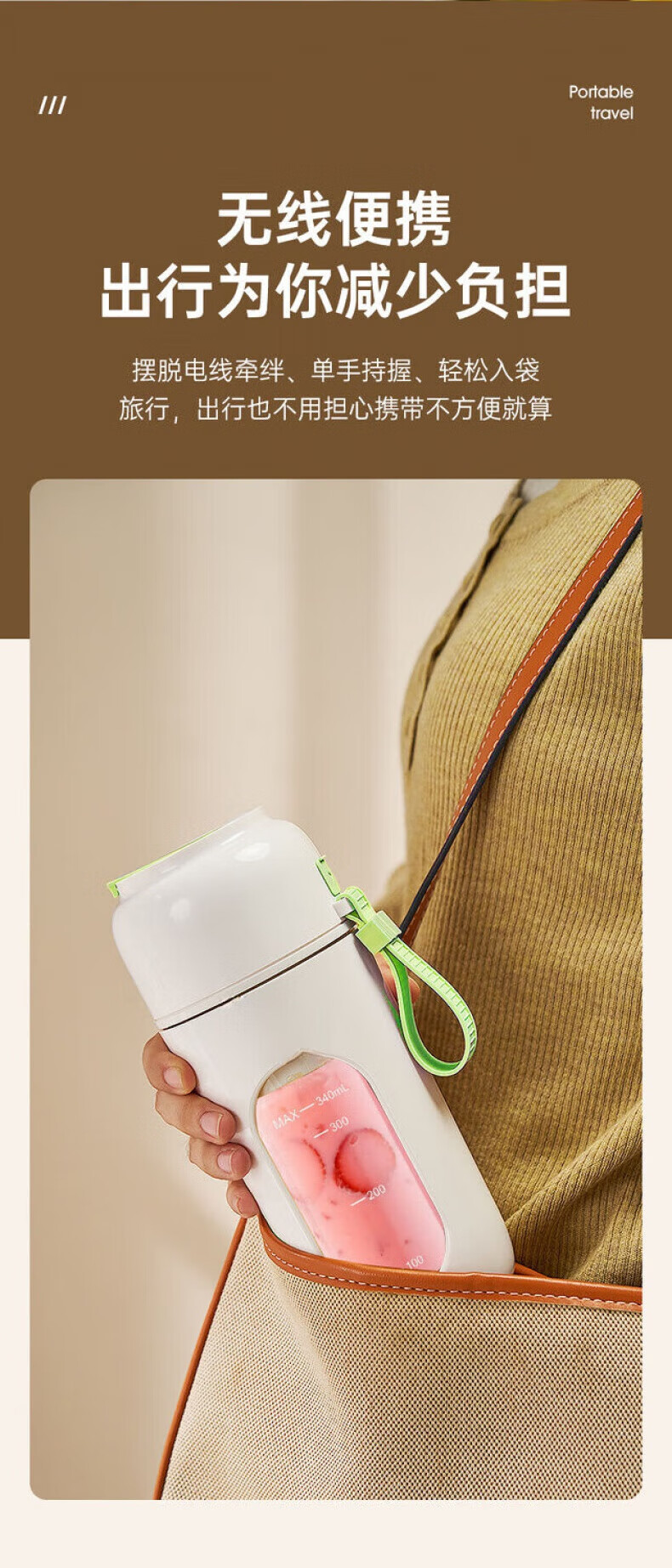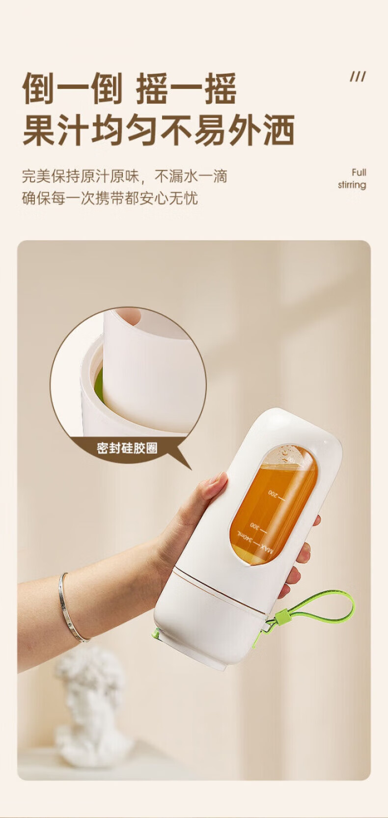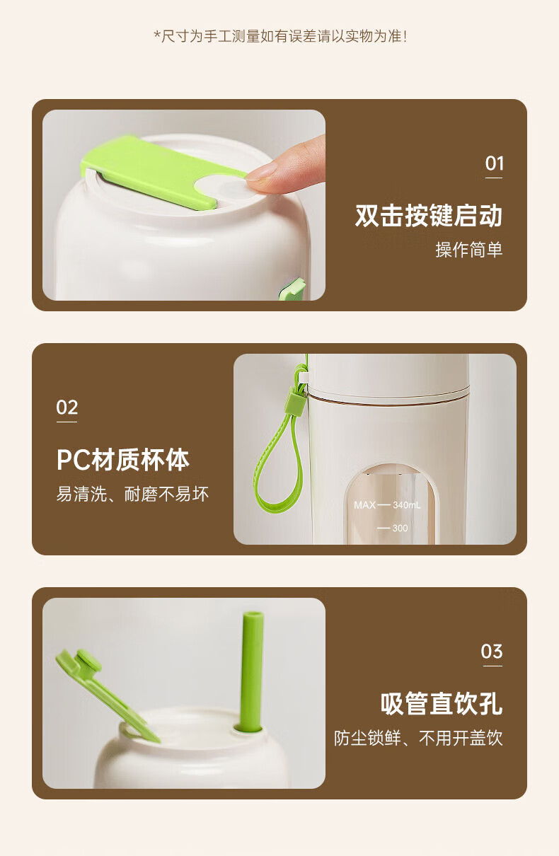 欧斯仑2024新品【德国品质】破壁机迷你小型榨汁机12叶刀头便捷式家用小型榨汁杯可碎冰充电式果汁机 【12叶精钢刀头】高速纯铜电机20000转 典雅绿【赠吸管 吸管刷】350ML