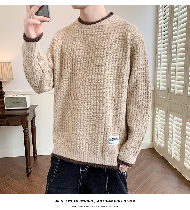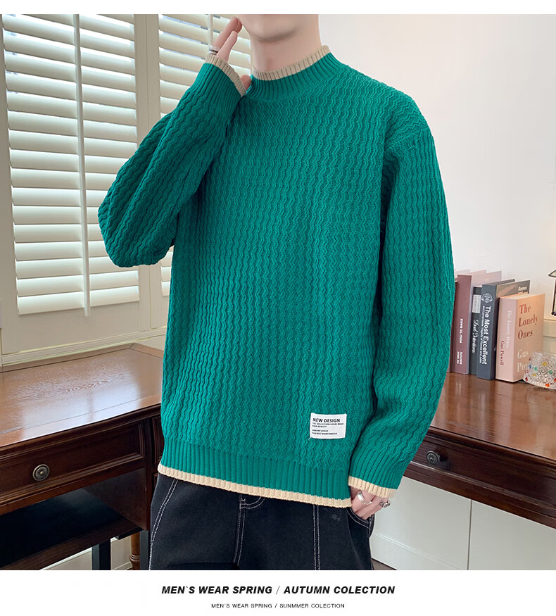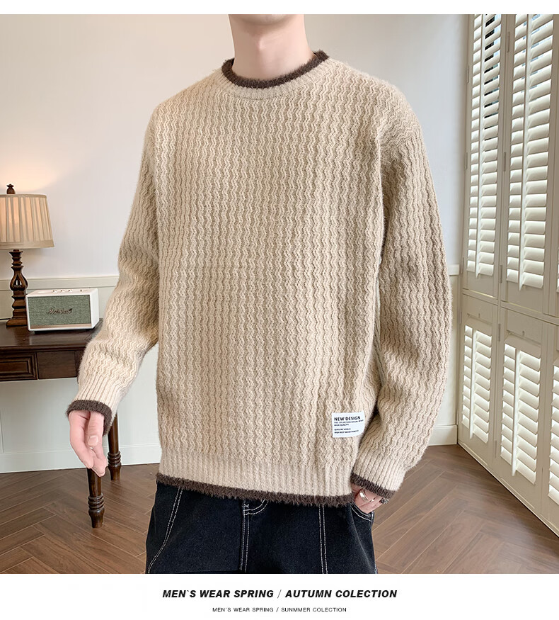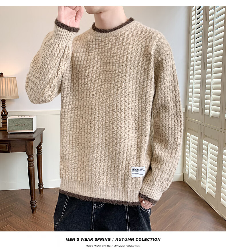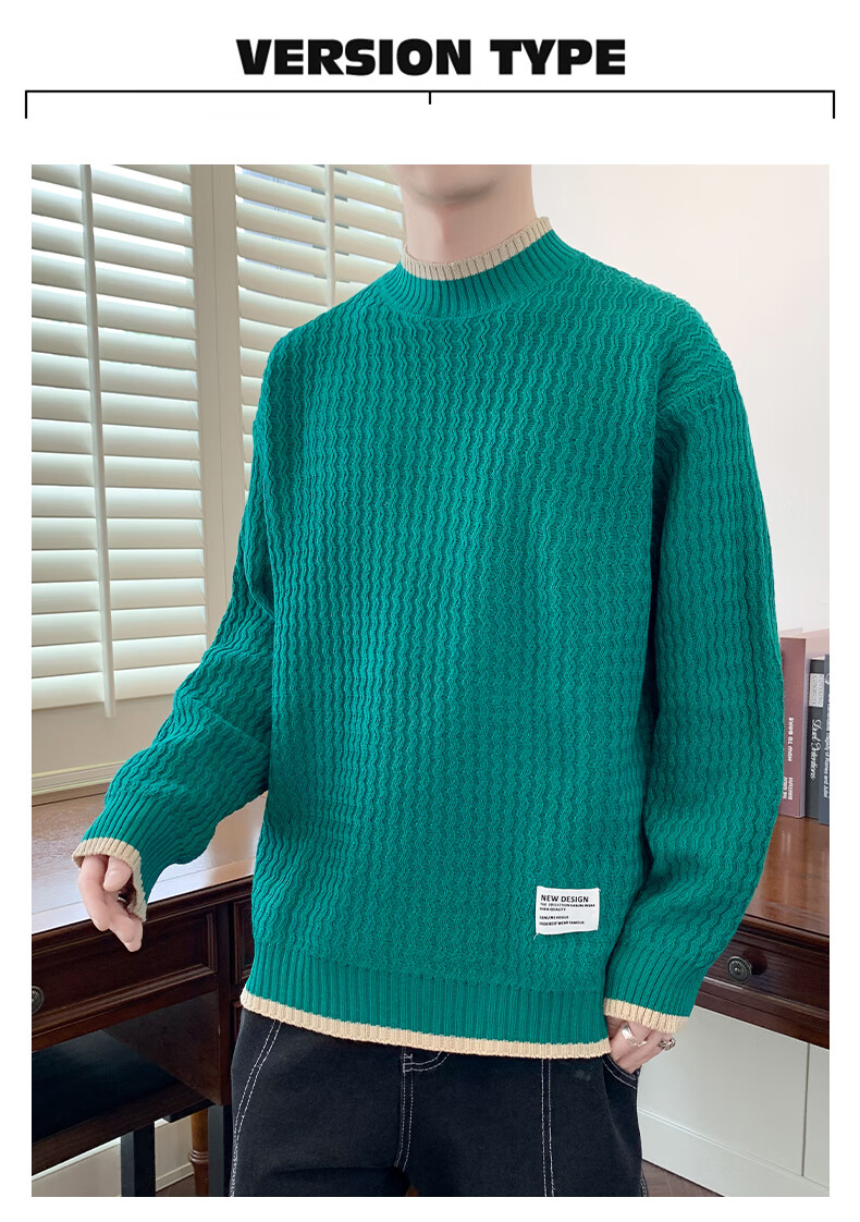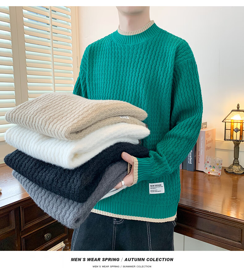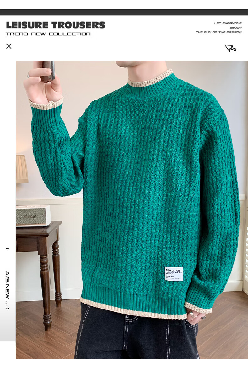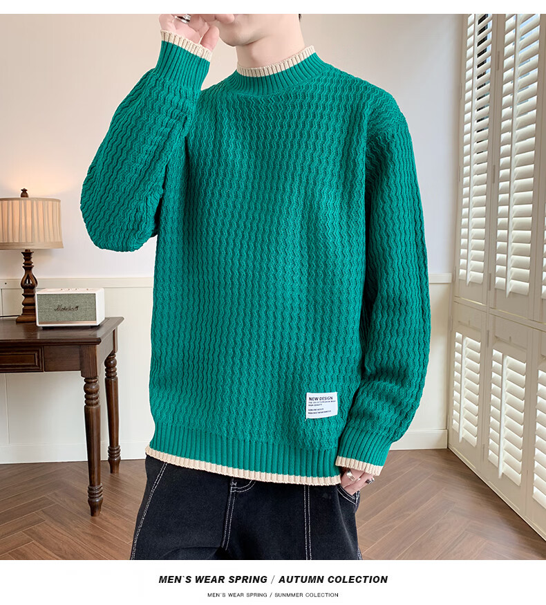Jeanswes suéter con patrón de ondas para hombre, suéter de marca de moda de otoño e invierno, ropa, suéter falso de dos piezas más suéter de medio cuello alto engrosado de terciopelo 10230/8129 Caqui regular XL (aproximadamente 120 ~ 145 Jin Jin equivale a 0,5 kg se puede usar)
