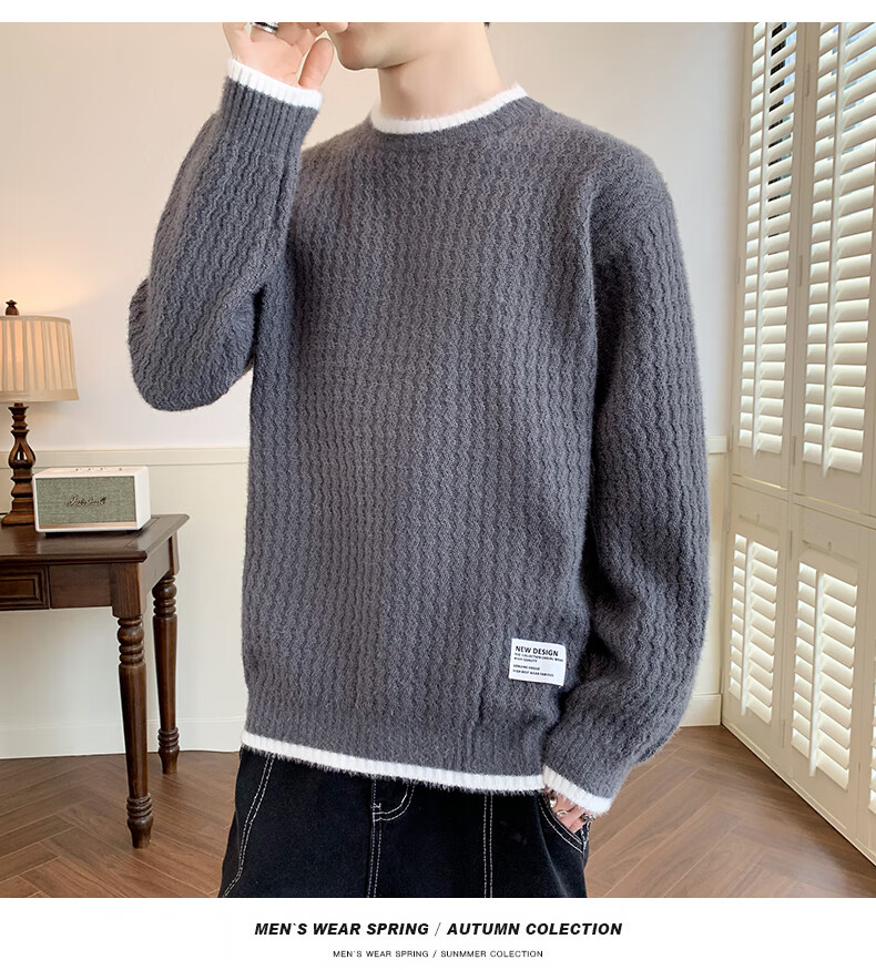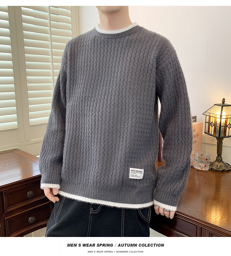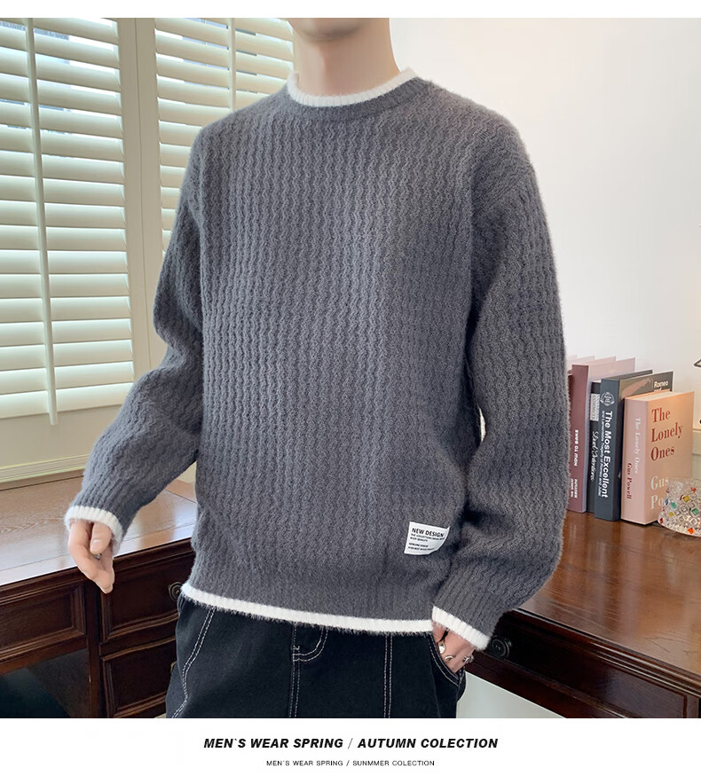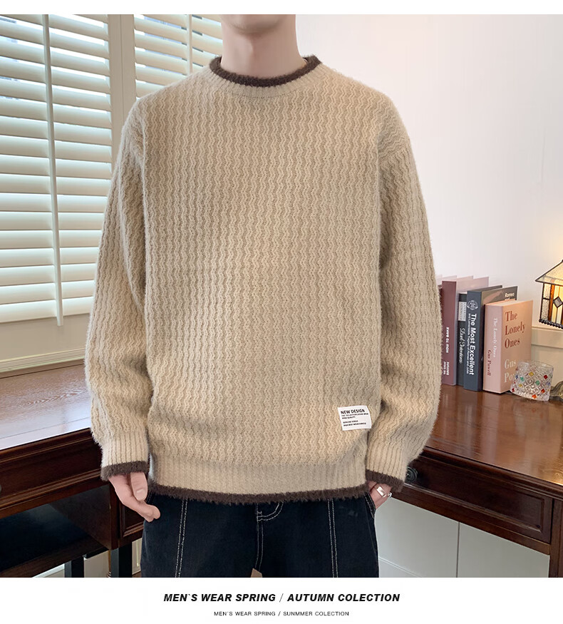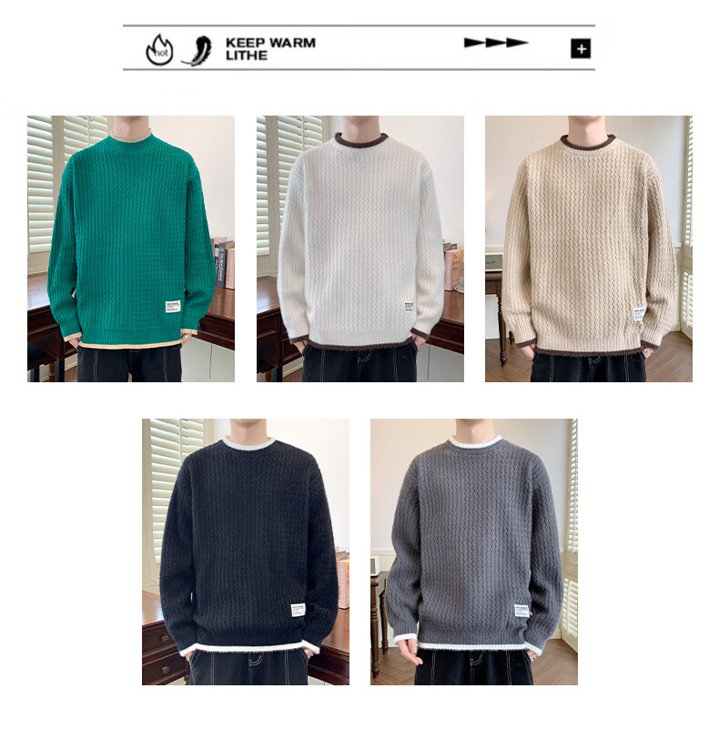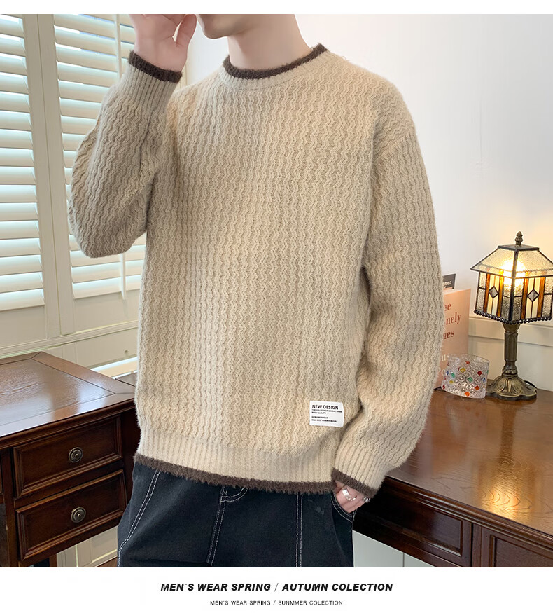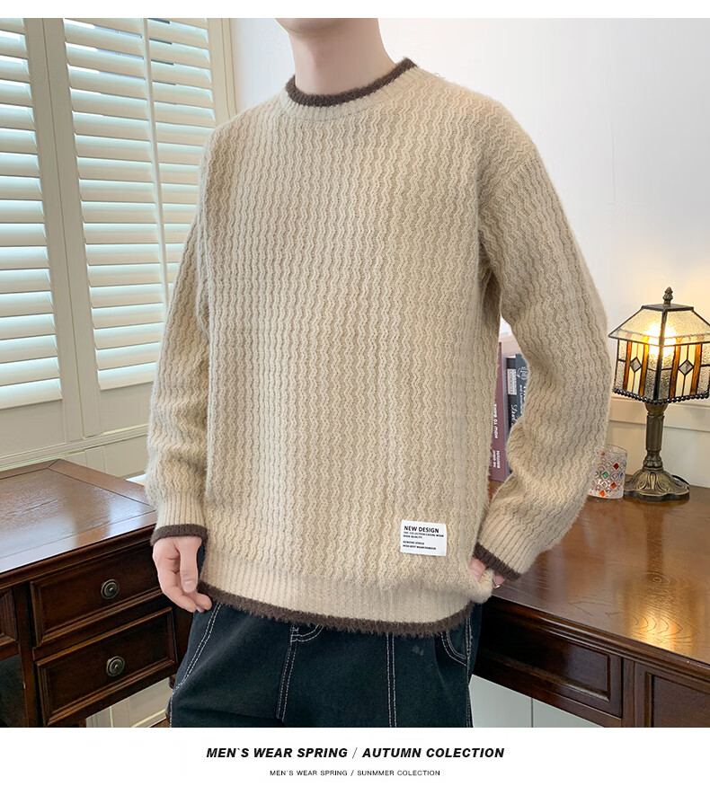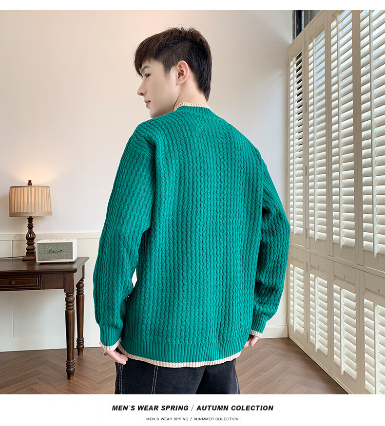 Jeanswes suéter con patrón de ondas para hombre, suéter de marca de moda de otoño e invierno, ropa, suéter falso de dos piezas más suéter de medio cuello alto engrosado de terciopelo 10230/8129 Caqui regular XL (aproximadamente 120 ~ 145 Jin Jin equivale a 0,5 kg se puede usar)