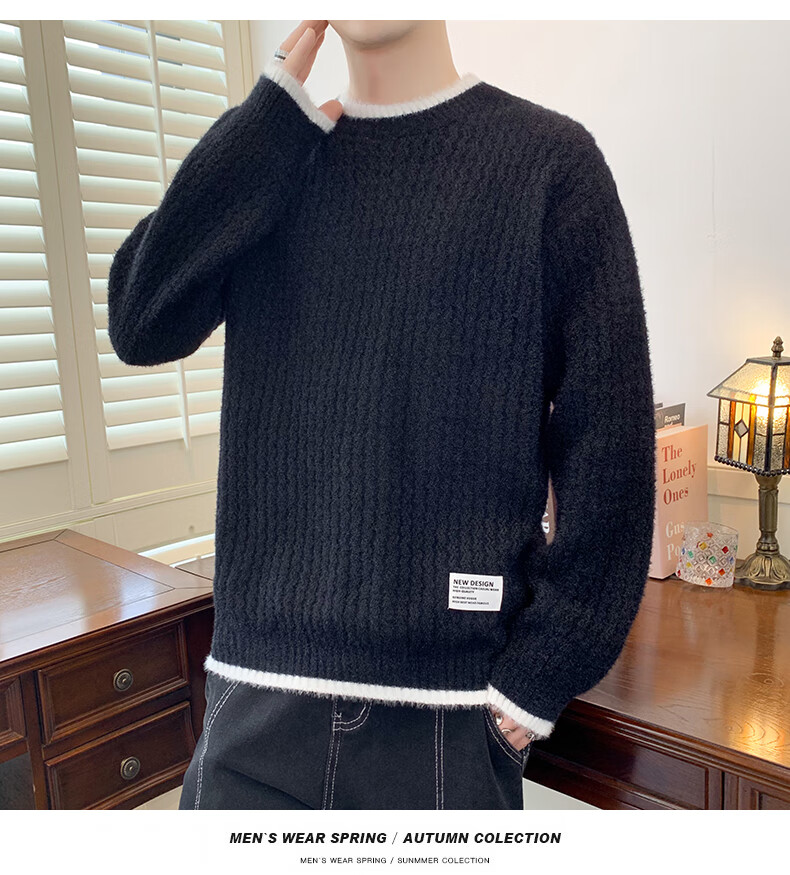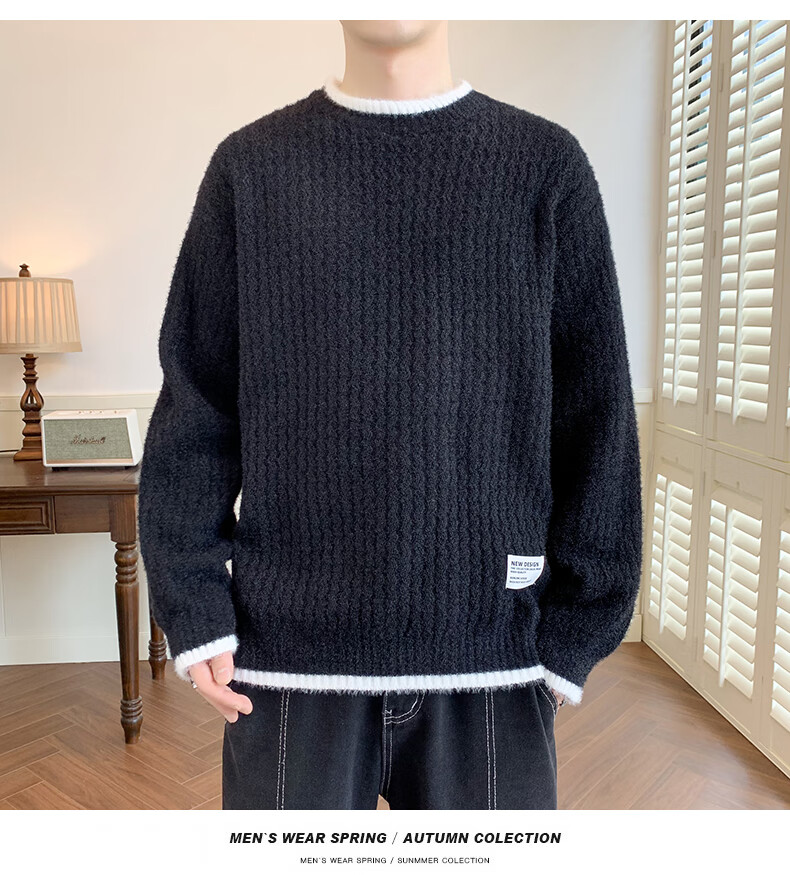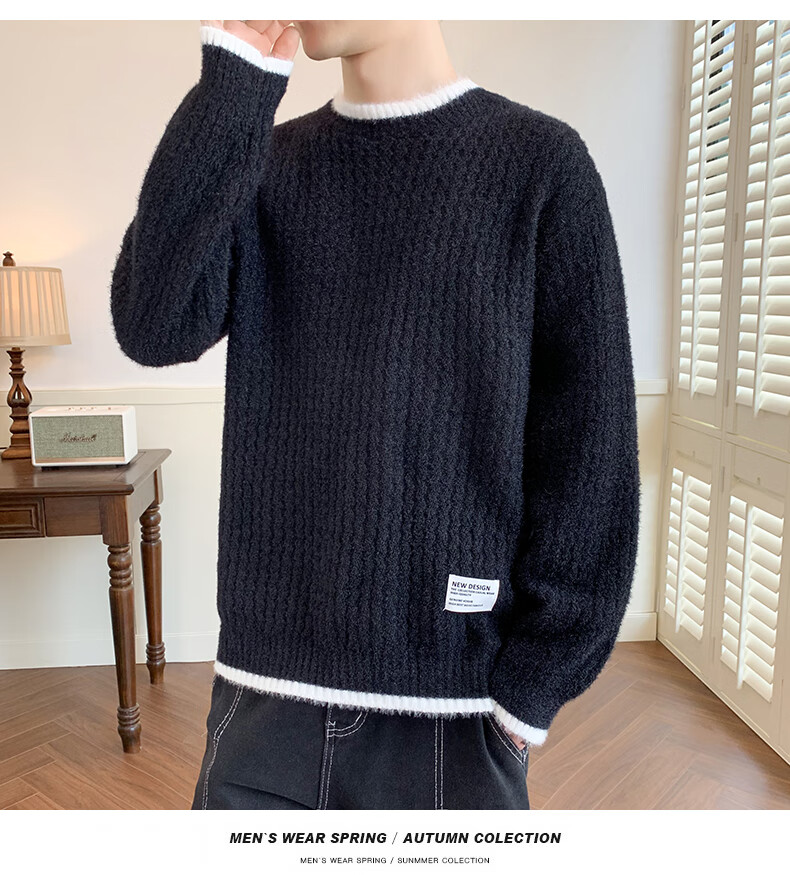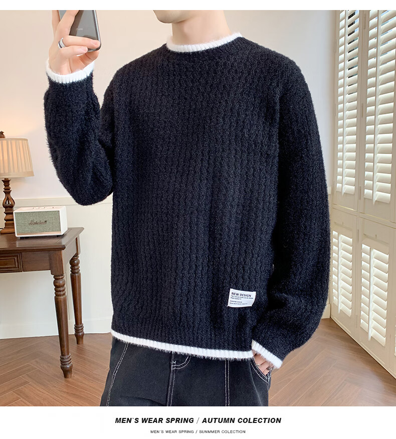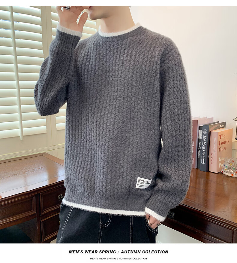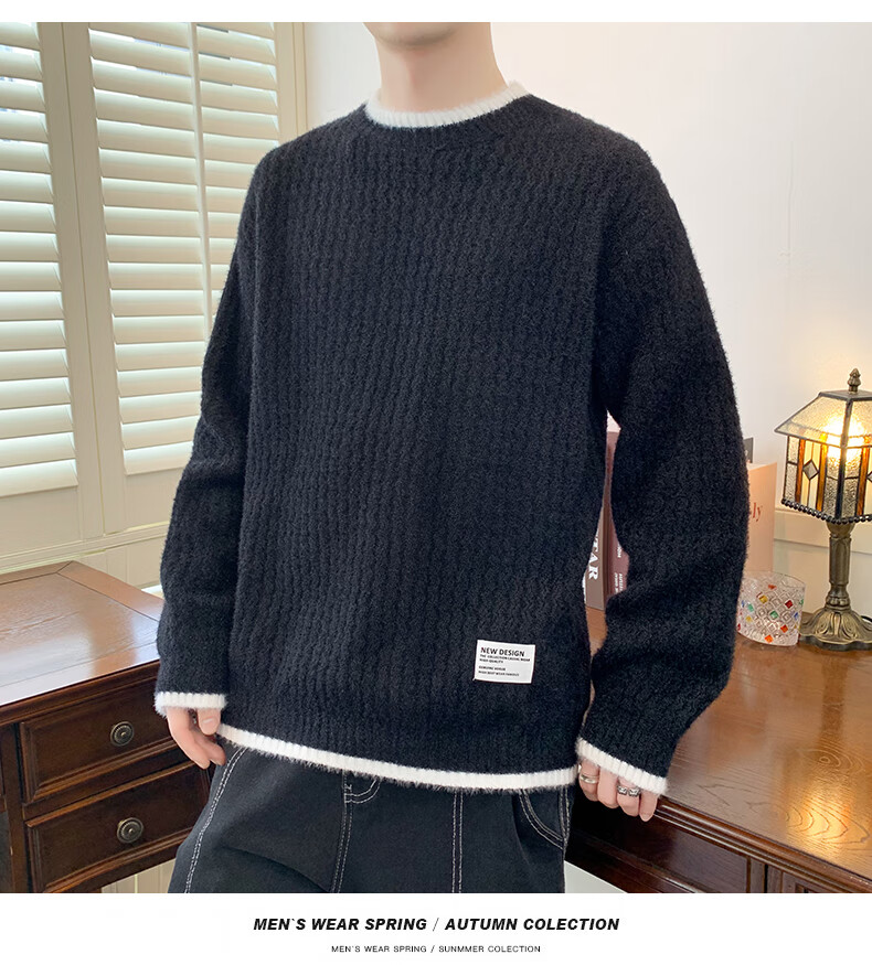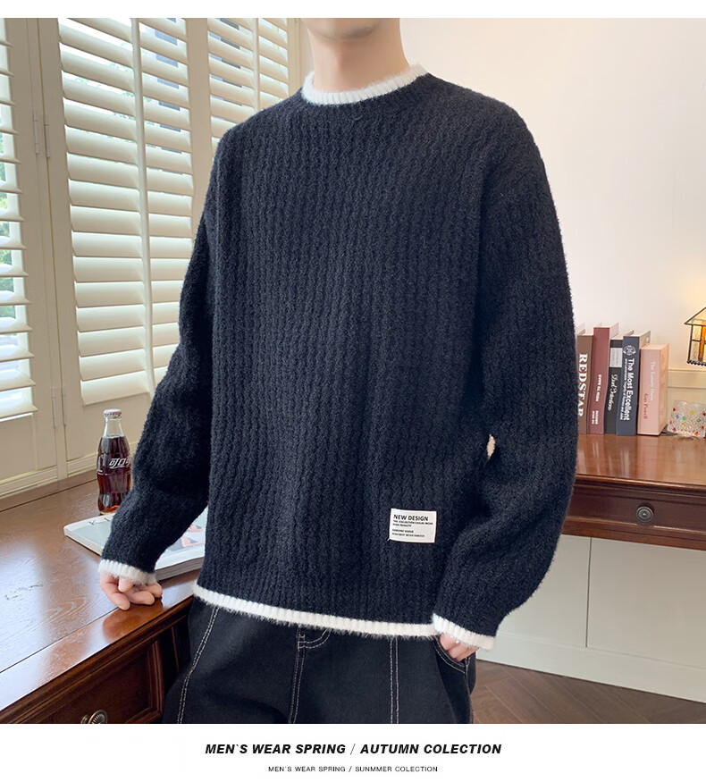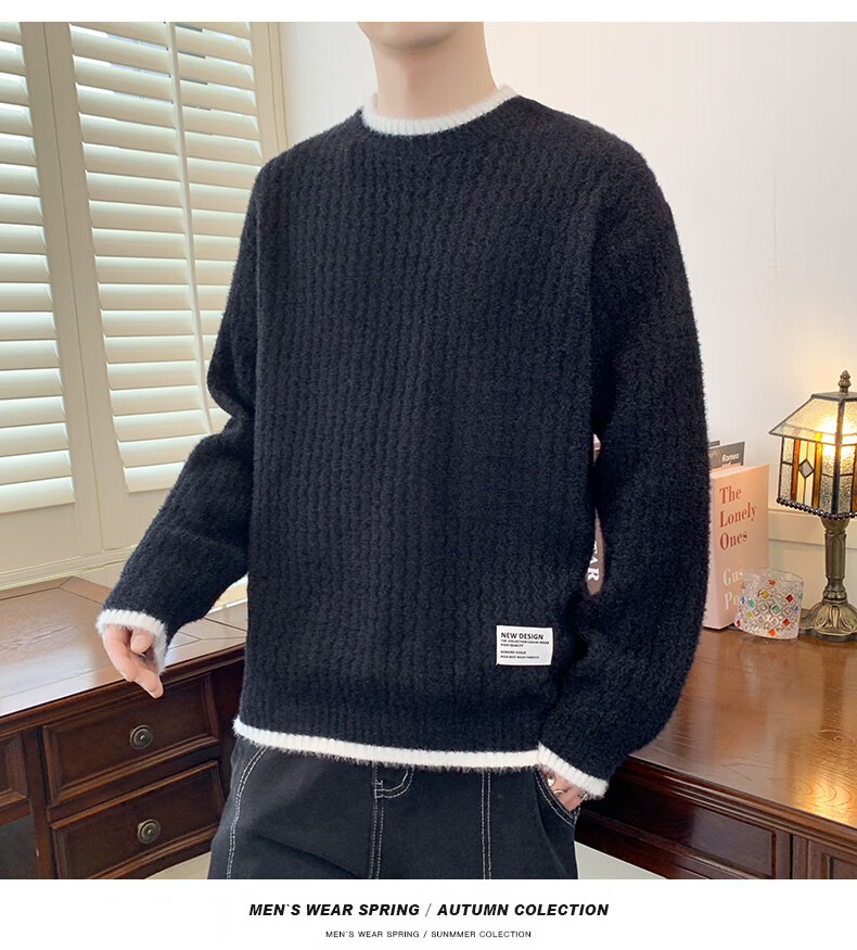 Jeanswes suéter con patrón de ondas para hombre, suéter de marca de moda de otoño e invierno, ropa, suéter falso de dos piezas más suéter de medio cuello alto engrosado de terciopelo 10230/8129 Caqui regular XL (aproximadamente 120 ~ 145 Jin Jin equivale a 0,5 kg se puede usar)