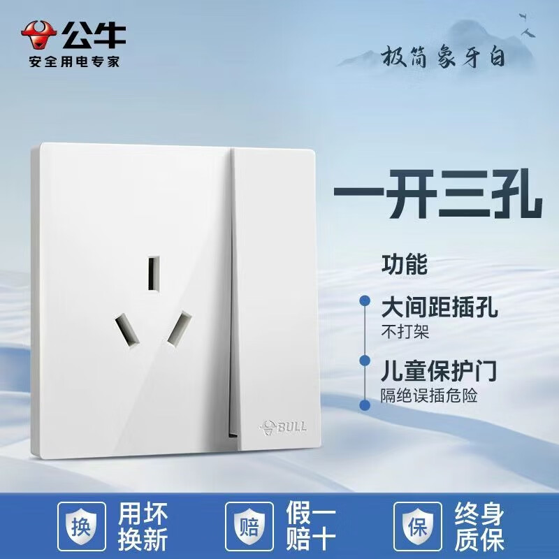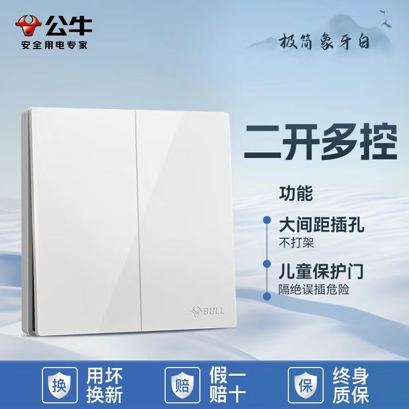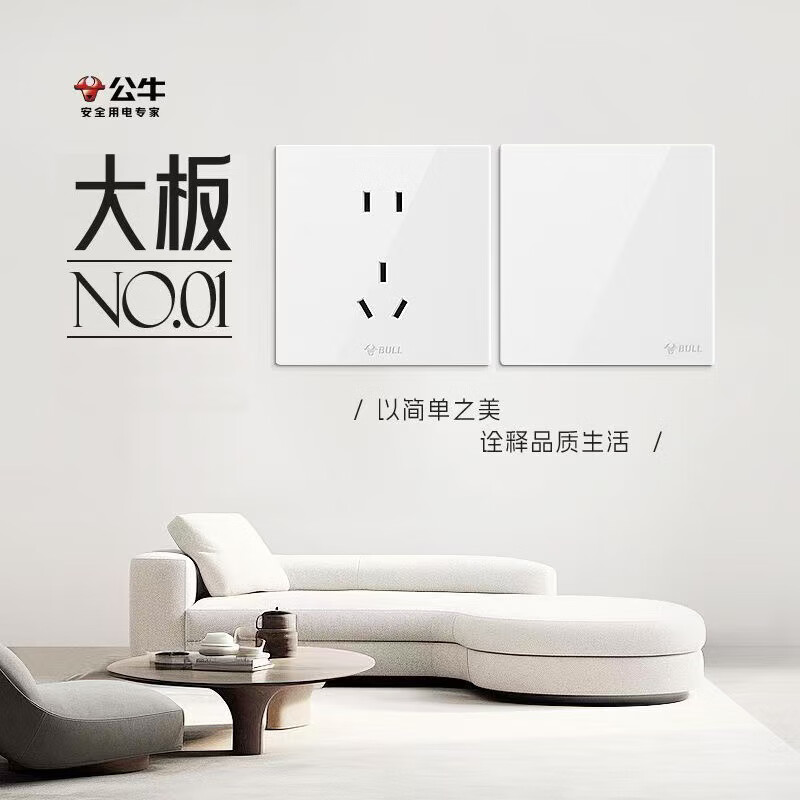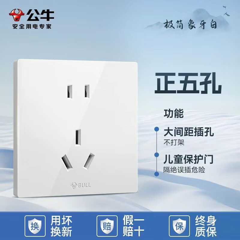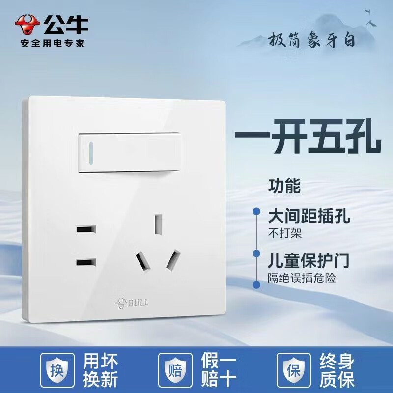 公牛公牛开关插座墙壁套餐一开五孔一开双控单控86型暗装无边大面板白 斜五孔【大面板白色】