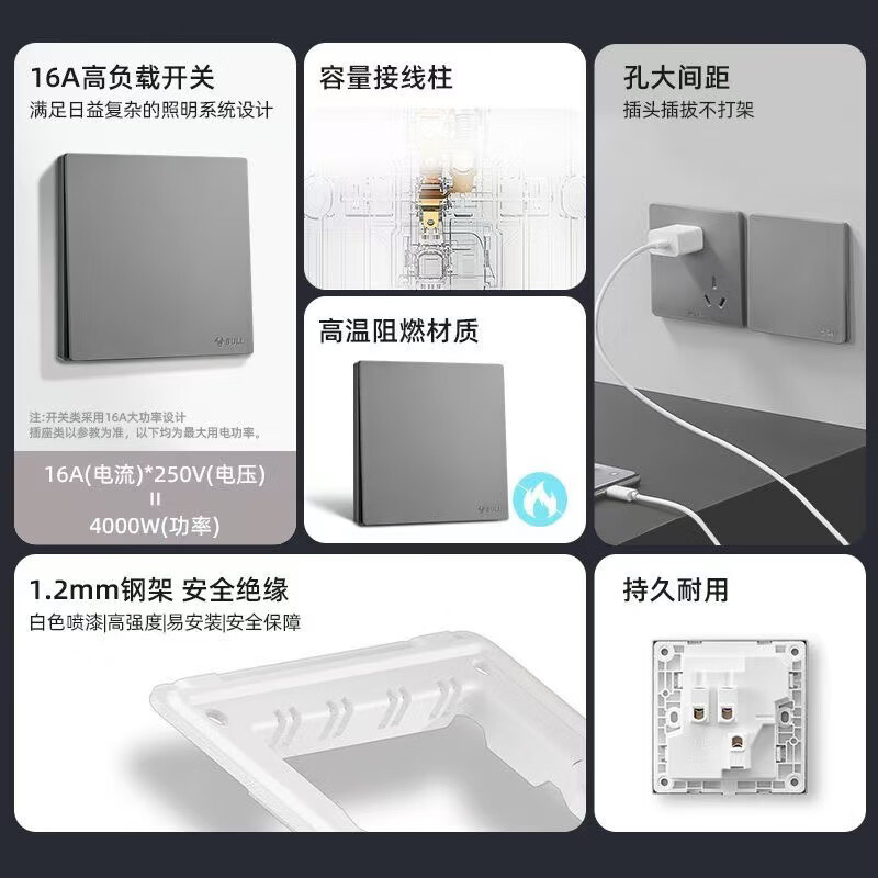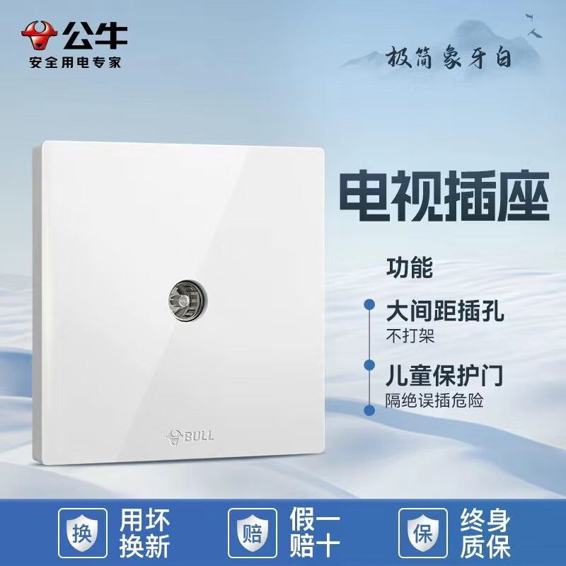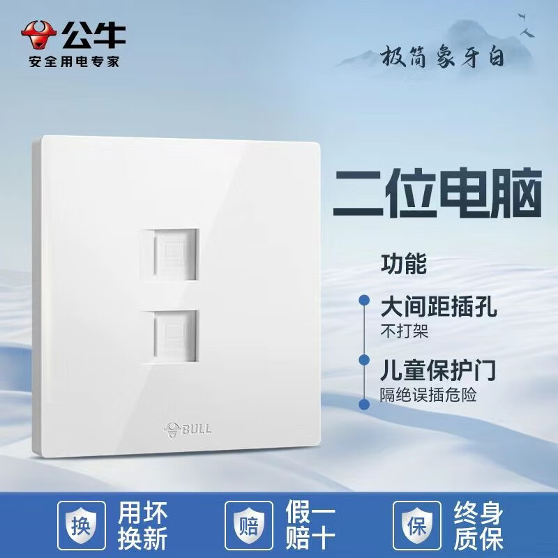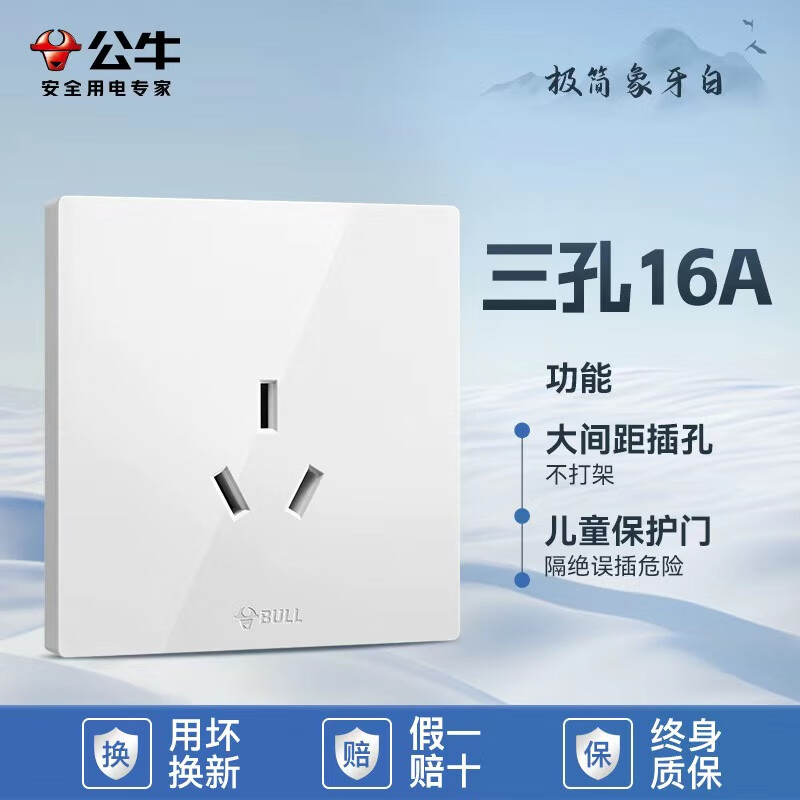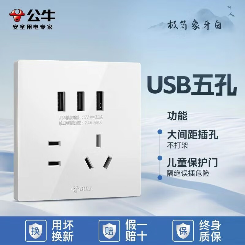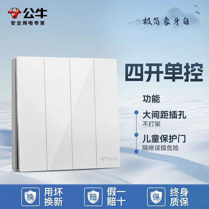 公牛公牛开关插座墙壁套餐一开五孔一开双控单控86型暗装无边大面板白 斜五孔【大面板白色】