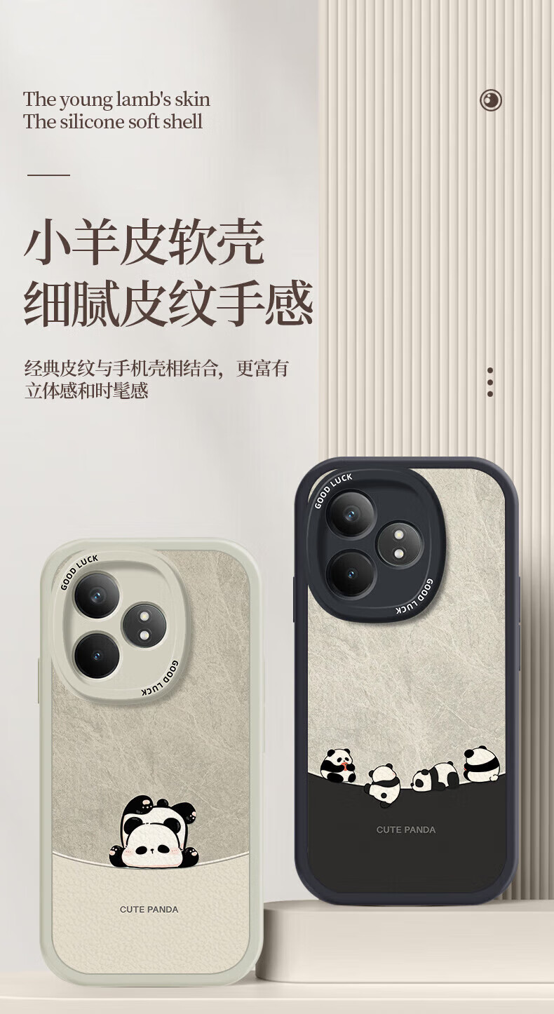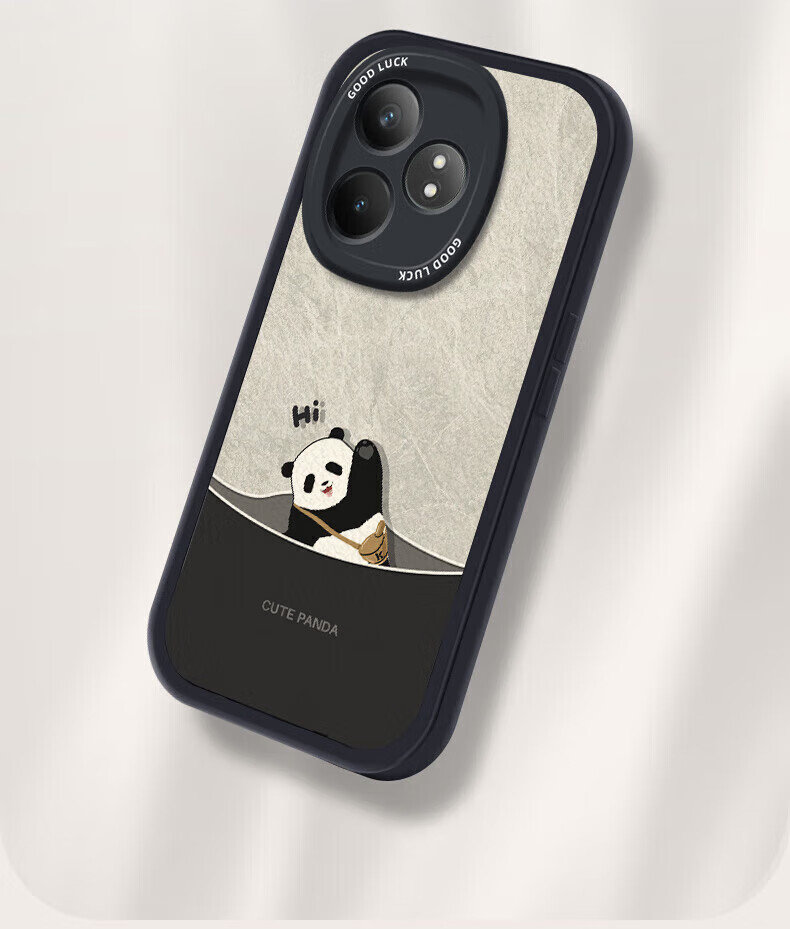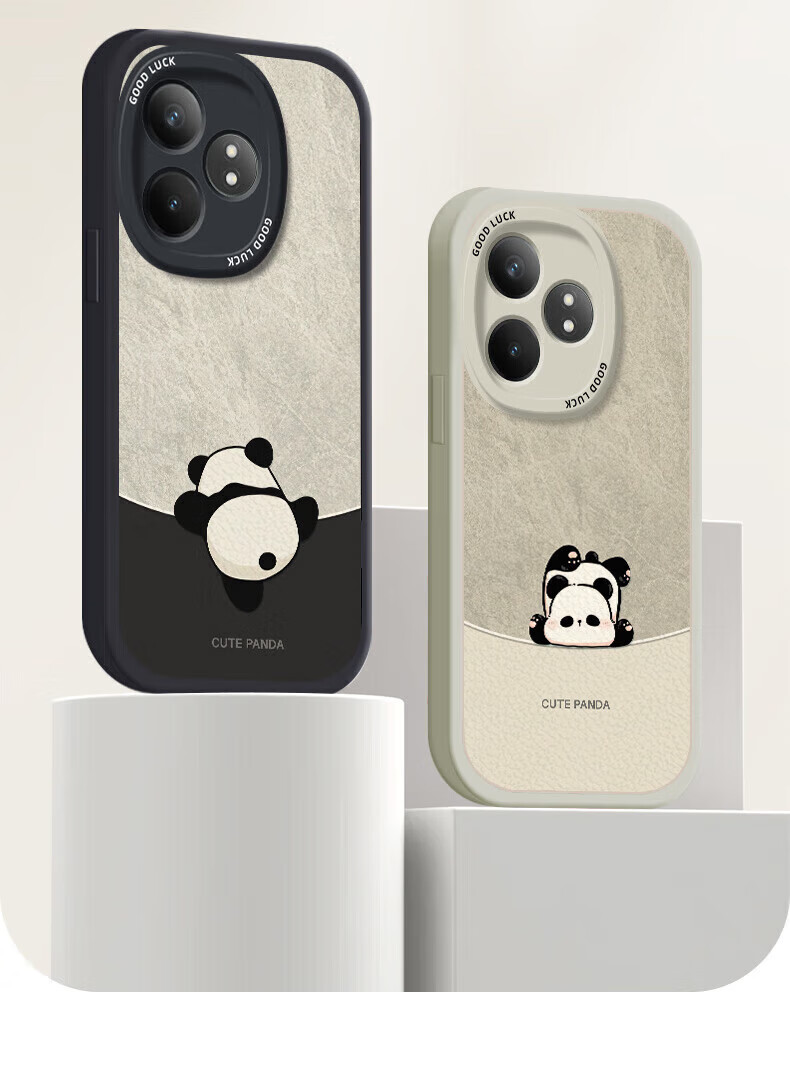 Hacker geeignet für Realme GTneo6/6se Handyhülle Realme All-Inclusive Anti-Fall neue Cartoon-Schutzhülle Silikon Leder Textur Softshell Panda Männer und Frauen Antikweiß umgekehrter Panda Weiß