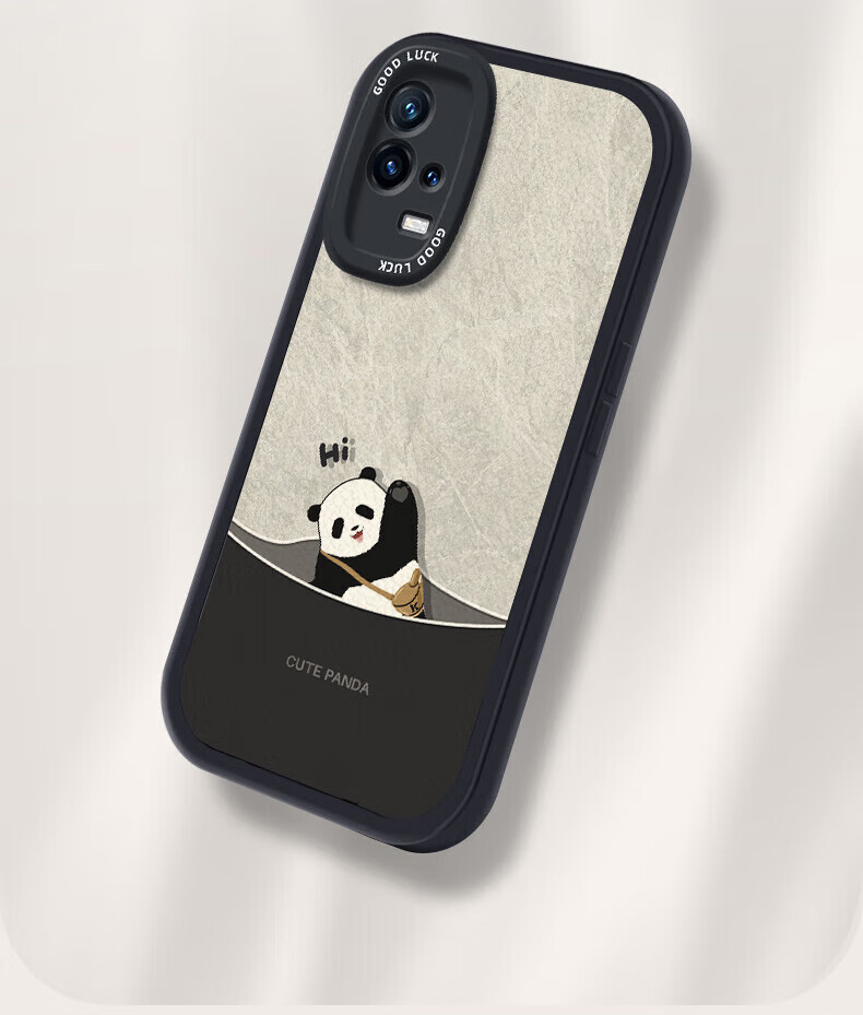 Hacker geeignet für iqoo8/pro Handyhülle VIVO All-Inclusive Anti-Fall neue Cartoon-Schutzhülle Silikon kreatives Ledermuster Softshell-Panda für Männer und Frauen antiker weißer umgekehrter Panda IQOO8