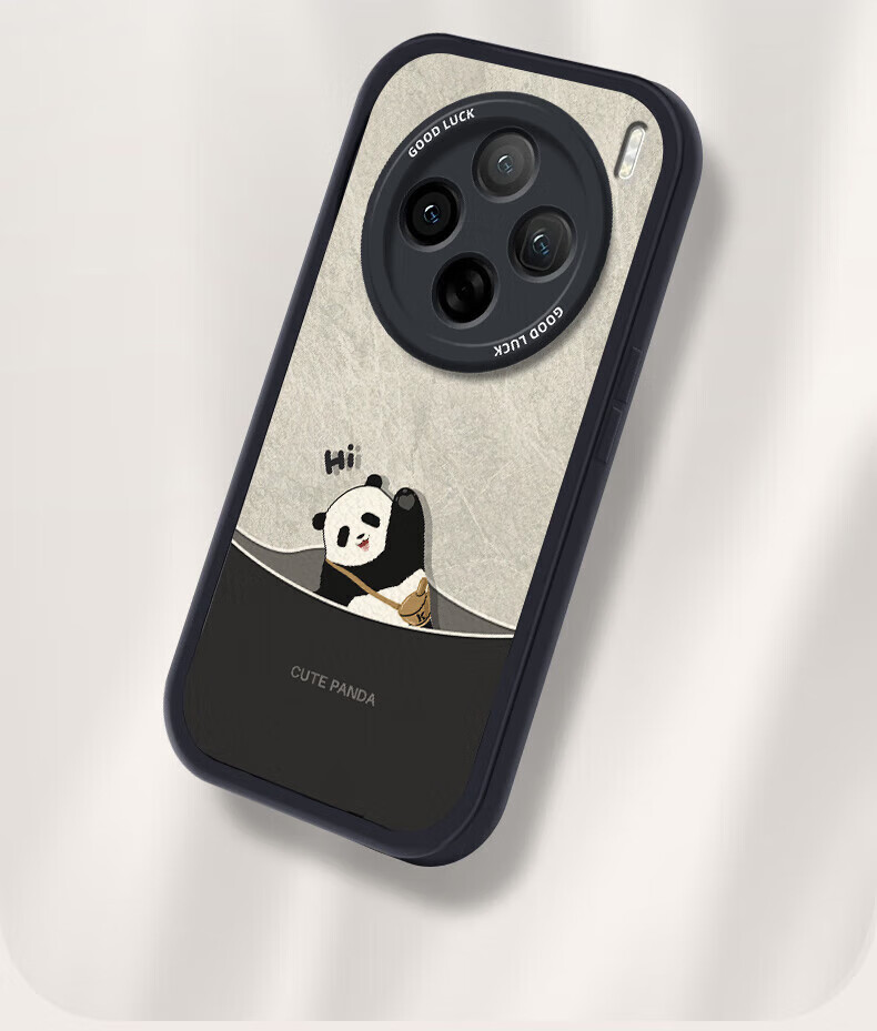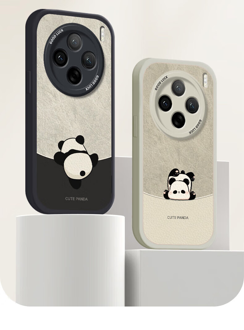 悍客适用vivox100/pro手机壳 镜头全包防摔新款卡通保护套硅胶创意皮纹软壳熊猫男女 【古董白】倒立熊猫 vivox100