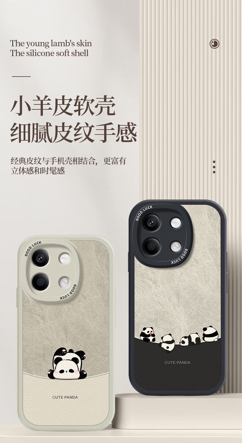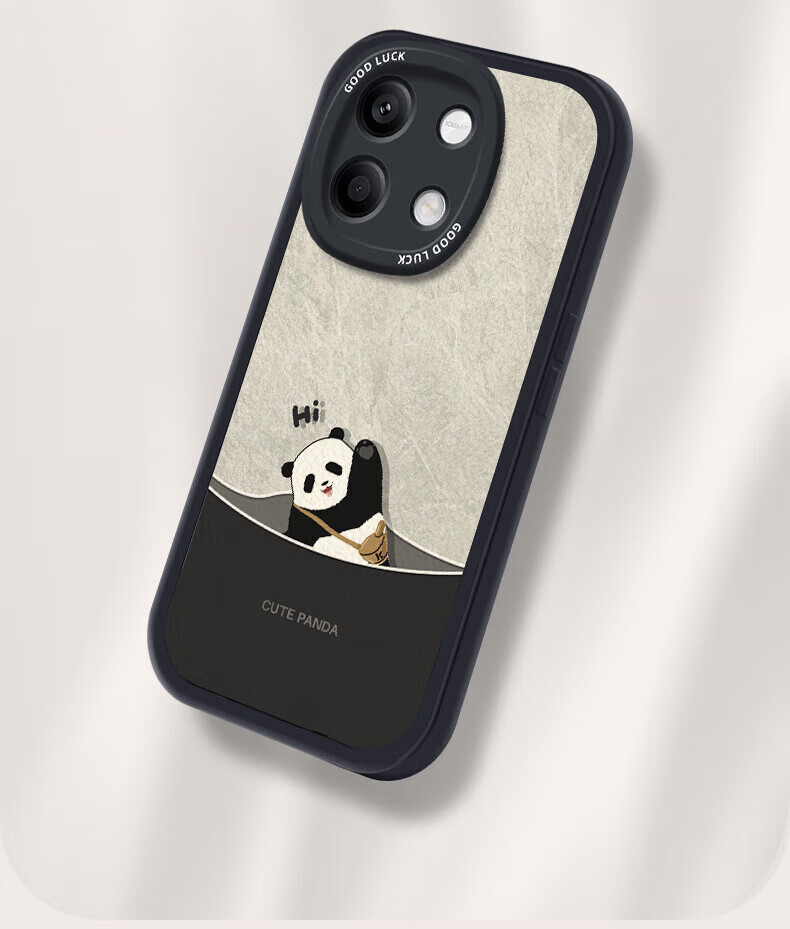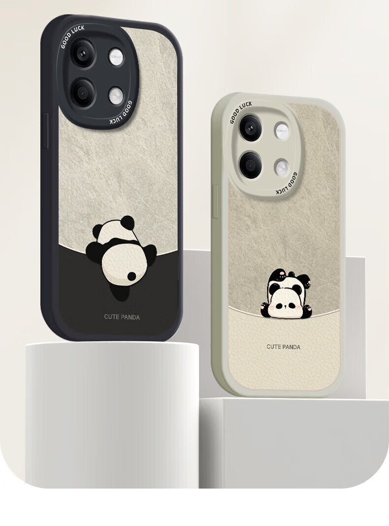 Hacker adapté pour Redmi note13/pro/+ étui de téléphone portable Redmi tout compris anti-chute nouveau dessin animé silicone créatif motif en cuir coque souple panda pour hommes et femmes Redmi note13 panda inversé blanc antique