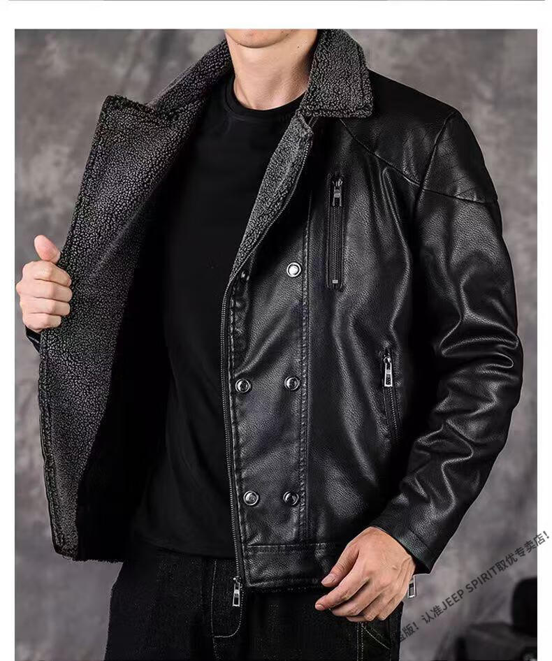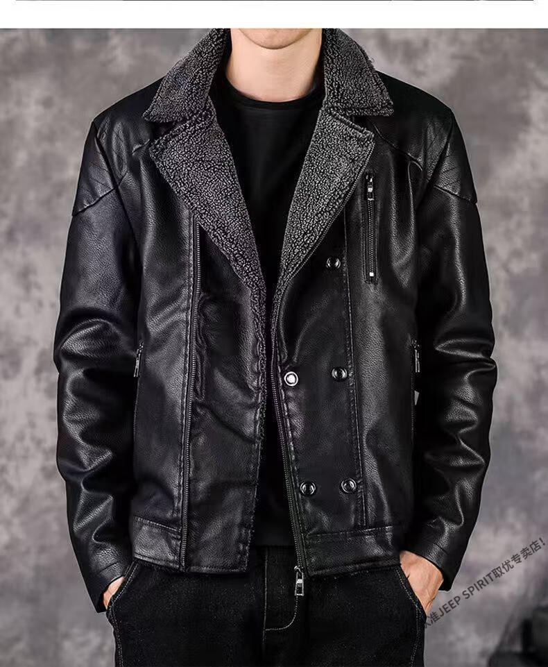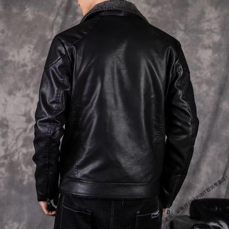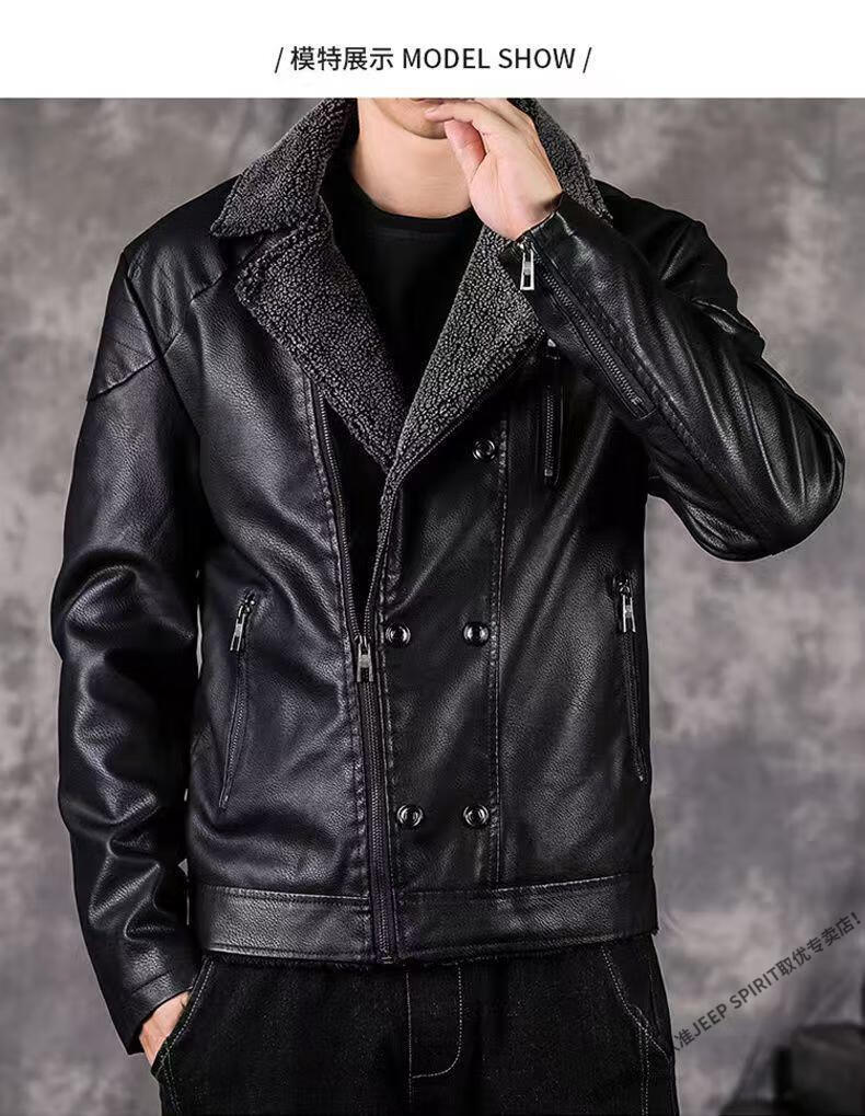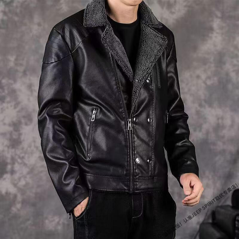 JEEP SPIRIT吉普皮衣男士加绒加厚真皮夹克2025冬季新款韩版修身休闲皮毛一体 黑色 2XL